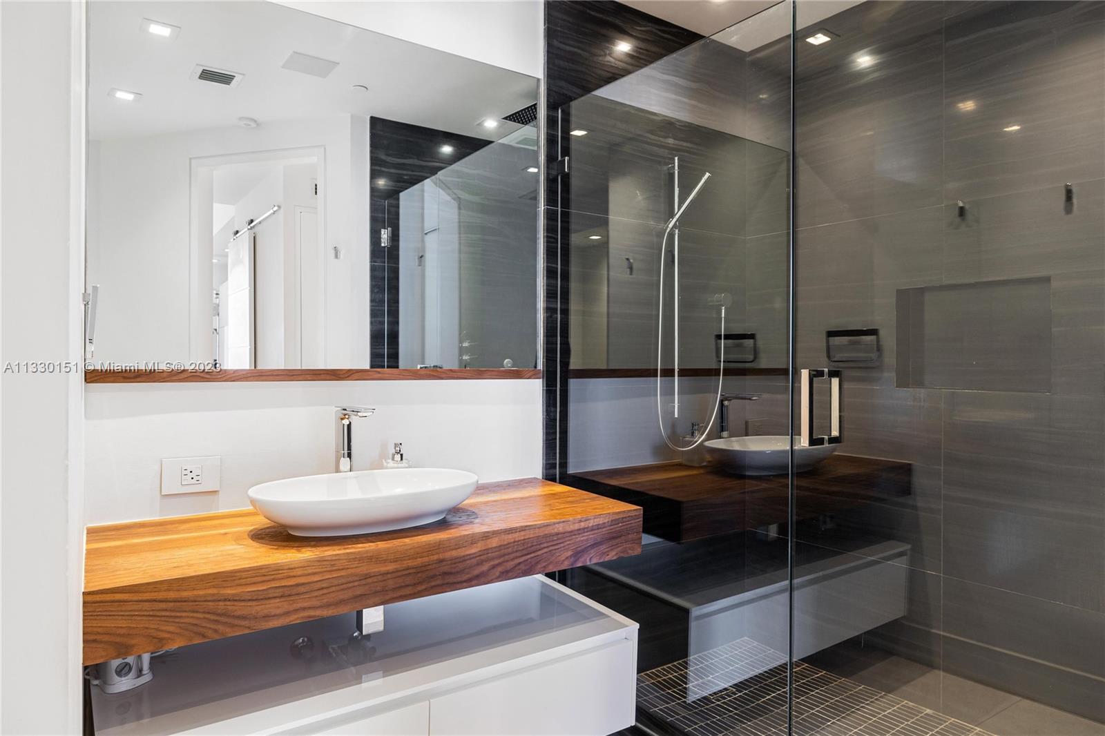 Stunning turnkey condo at the highly desirable Carbonell in Brickell Key. Residence 3207 with 10ft ceilings has been professionally renovated from top-to-bottom with only the finest designer-curated finishes. Warm tones and rich textures are used throughout to create spaces that are striking & modern yet comfortable for entertaining and everyday living. American Walnut kitchen cabinetry and dining room. Onyx countertops & top-of-the-line Sub Zero & Miele appliances. The primary suite offers both bay & city views. Black Marble baths with walnut vanities. Large closets with custom cabinetry. The Carbonell is a full-service building with a state-of-the-art fitness center, Basketball Court, and a gorgeous lobby. The unit comes with two parking spaces & two air-conditioned storage units.
