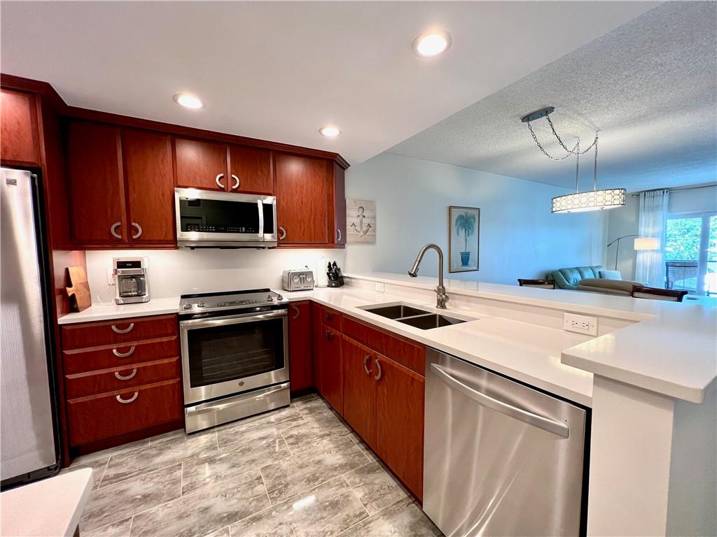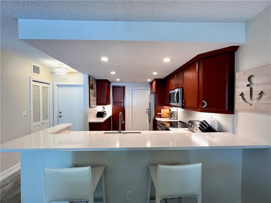 Beautiful completely updated condo ON THE SAND. This bright sunlit SE facing corner unit over the garden and pool is just seconds from the shore - skip the elevator and head down one flight of stairs and you’re there. From the large balcony watch the morning sun rise over the ocean, and set through the palms in the evening. Fully furnished unit features two oversized primary bedrooms with walk-in closets and ensuite bathrooms, open and elegant designer kitchen with quartz countertops & top of the line stainless-steel appliances. Bosch washer and dryer in-unit and hurricane impact windows throughout. Private and gated beach access, secure entry lobby, sparkling heated pool, entertainment room and one assigned parking space complement the comfort and serenity of this Florida beach home.