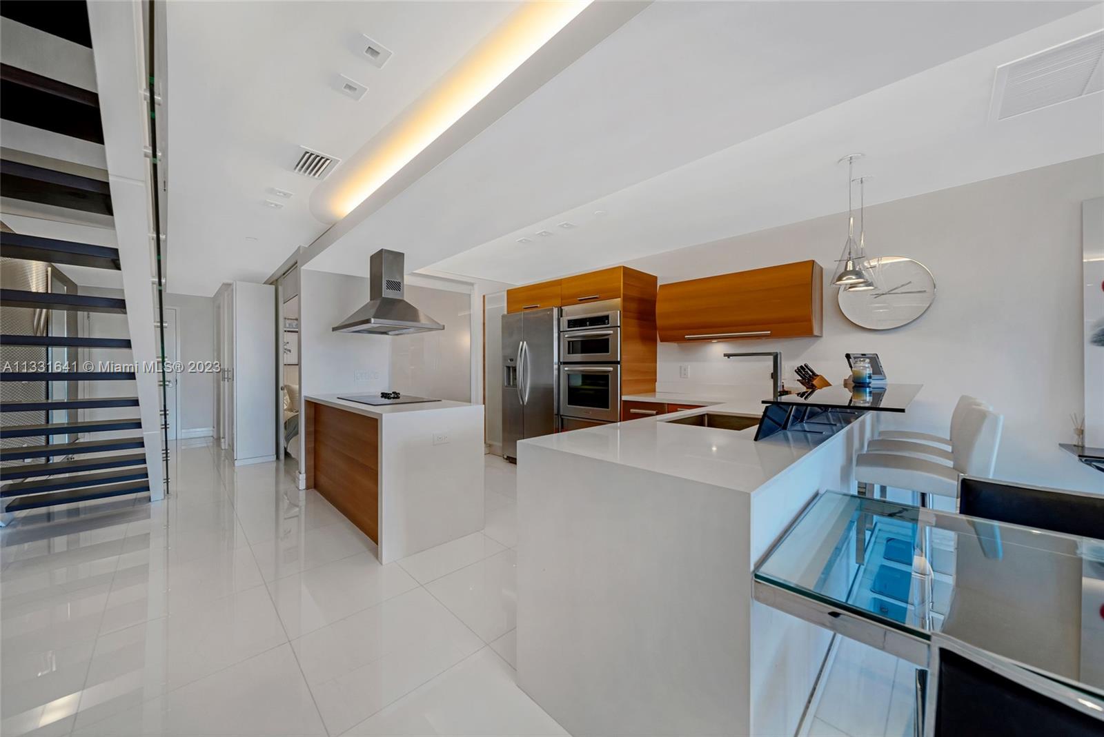 BOATERS PARADISE ! Fully remodeled unit, with 2 floors 1 bedroom + 1 Den turned into bedroom, 2 full bathrooms 2 balconies w views of intracoastal by marina and pool from BOTH LIVING ROOM & PRIMARY BEDROOM + 2 hidden beds in the wall ( check pictures ) . Included 3 assigned parking spaces + Huge Storage + DOCK/MARINA #34 must be purchased with the unit, at a separate cost of $200k ( accommodates BOATS 50-60 in length ). Porcelain floors throughout. Ultra modern ARTECH designed by international ARCHITECT Carlos Ott: 3 pools, 2 tennis courts, fitness center, spa, massage room, racquetball, cinema, lounge, smart technology, 24/7 SECURITY, valet parking etc. Electric vehicle charging station in the garage. Pet friendly community. Close to parks, restaurants, shopping, and the beach.