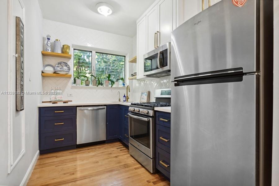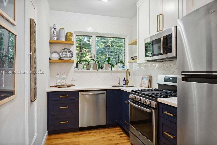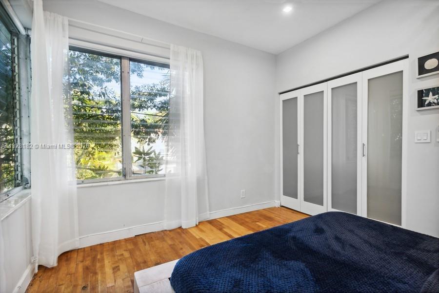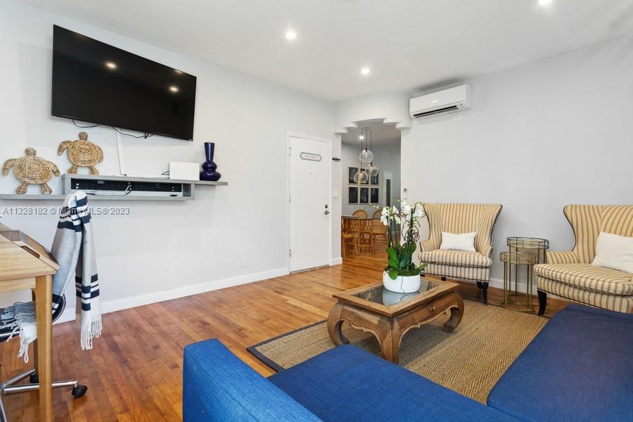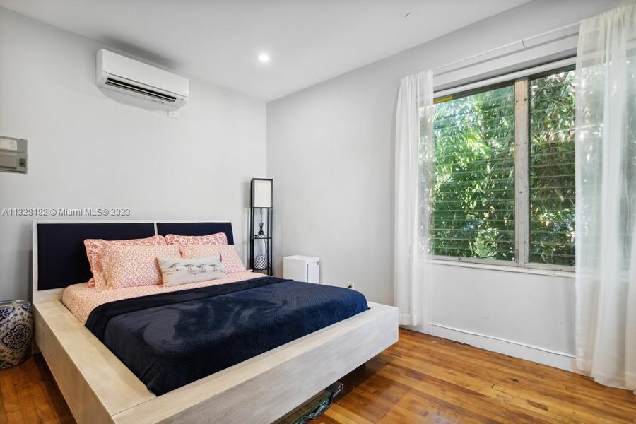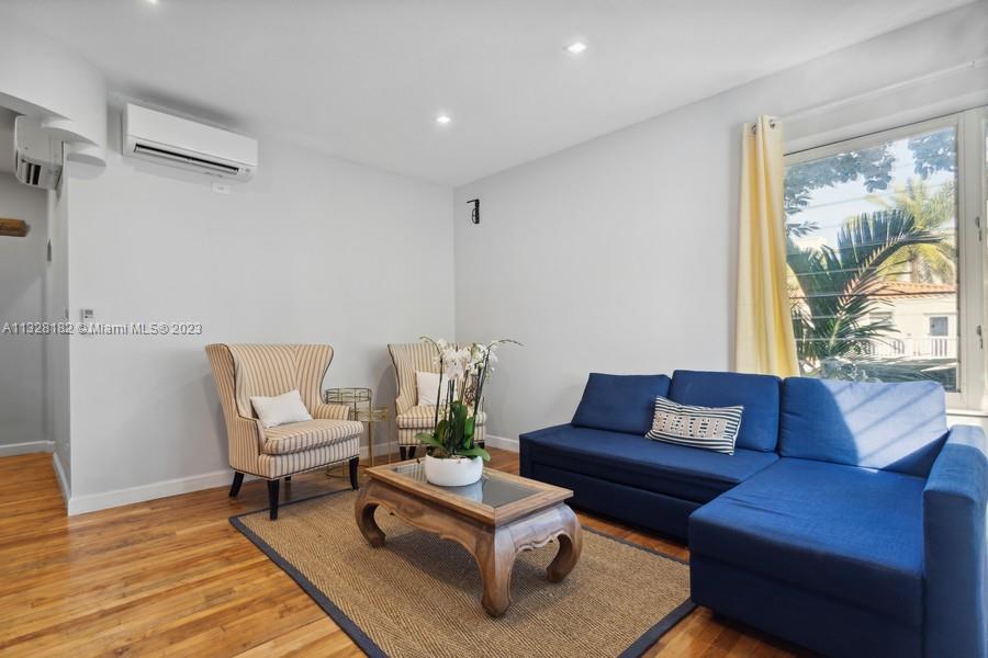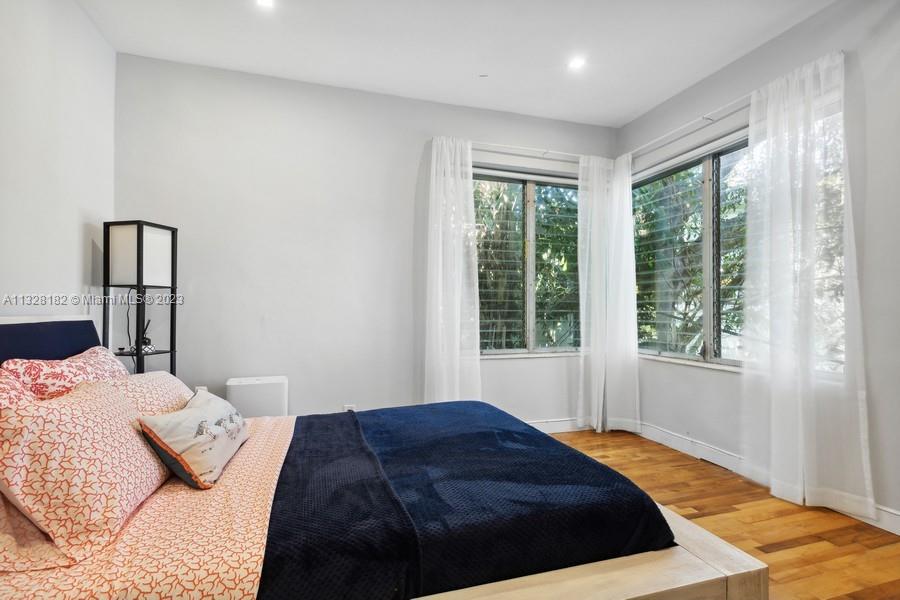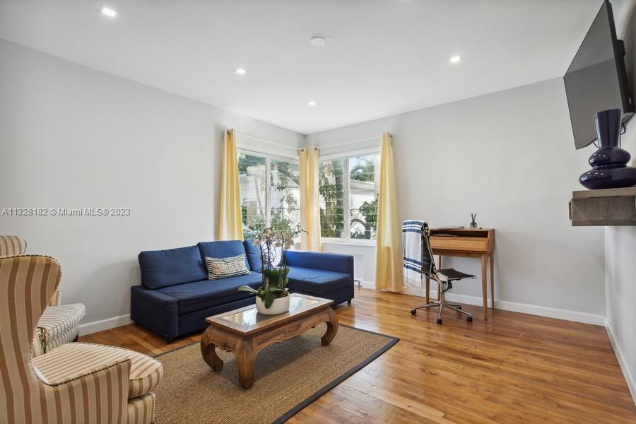 Super stylish private corner unit. This quiet and gated complex is walking distance to Lincoln Road. Low rise with only 4 units per building. There are 3 private buildings, in a garden setting. This is the rear upstairs unit with treetop views and privacy. Corner windows bring in a lot of light. Full list of high-end upgrades include kitchen, appliances, bath, split air conditioners, closet built-ins, and recently painted. The special 1930's character shows through and through. Genuine oak hardwood floors and arches bring you right back to that original Miami Beach style. This spacious unit with a perfect floor plan is ready for you to move in!