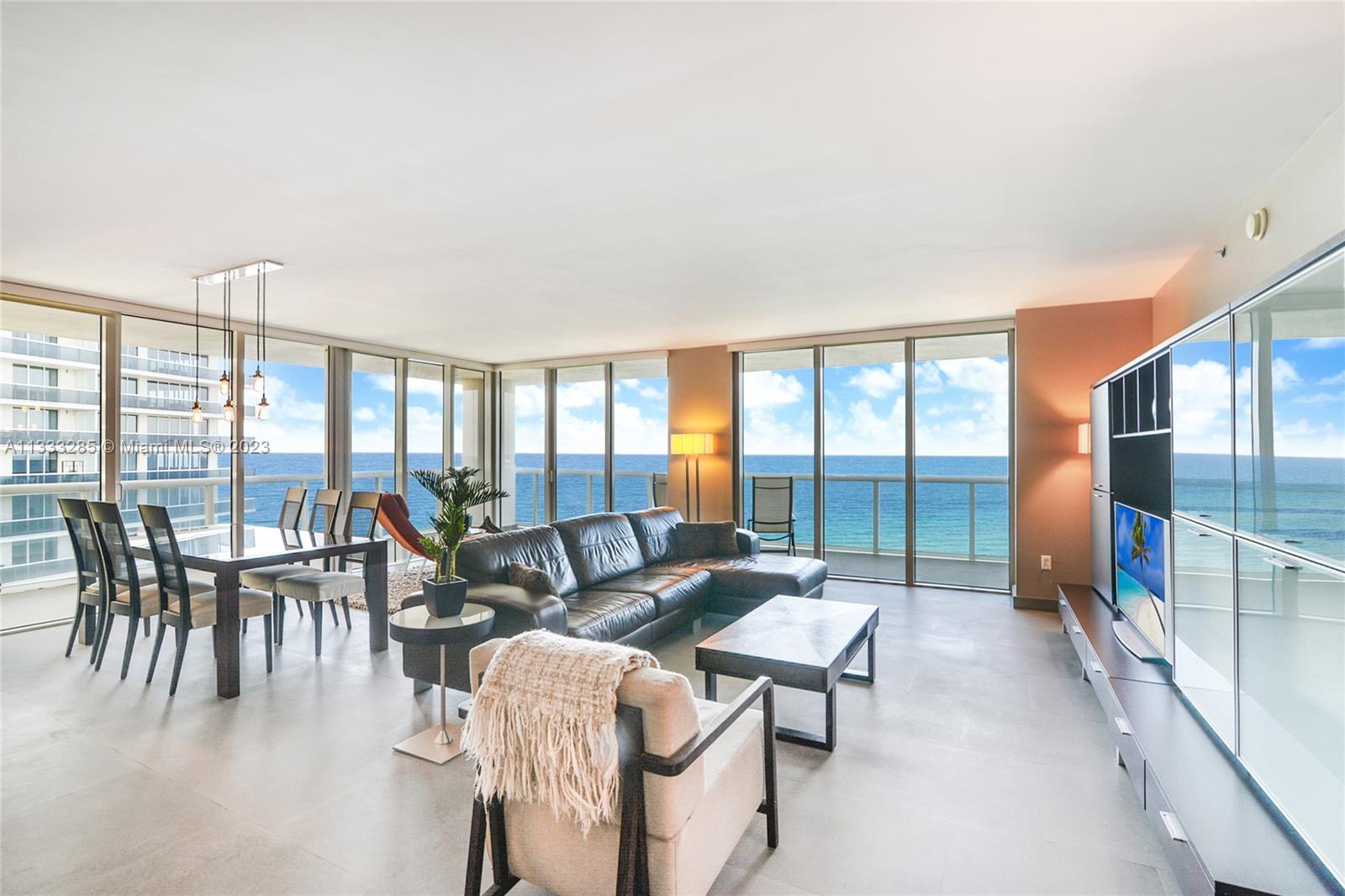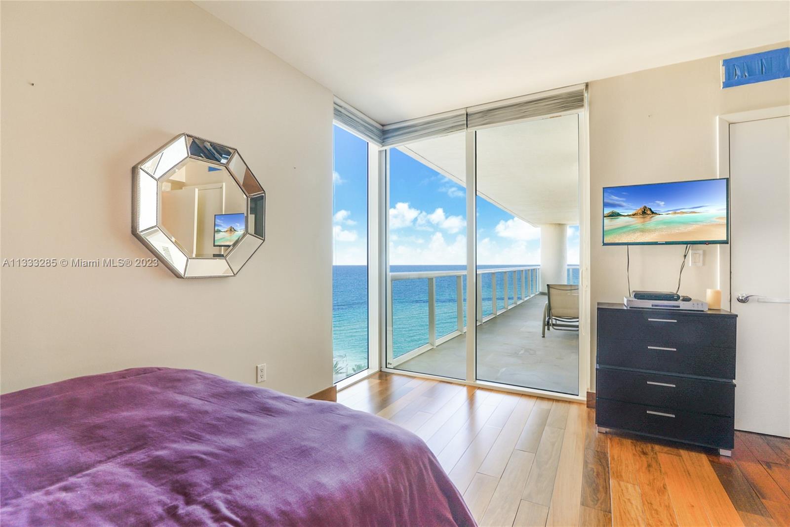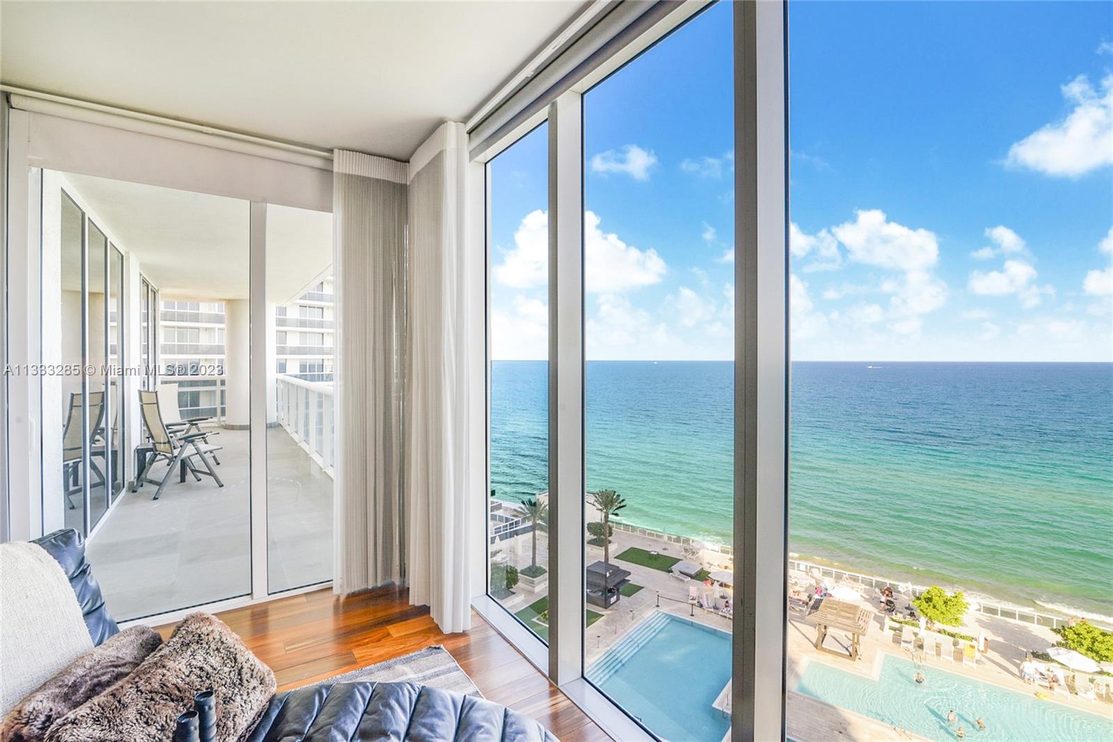 Large corner unit with direct Ocean views. Spacious 3 Bed / 3.5 Bath with oversized terrace, grey ceramic floors in the living areas and wood in the bedrooms. BEST Priced 3 Bedroom in the Building. 24 Hour security and front desk, state of the art gym and spa, pool and beach service, restaurant in pool area, etc.