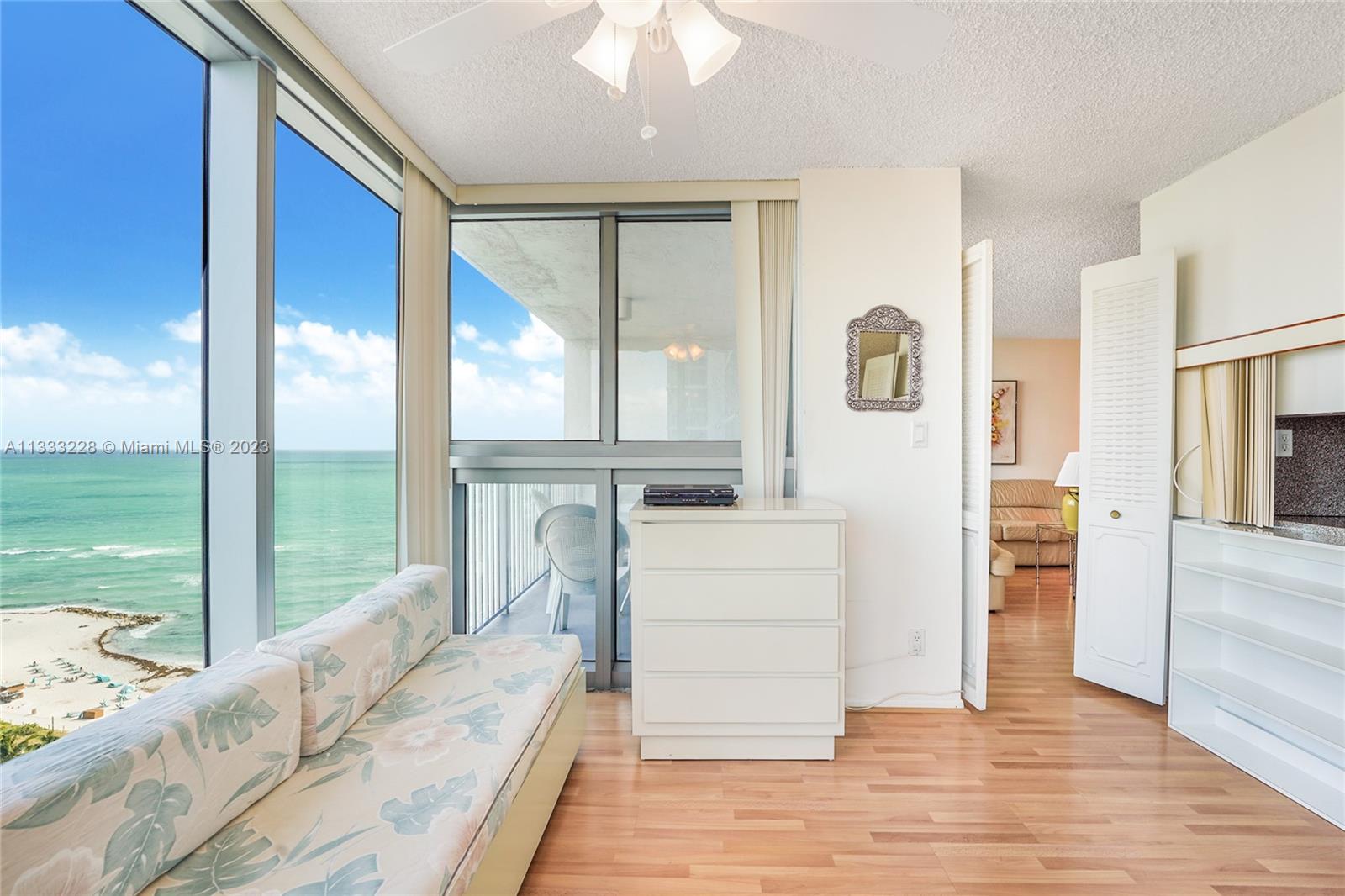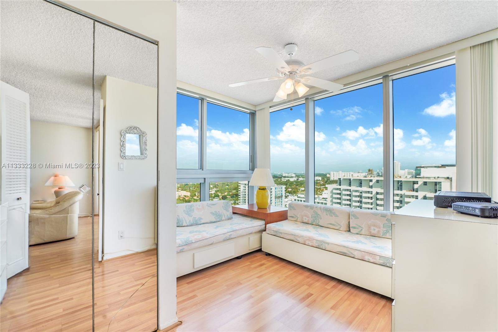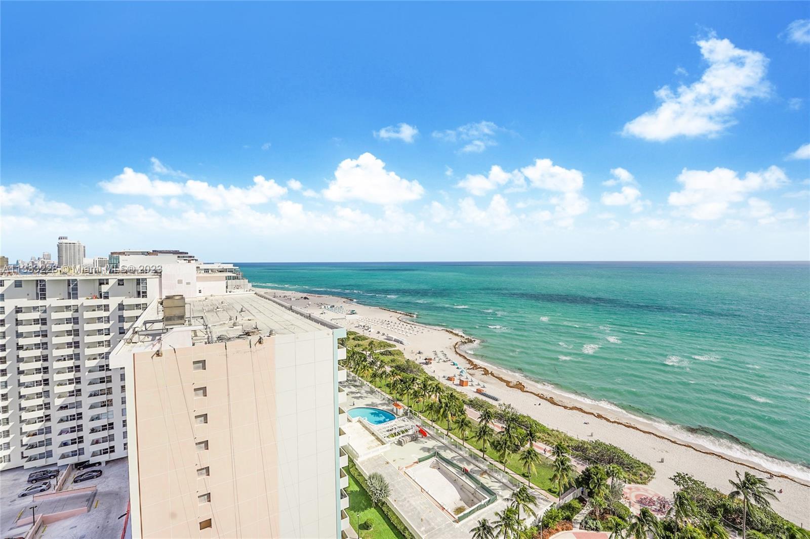 High Floor apartment with panoramic views of the Ocean, Intracostal and Miami Beach skyline. Amazing opportunity to update this large 1 bed + Den (used as guest bedroom) with 2 full bathrooms. Impact glass windows throughout, large balcony. Full service building with direct access to the beach. 1 covered parking space and 1 storage room. Amenities include Jacuzzi, sauna, heated pool, billiards, exercise room, business center, event halls. You can use the boardwalk all the way to South Pointe. Also next to Edition Hotel and Faena.