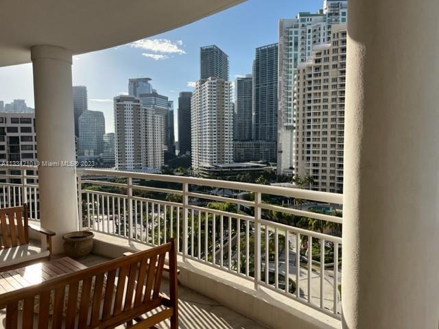 One of the largest two bedroom units at Two Tequesta, huge patio with spectacular views of the bay, city, and the river. You can enjoy fireworks on New Year's Eve from the balcony. Dining area, kitchen with breakfast area and walking closets. Great move in condition. Building has great amenities such as tennis, excellent gym with cross-fit, indoor basketball, squash, massage room, kids room, party room, card room, conference room. Easy to show