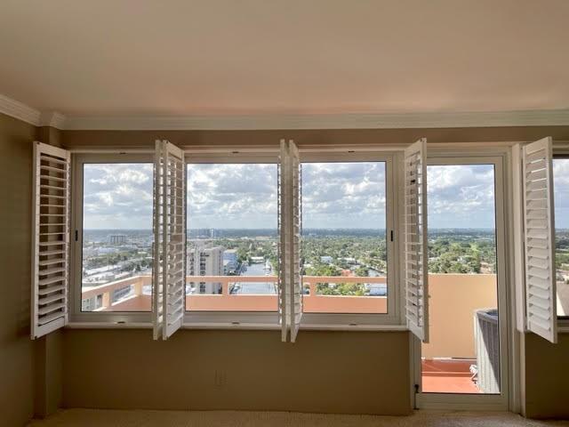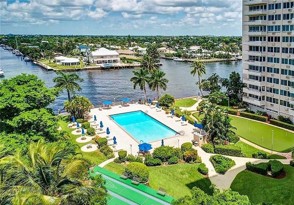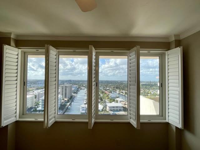 Rarely available TOP FLOOR SOUTHWEST CORNER PENTHOUSE! Breathtaking balcony and windows views of Ocean, direct Intracoastal, western city and sunsets views and north up the canal! Every view is amazing! Very, very clean and immaculately maintained unit ready for your finishing touches. Central a/c, impact windows and doors, crown moldings, Plantation shutters, neutral colors and huge amounts of storage space. Look no further and make this one your own. Secured lobby with 24 hr. doorperson, exercise room, library, social room, putting green, bbq area, shuffleboard, bocce, heated pool and peaceful dock on the intracoastal. Located across the street from the beach, close to shopping, restaurant's and more. Fee includes cable tv. One assigned parking & storage spot. Cash purchasers only.