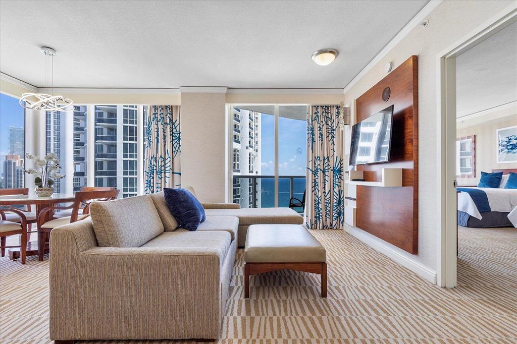WATER VIEWS EVERYWHERE IN THIS AMAZING INVESTMENT OPPORTUNITY 1 bedroom, 1 bath, full kitchen, spacious living area and balcony overlooking the beautiful ocean and intracoastal at Trump International Beach Resort, unit comes with washer and dryer and fully furnished. Trump International is a Luxurious Four Star Rated Condo Hotel located in Sunny Isles Beach featuring luxurious amenities including private beachfront, multiple pools & cabanas, 24-hour fitness center, Aquanox Spa, 4 restaurants & lounges, tennis courts, over 22,000 SF of meeting & banquet space, Planet Kids & much more. You can also enjoy the amenities of Trump Royale as a guest. Rent this unit privately on Airbnb, Booking, Vrbo, etc for max. return or through the hotel program. FINANCIAL STATEMENTS PROVIDED UPON REQUEST.