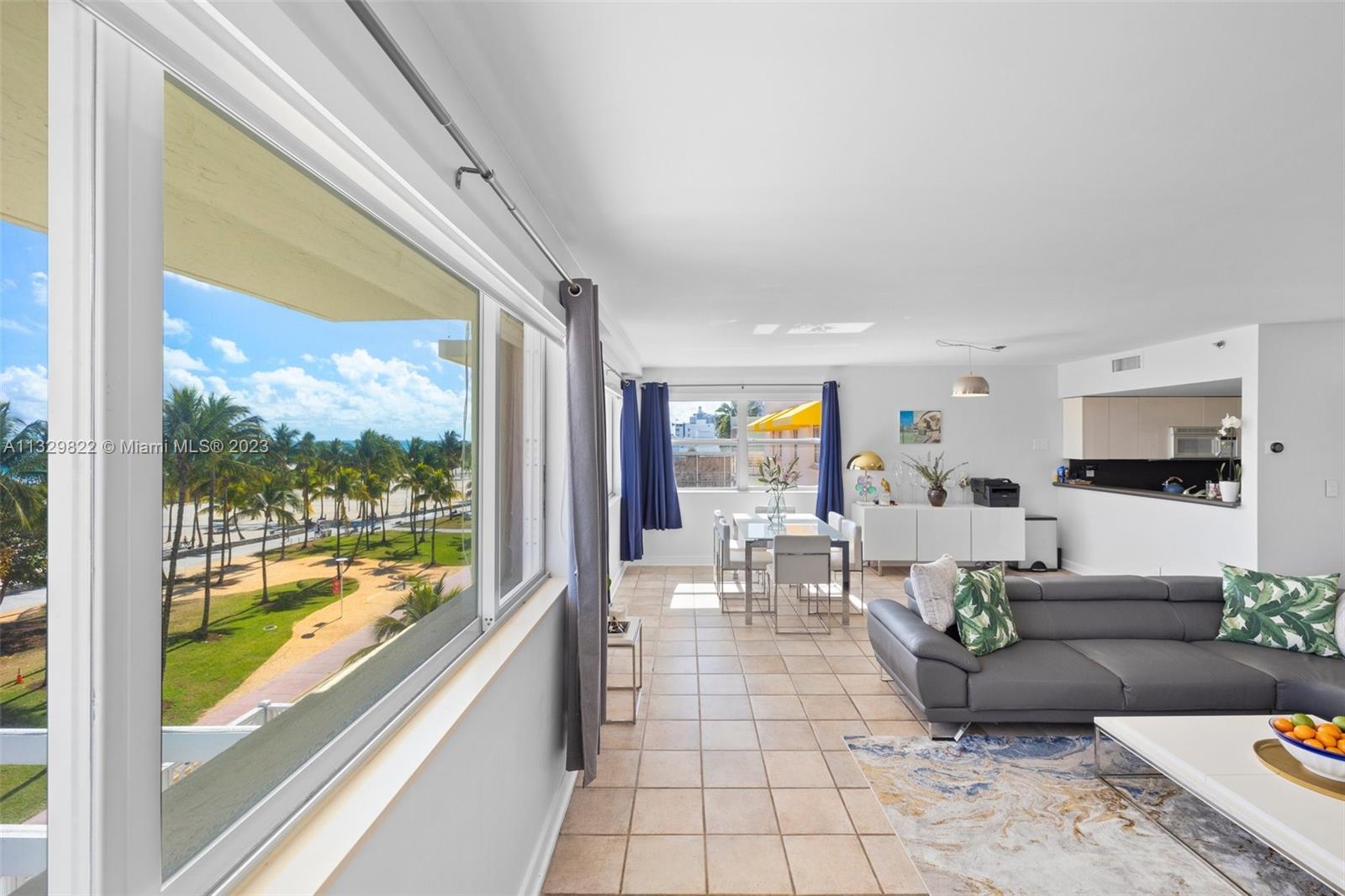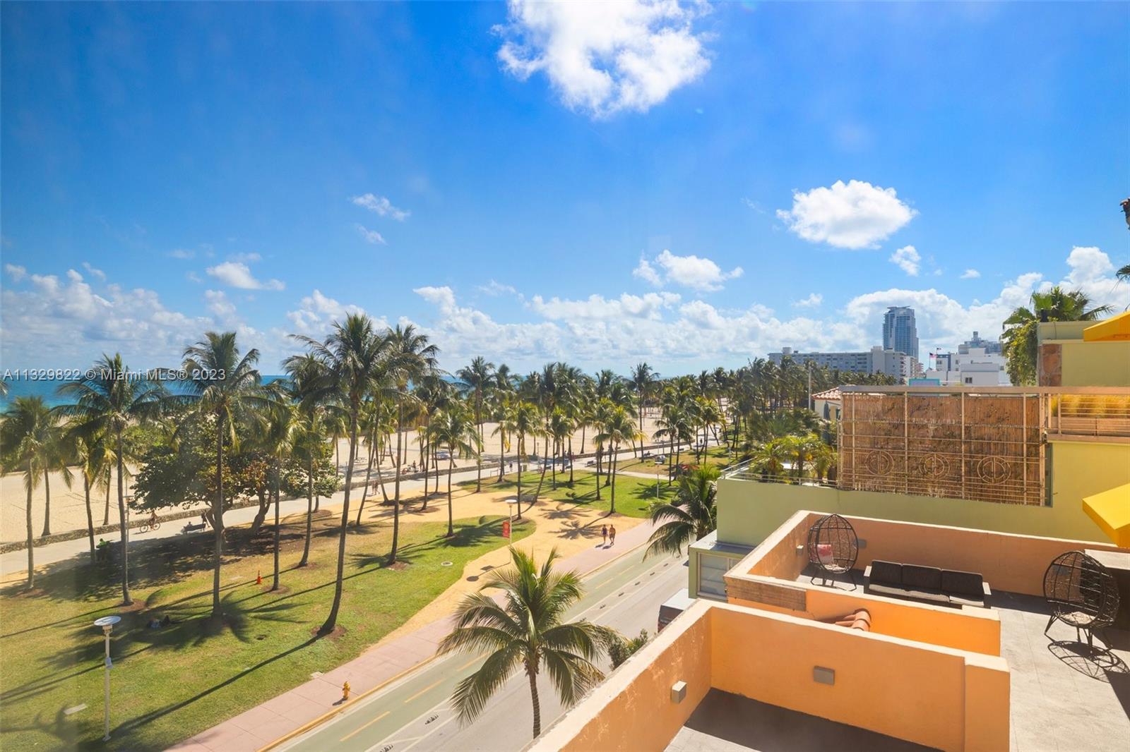 LOCATION! LOCATION! One of a kind. Located on the world famous Ocean Drive and across from one of the most beautiful tropical beaches, this Art Deco 2 bedroom 2 bathroom apartment features a very large living room overlooking the ocean, park and boardwalk. The property has no rental restriction which makes it the ideal property for vacation homeowner rentals and investors. The apartment can be rented daily through the management company of the hotel or independently. HOA includes cable TV, internet and electricity.
