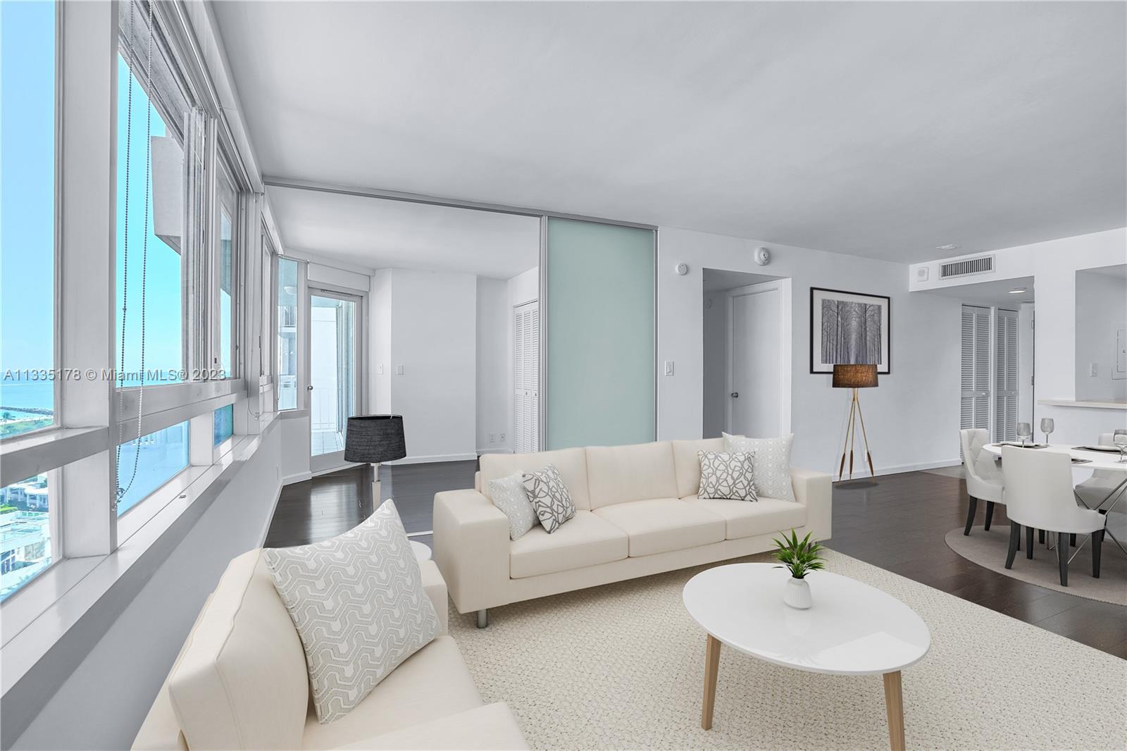 Incredibly neat 2 bedroom 2 bathroom residence offering sweeping views of the Atlantic Ocean from every room and your own private balcony. Versatile 2nd bedroom with a sliding partition is perfect for guests or a private home office. Full service luxury building includes 24hr security & valet, newly renovated gym and pool, tennis courts and more. Steps from the beach, Marina, restaurants, and all South of 5th has to offer. Parking and storage unit. PRICED TO SELL!