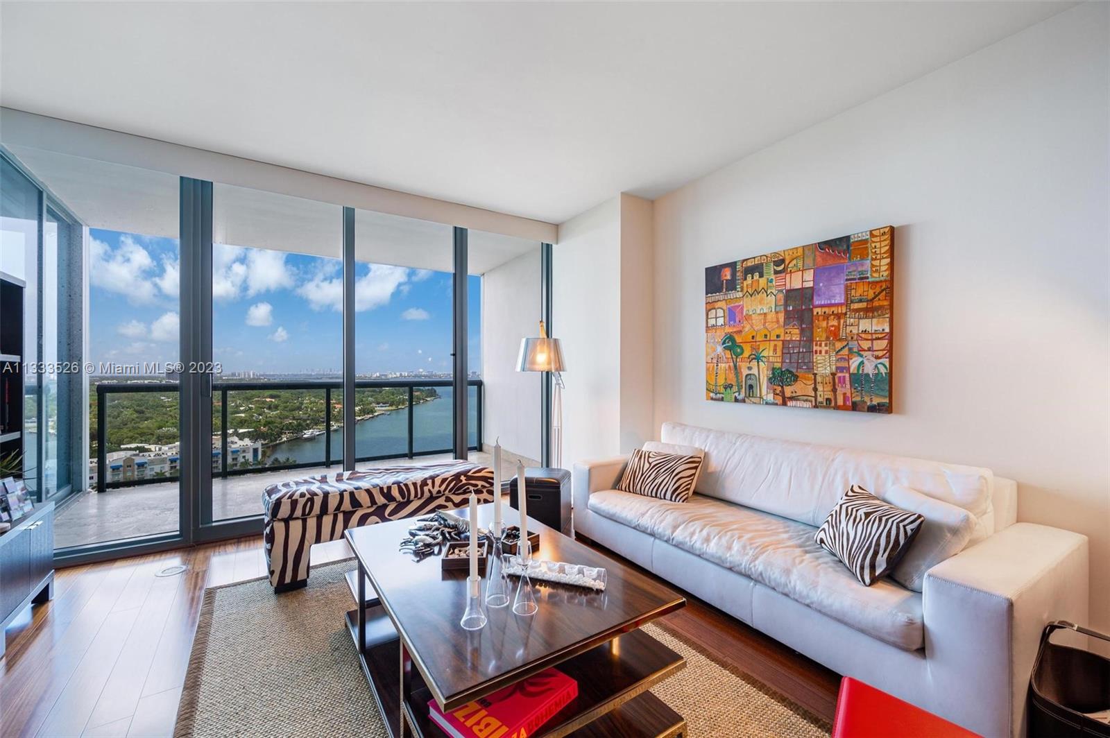 Spectacular 2BD/2.5BA with 1,158 SqFt and balcony at the BLUE in Edgewater Miami. It offers open Northeast views of Biscayne Bay from floor-to-ceiling windows. Features cherry wood floors throughout and electric blinds. One parking space + 1 complimentary valet. BLUE residents enjoy gym, sauna, steam, two pools, one for laps, both heated, jacuzzi, grills, theater & game room. Business center, security & valet. Located on Julia Tuttle Causeway entrance, minutes from Miami Beach renowned beaches, dining and shopping. Across from Mid-Town and Design District. Furniture available for purchase.