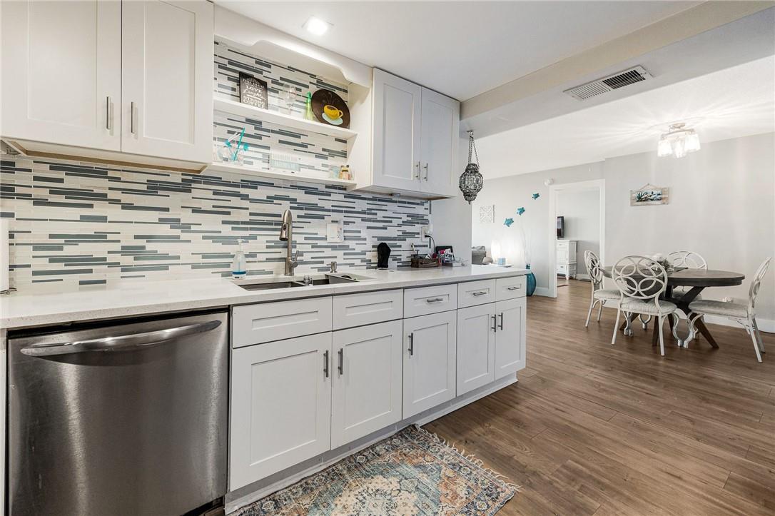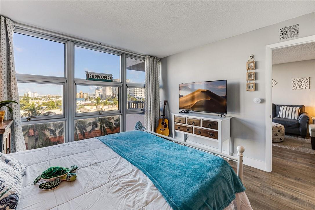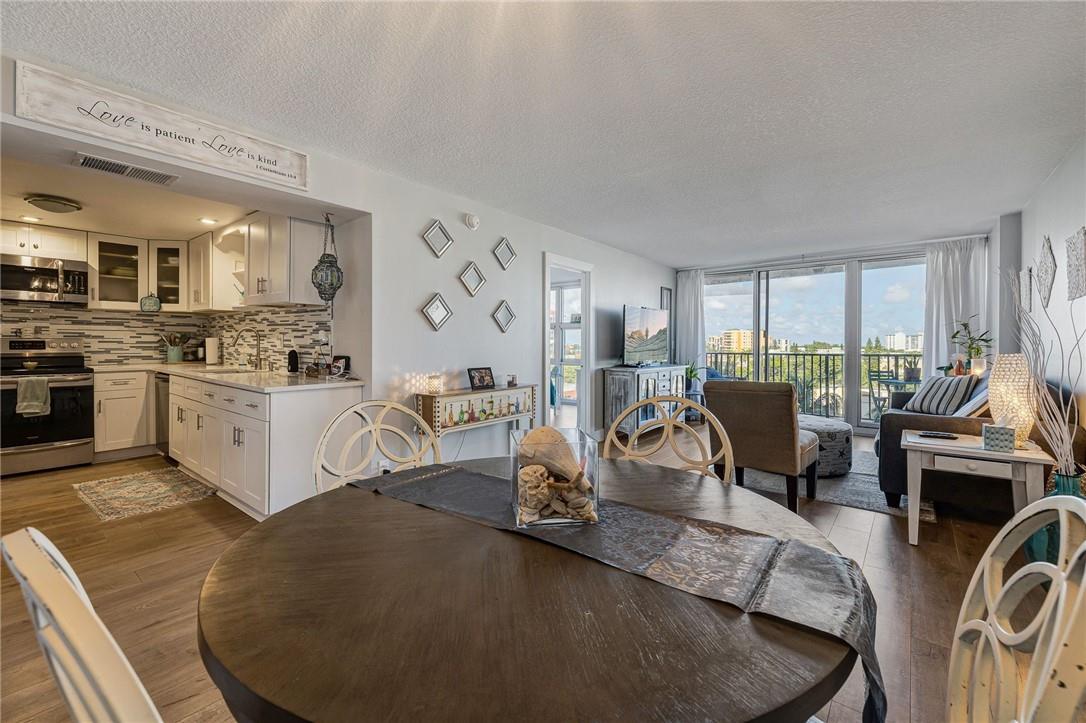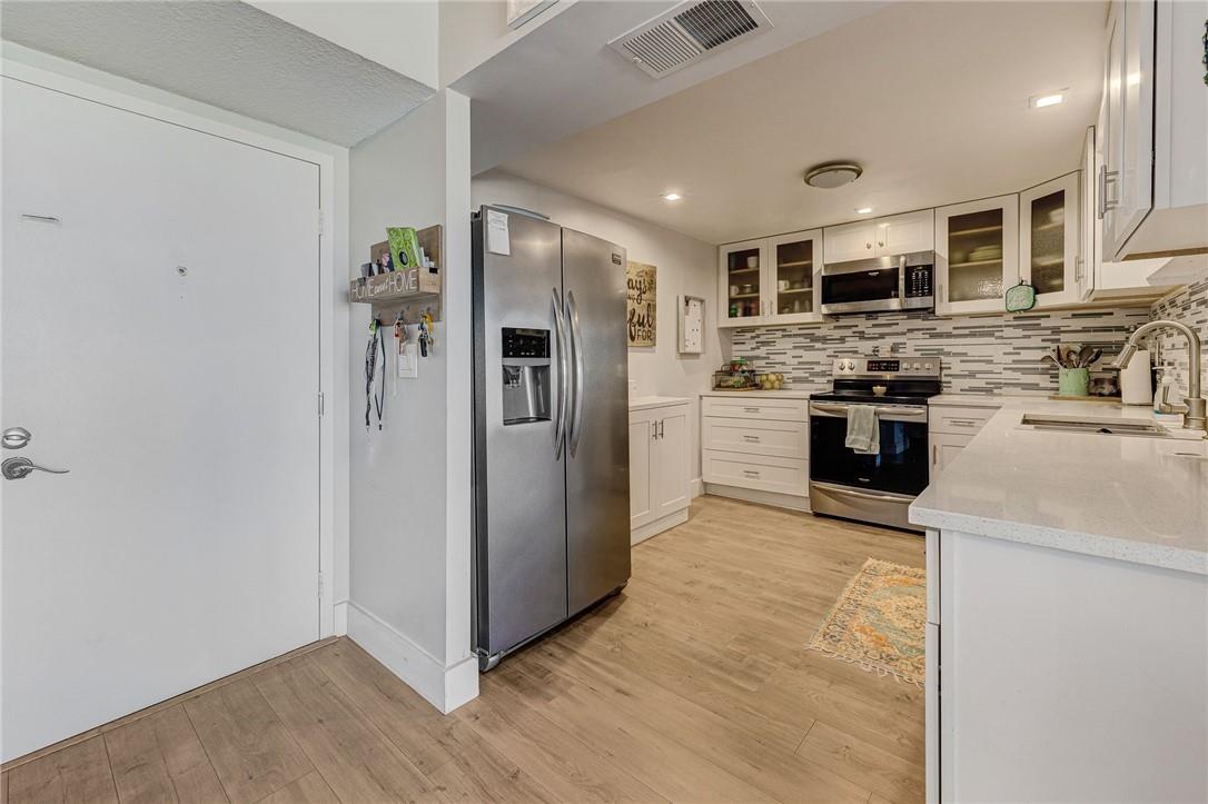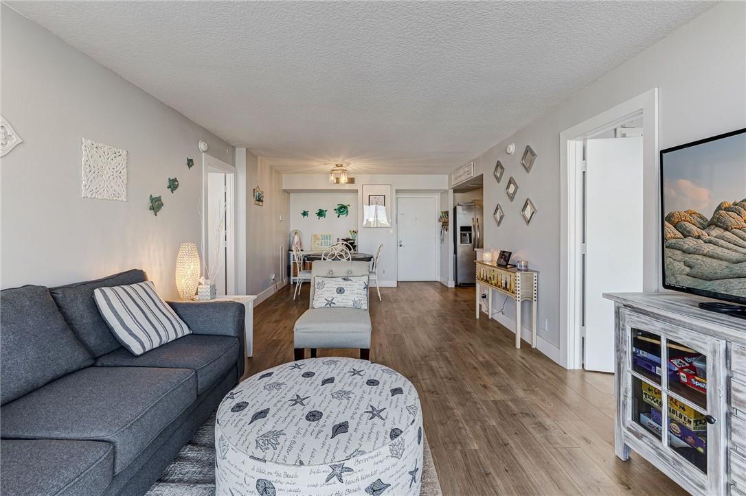 UPDATED PRICE! This 2 bed/2 bath move in ready across from the beach with beach access. No detail missed in this property, updated bathrooms, updated kitchen, stainless appliances, newer water heater, (2) barn doors in the guest room, all carpeting has been removed, popcorn ceilings have been removed, Covered parking spot, with 3 complete outdoor kitchens by the heated pool(s). Enjoy the workout area, sauna, bocce court, join the pickleball club, tennis and or relax at one of the two heated pools. Watch the Holiday fireworks or boat parade from your balcony, come and see, this property will not last long!