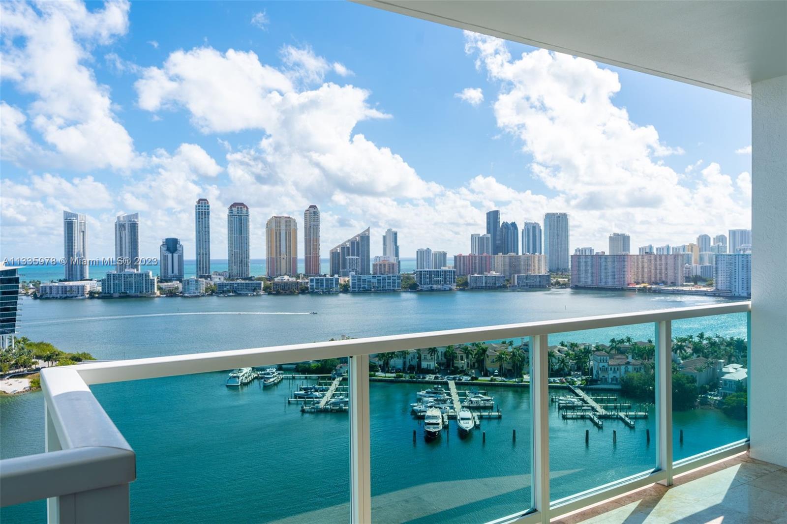 Amazing Views in the Heart of Aventura! This chic high floor residence boasts stunning panoramic Intracoastal, ocean, & skyline views! Offering 2 spacious bedrooms + den (can be used as a 3rd bedroom), 2.5 bathrooms, 2 balconies (1 facing East & 1 facing West), a private elevator w/ foyer entry, 2,970 SF of living space, impact windows, gorgeous marble floors, & a gourmet eat-in kitchen w/ breakfast bar, top-of-the-line appliances, & granite counters! In the primary suite enjoy balcony access, Western sunset views, a walk-in closet, & an oversized bathroom w/ dual sinks, dual toilets, & separate shower & jacuzzi tub! Perfectly located on the water's edge! Near all Aventura has to offer: A+ schools, beaches, Aventura Mall, Houses of Worship, & endless dining!