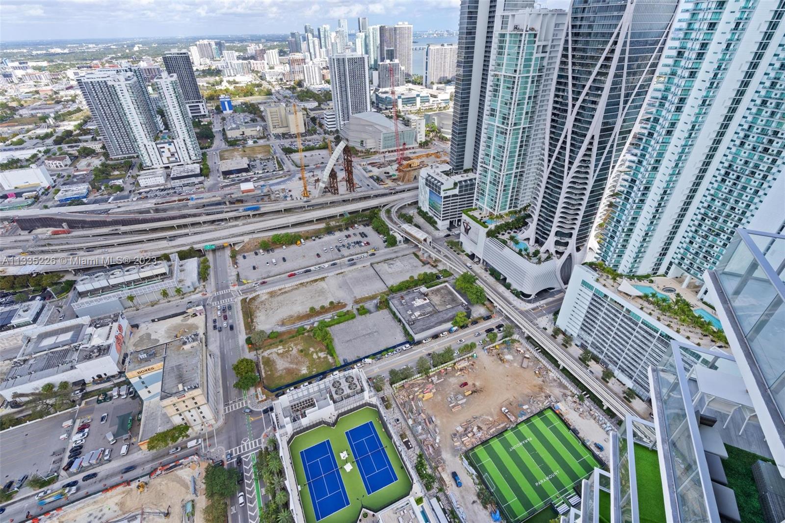 Paramount Conveniently located next to interstates 95 and 395, several metromover stations, and adjacent train station. Just a minute from Miami International Airport; Elevator opening to private foyer. This three- bedrooms residence plus convertible den, Spacious chef kitchen with an island and breakfast bar with Quartz counter, Sub-Zero 36' , Bosh appliances. Paramount Miami is set up a top massive Upper Deck at the foot of your residence complete with soccer field, tennis court, multiple private pools, poolside Bungalows. Exclusive villas, dog park, movie theater, recorder studio, complete training and fitness center with boxing studio, indoors basketball, game room resort-stile pool, sunked seating pods, private resident soccer field.