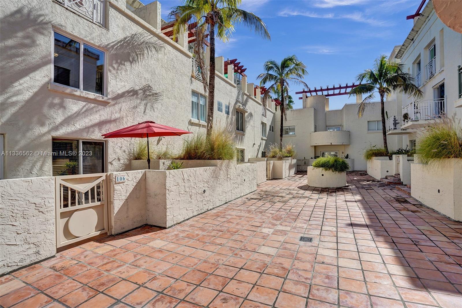 One-of-a-kind 4-story townhouse, 3 bed /3.5 bath townhouse with 3 parking spaces located in charming gated Villas at South Beach Condo. This spacious floor plan with travertine tiles and laminate floors features: on the first floor an entry door, a 1-car garage with washer/dryer, and one additional parking in front of the garage; on the second floor a private courtyard opening to the main entrance of the unit, the living room, the kitchen, a powder room, and the dining room; on the third floor 2 bedrooms each with their own bathrooms; on the 4th floor a large master bedroom with a balcony and an updated bathroom. The unit has a third parking spot in the covered garage. Great location in the heart of South Beach walking distance from the ocean, restaurants, shops, and more.