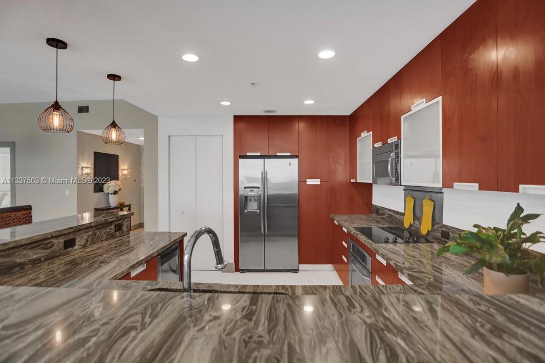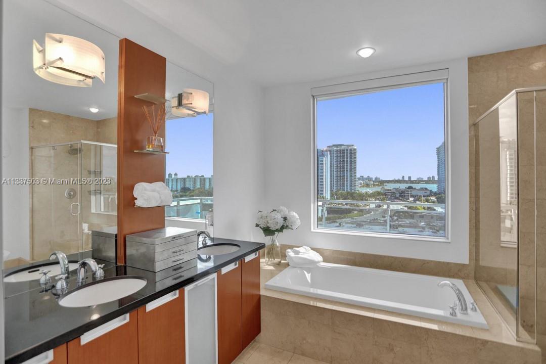 Enjoy breathtaking views of the Bay in this perfectly situated home in North Bay Village! The open layout, tile flooring, and modern touches throughout will make you feel right at home. The kitchen will serve you well with its granite countertops, tile backsplash, stainless steel appliances, and ample storage space. Drink your coffee while watching sailboats and the occasional dolphin sighting. The living room is flooded with natural light from floor-to-ceiling windows. Bedrooms are situated right off the main living area, where you'll find a guest bedroom with a full bath, and your owner's retreat featuring a custom closet. Spend evenings soaking in the sunset from your private wraparound balcony.