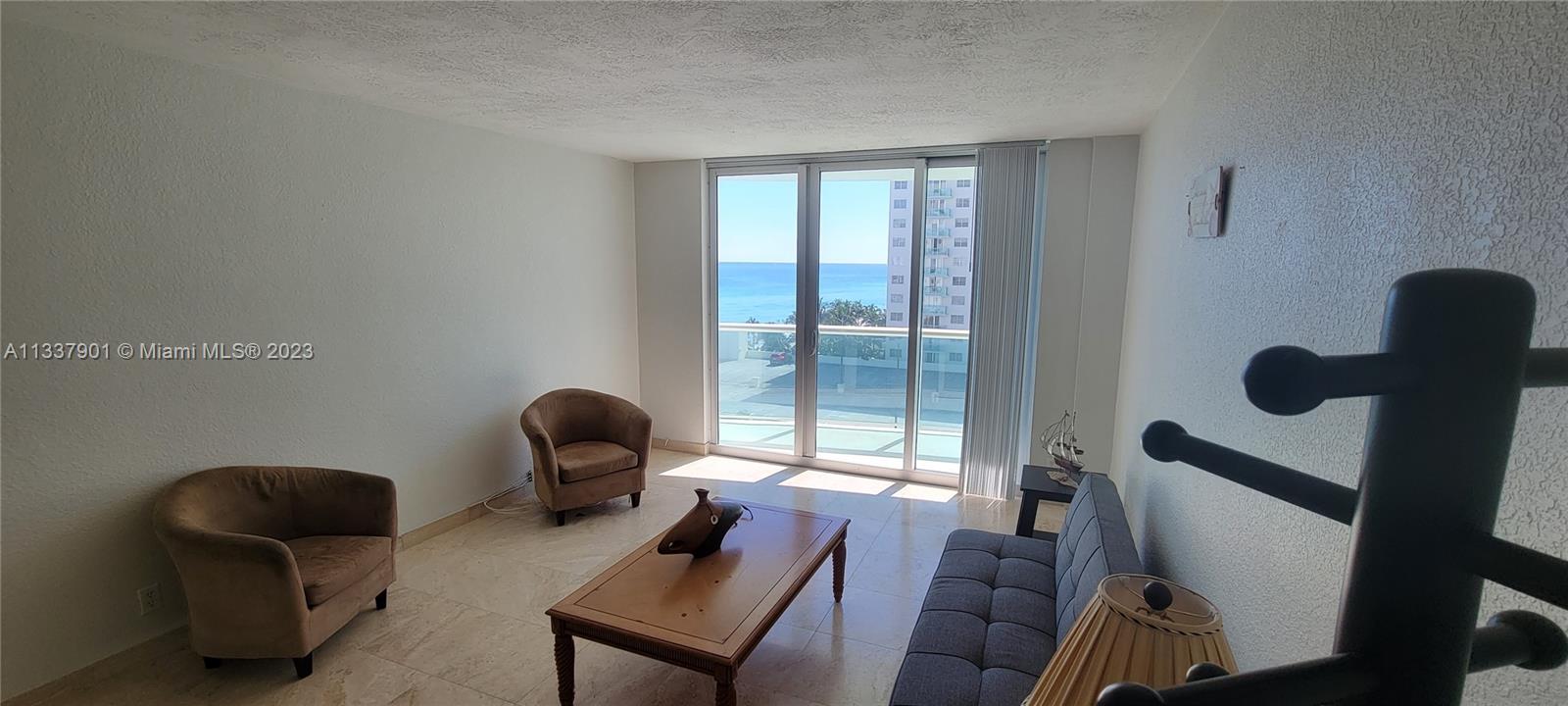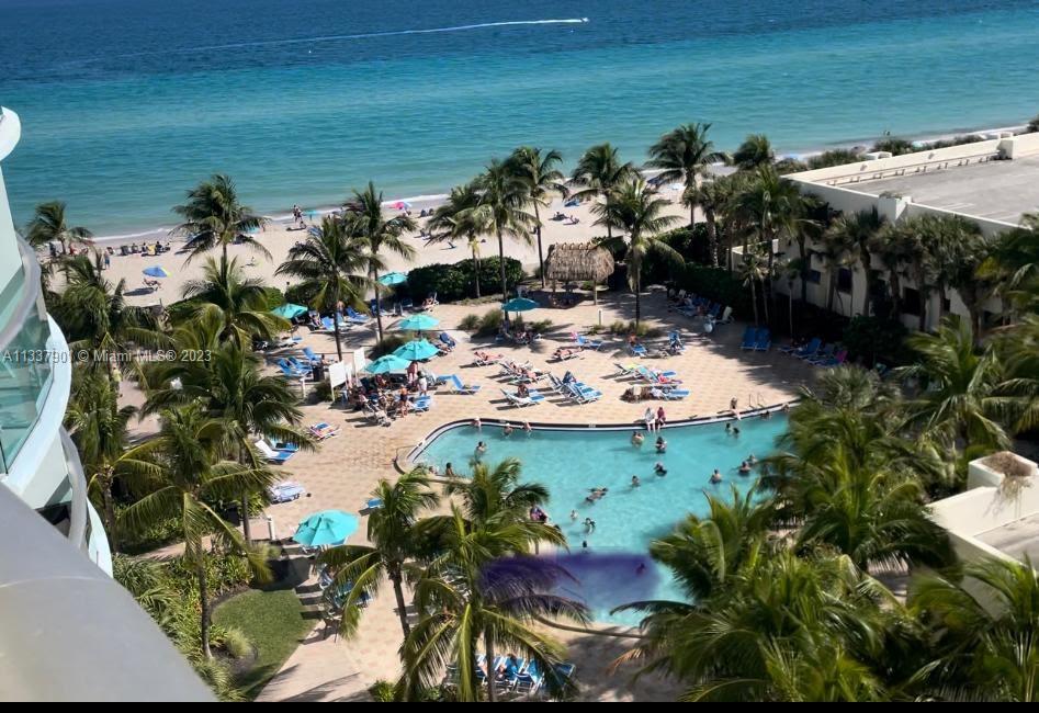 Great Opportunity, 1 bedroom condo with beautiful view of ocean from Living room and balcony. S.E. exposure. Kitchen has upgraded counter tops, floors throughout are marble, Building has 2 pools, gym, business center and more. Maintenance fee includes both cable and wifi. Building has No rental restrictions