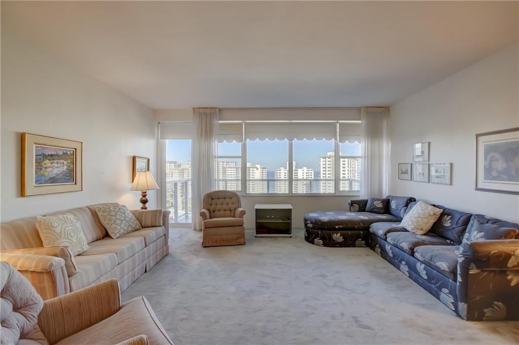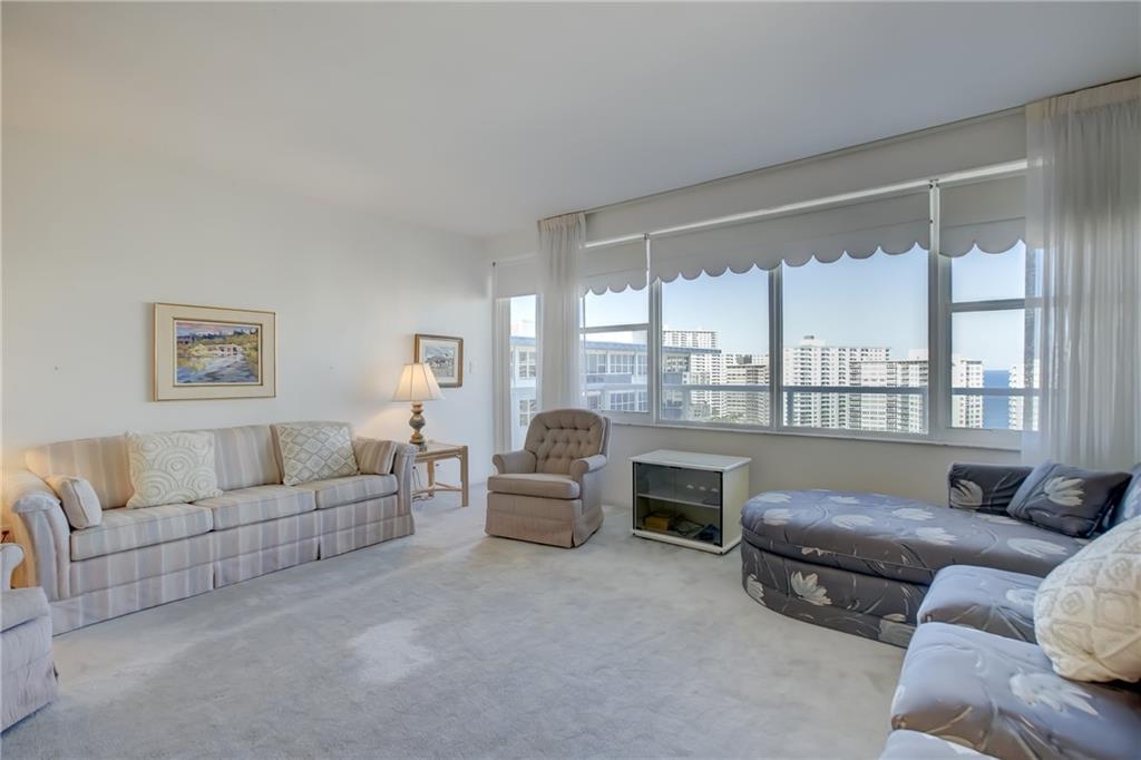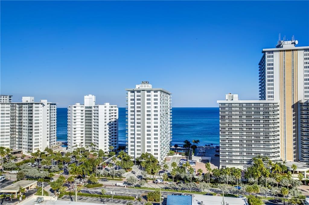 STUNNING DIRECT OCEAN VIEWS in this top floor penthouse large one bed/one bath. New roof was just completed along with major multi-million $$ building upgrades. All building work is paid for and fully funded reserves. Original Mid-Century modern design with the Kitchen and bath both CLEAN and in good condition. Best deal in all of Broward County to be this close to the beach with full amenities!! 24 hour security, year round heated pool, bocci ball court, separate clubhouse on the Intracoastal. A 5 acre oasis in the middle of walking distance to everything - restaurants, retail, grocery, entertainment, golf, boating. 55+ community. Cable TV & internet included in $677 monthly maintenance. Come enjoy the good life.