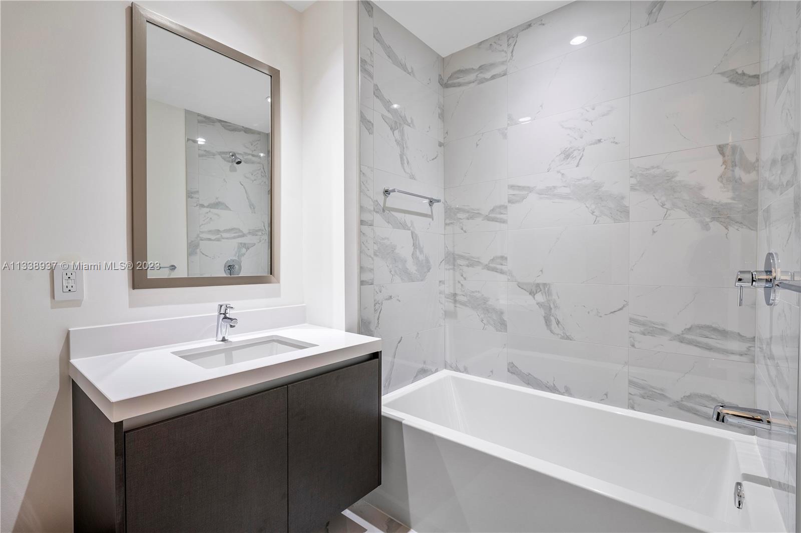 Ready to move in! This amazing unit has 1 bethroom + den and 2 full bathrooms, private foyer and elevator, spacious custom closets, 10 ft ceiling, huge balcony, automatized windows shades. Open European kitchen style with Bosh appliances, Sub-Zero refrigerator, washer and dryer in the unit. This 58-story condo is known as the building with the most amenities in the world with Resort style pools, spa, Basketball court, tennis and soccer fields, movie theater, recording studio, gold simulator, game tables area, mini market, gym with professional size box ring and more.