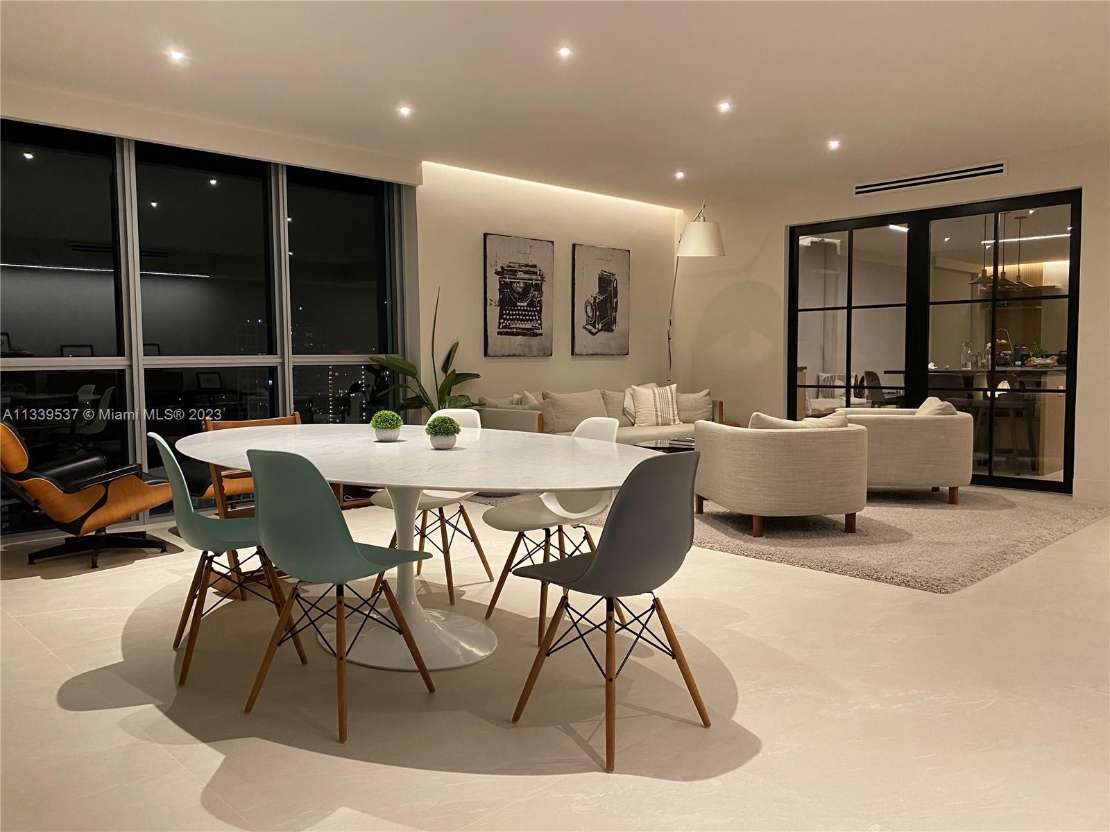 A timeless, elegant zen masterpiece in the skies of Jade, Brickell. Double corner unit, 3/4 (easily convert into 4beds) offers unique terrasse space (tot 800sqf into 3 balconies) with direct views of the bay, the miami skyline and the city all in the heart of brickell. Fully renovated. Living/Dining/Kitchen area has been redesigned to be fully open with an option to be separated with pocket french doors.High end Porcelanosa large tiles all throughout. Custom designed built-in wood veneer closets and cabinets in Kitch, M.bath and all closets. Brand new Miele/Subzero appli. Smart LED lighting system. Fully automated window treatment with blackouts in all beds. M.bath and M.closet gorgeously fully redesigned. M. Bed and Living have unobstructed SE water views. Private elevator.