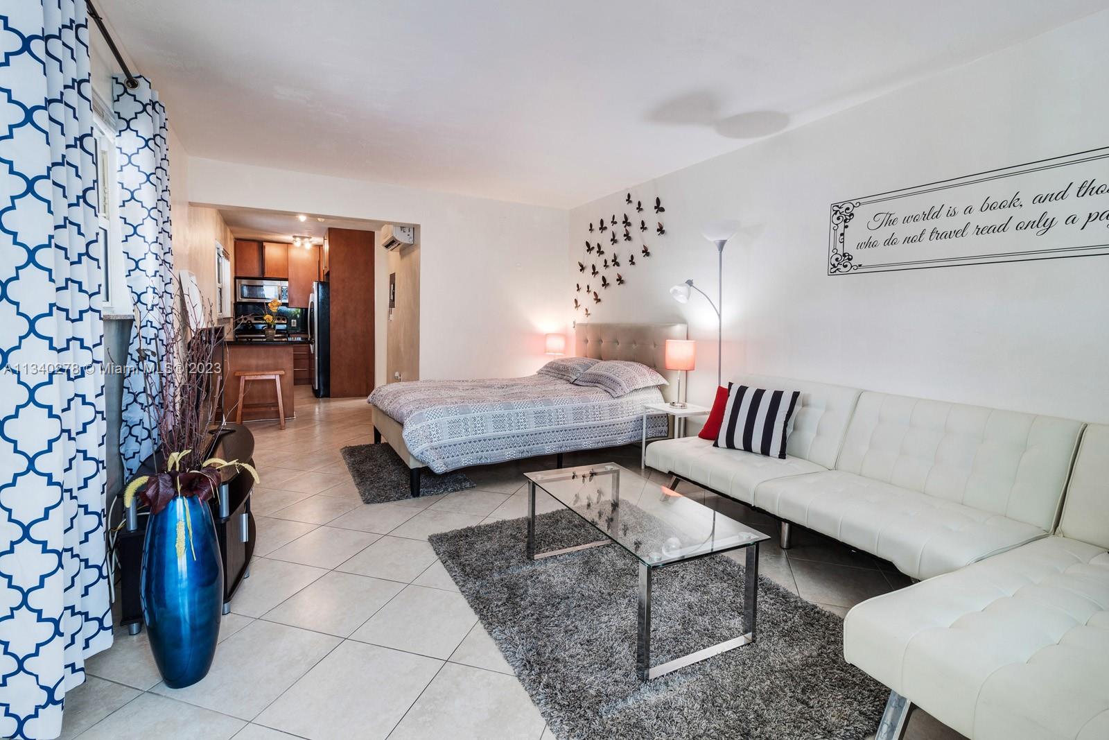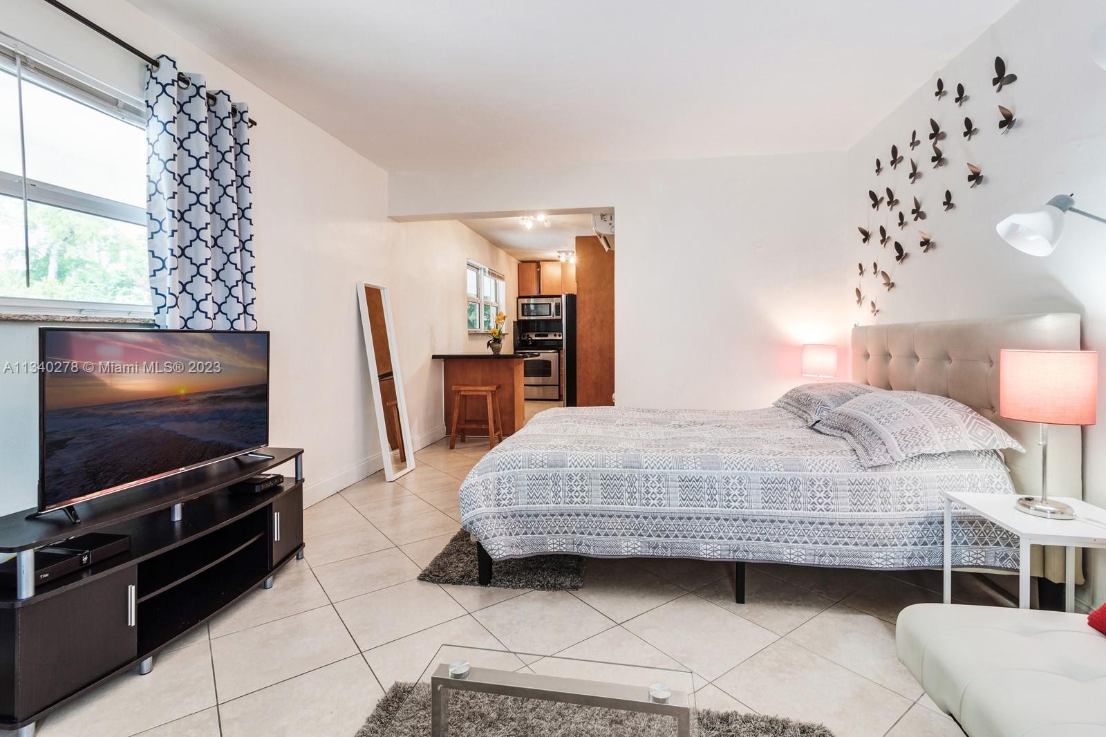 Beautiful studio apartment in a quiet neighborhood, all kitchen appliances are in good shape, tile floors, A/C unit is few years old. Perfect vacation condo walking distance to the beach, Low HOA. The building successfully went through structural and electrical examination in December 2022. No parking assigned. Lease 180 days min 2 times a year