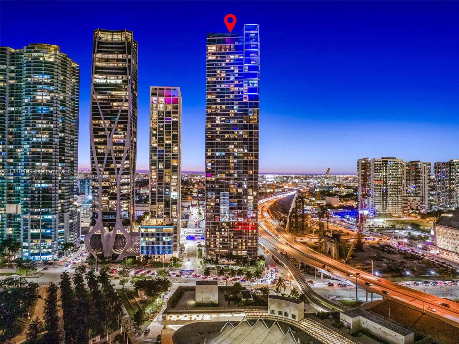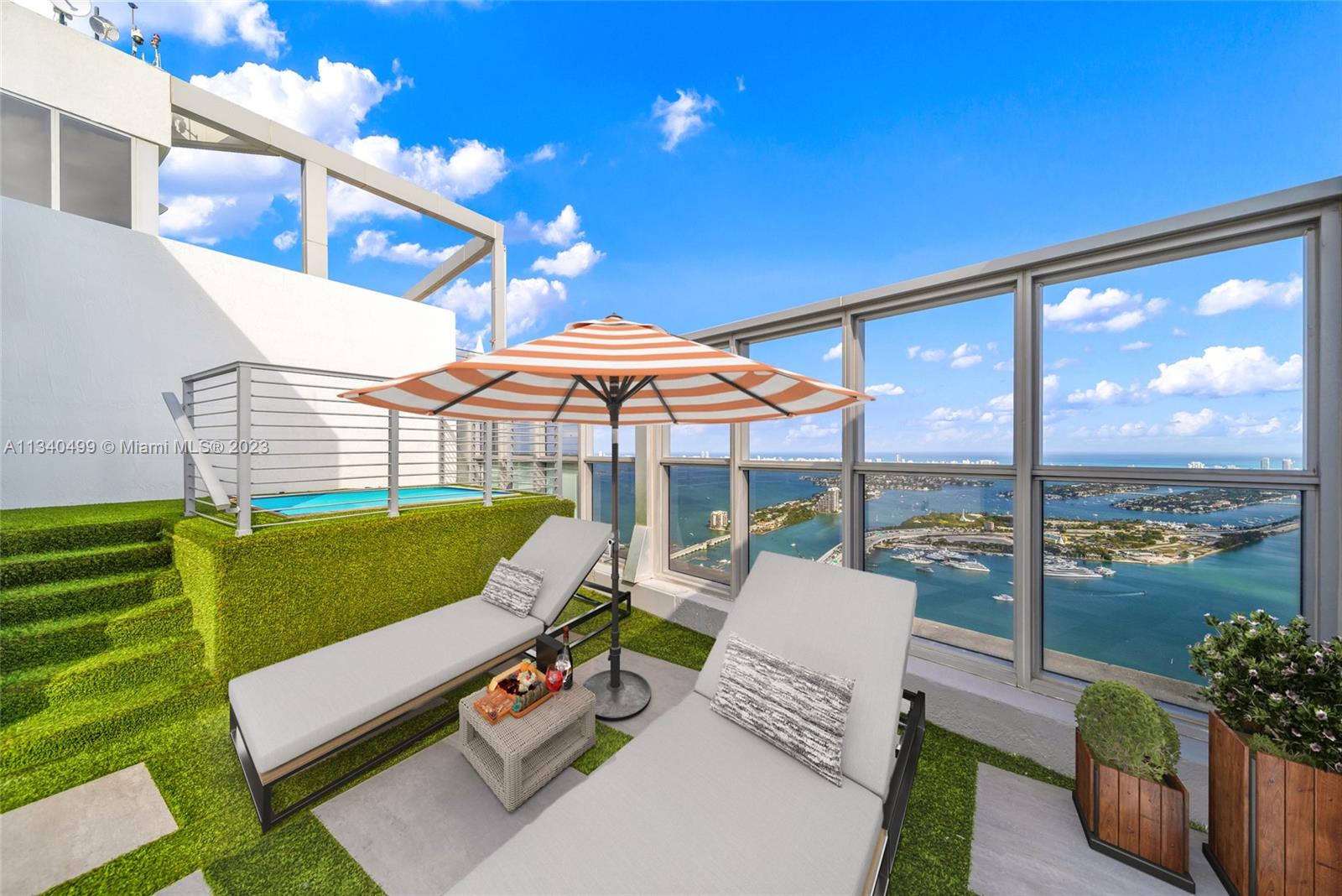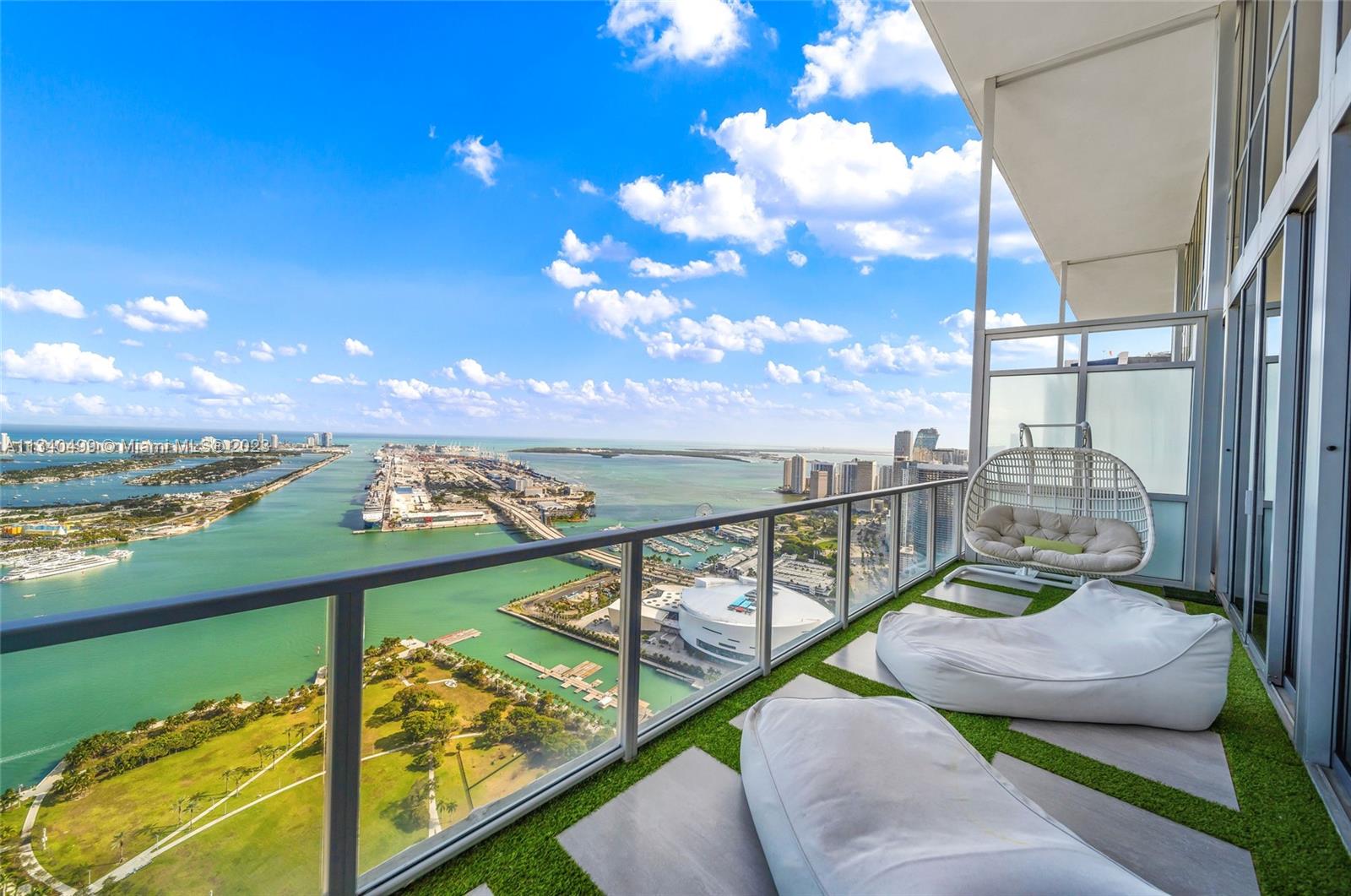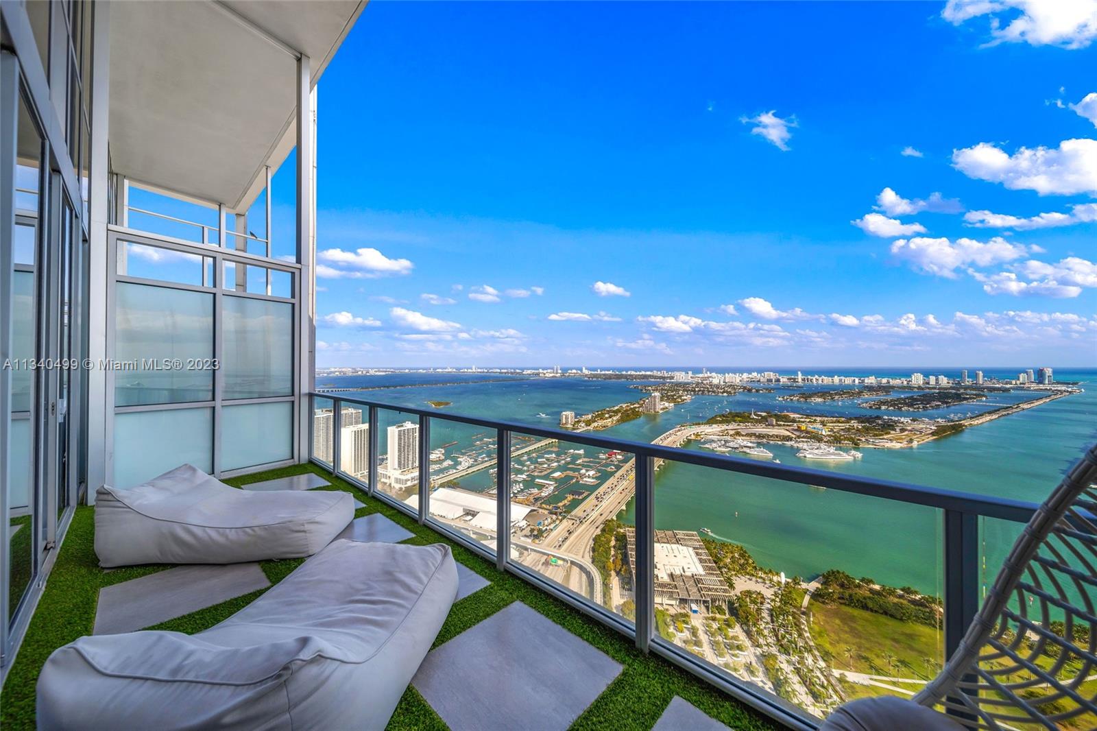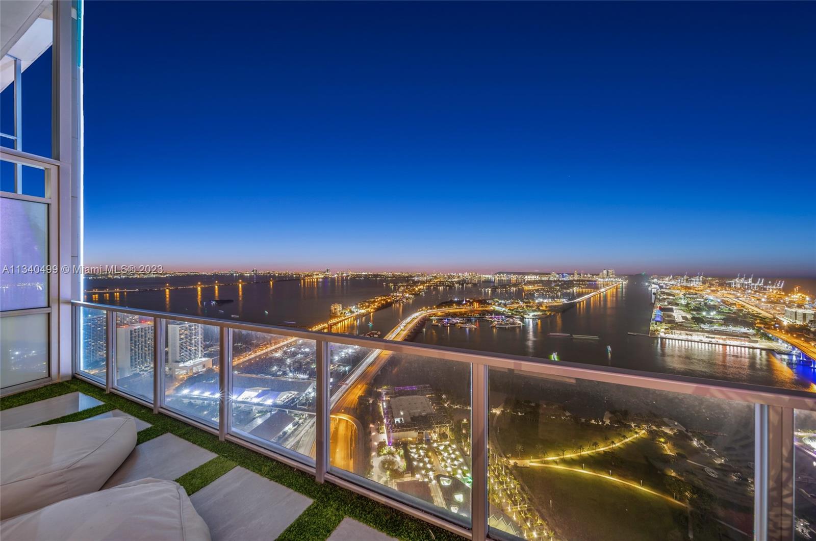 This stunning tri-level, 3 bedrooms / 2.5 baths PH in iconic Marquis is the ultimate Miami house in the skies. 650 feet above the ground, conveniently located in the heart of Downtown Miami across the street from The Miami-Dade (Miami Heat) Arena, The Perez Museum and Frost Museum. A short walk will take you to the Brightline station and a brand new Miami Worldcenter. The condo features soaring 20' ceilings, 2888 sqft under AC and a one of a kind rooftop sky lounge with your own private dipping pool/jacuzzi. The unit comes fully furnished with an upgraded kitchen featuring Wolf and Subzero appliances, waterfall marble island and unlimited, unobstructed ocean & city views. Endless storage space plus an additional storage in the building. Make this absolute dream condo your reality.