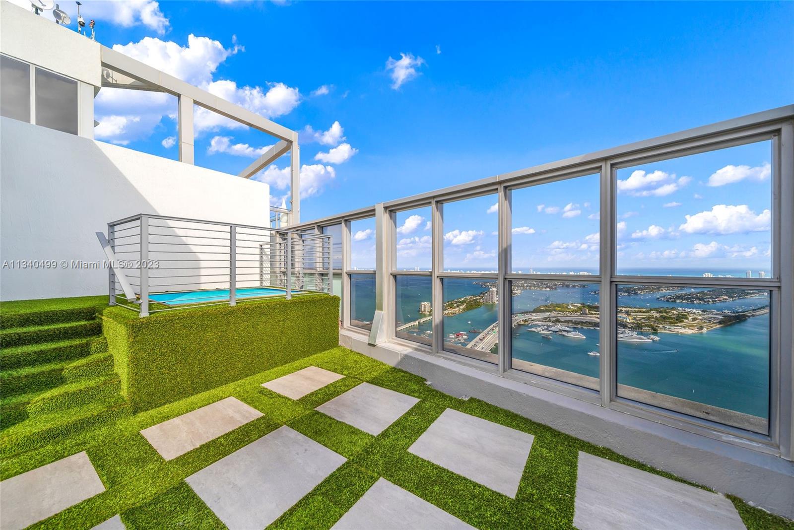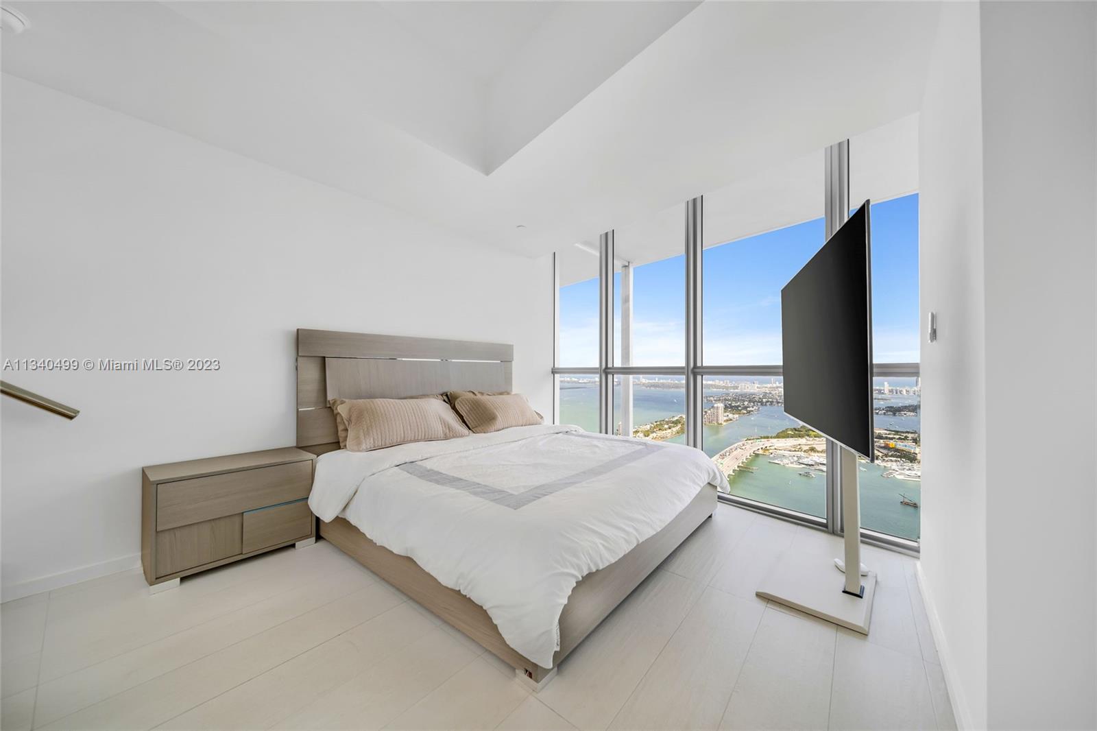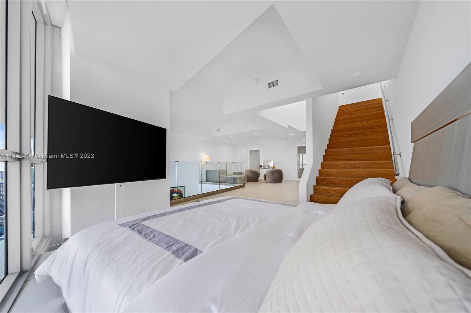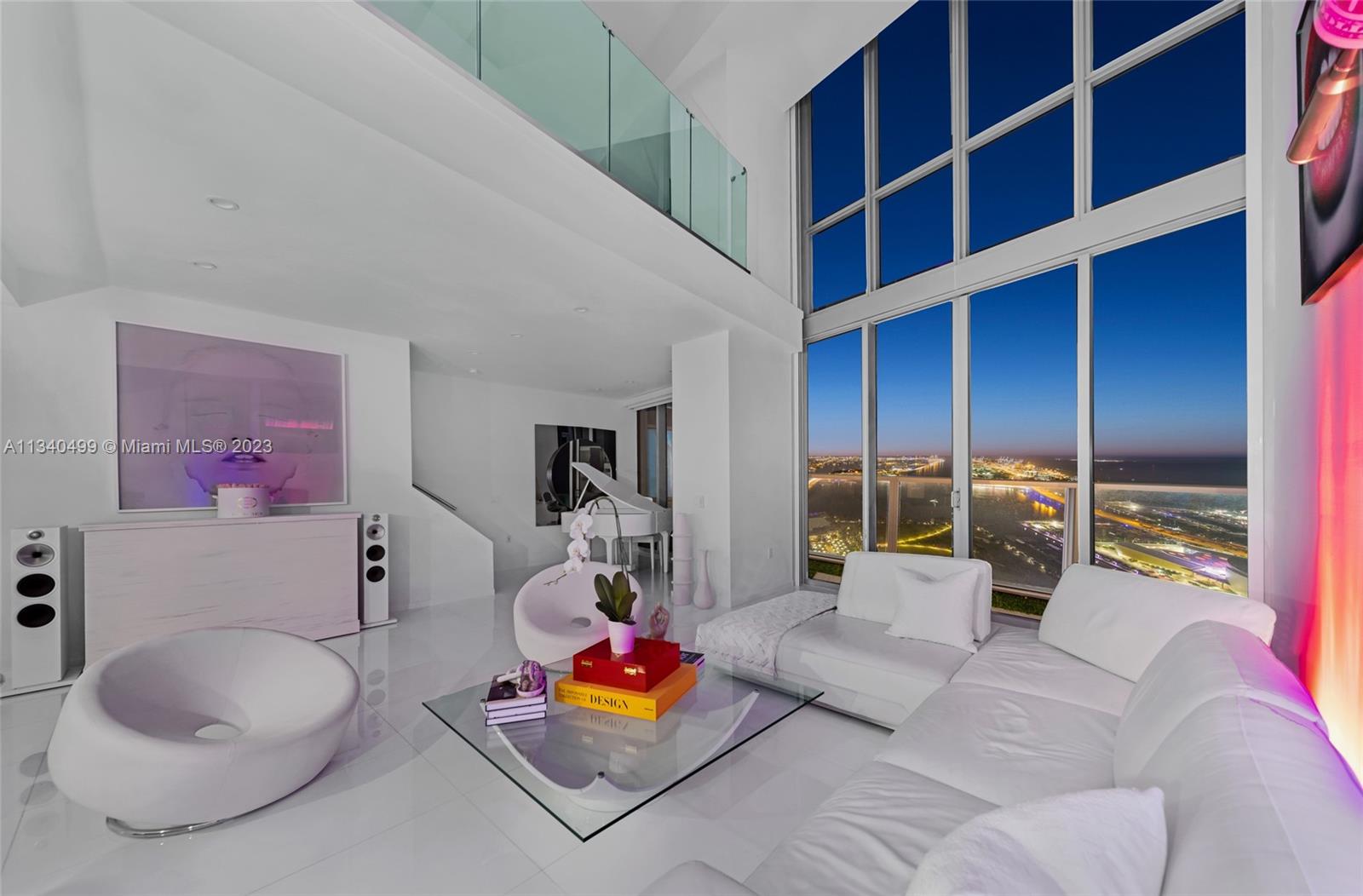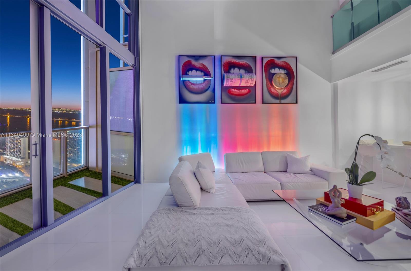 This stunning tri-level, 3 bedrooms / 2.5 baths PH in iconic Marquis is the ultimate Miami house in the skies. 650 feet above the ground, conveniently located in the heart of Downtown Miami across the street from The Miami-Dade (Miami Heat) Arena, The Perez Museum and Frost Museum. A short walk will take you to the Brightline station and a brand new Miami Worldcenter. The condo features soaring 20' ceilings, 2888 sqft under AC and a one of a kind rooftop sky lounge with your own private dipping pool/jacuzzi. The unit comes fully furnished with an upgraded kitchen featuring Wolf and Subzero appliances, waterfall marble island and unlimited, unobstructed ocean & city views. Endless storage space plus an additional storage in the building. Make this absolute dream condo your reality.