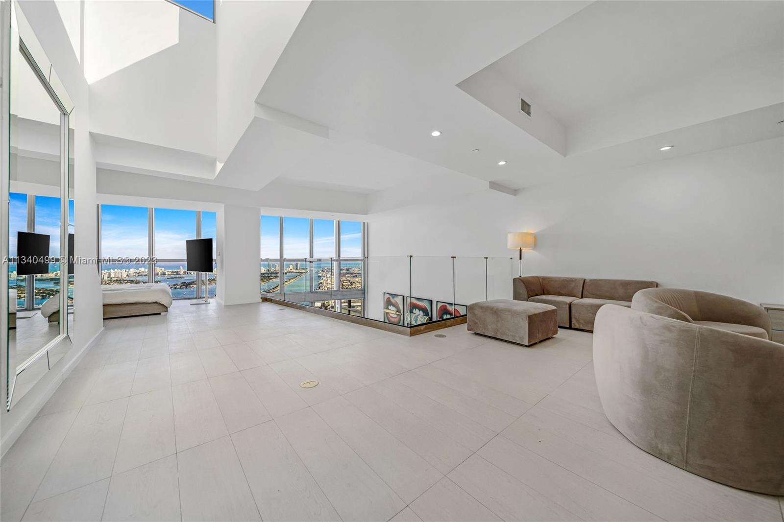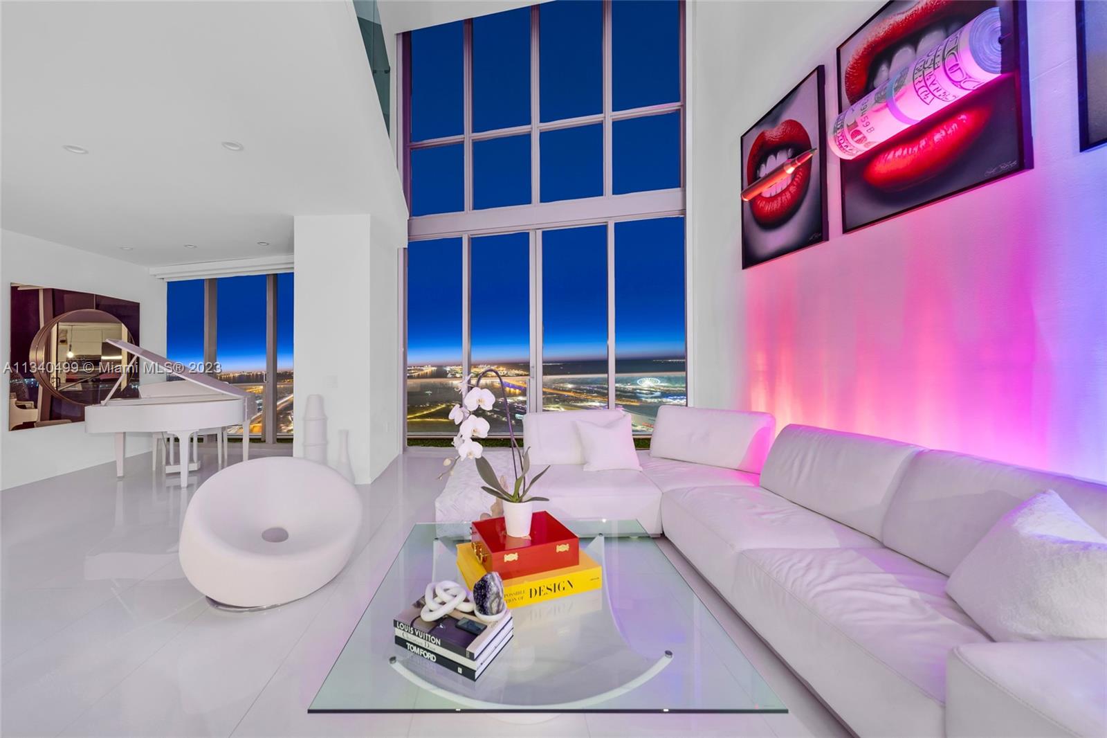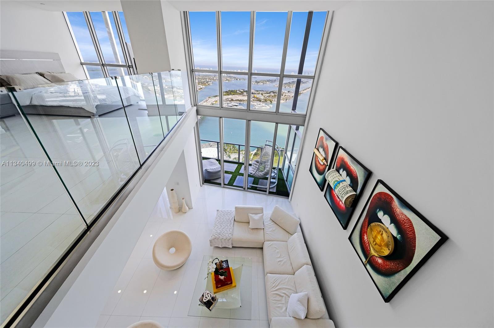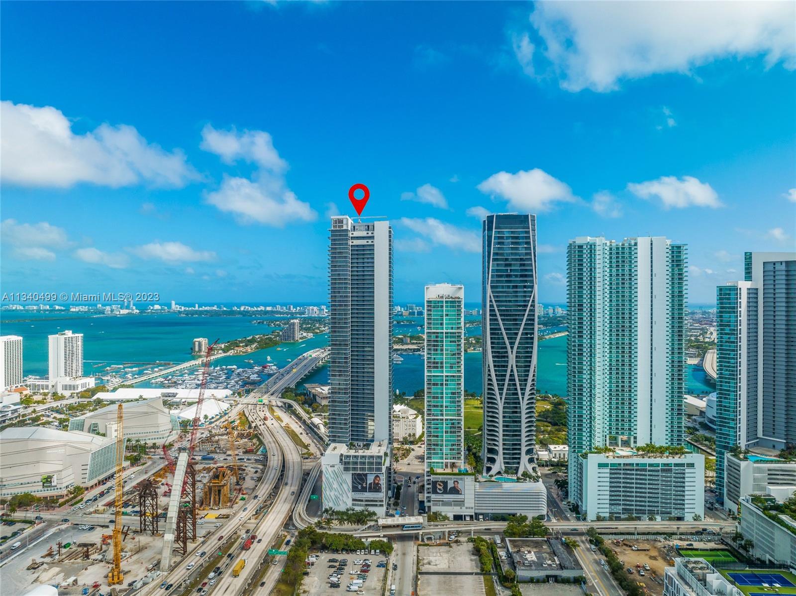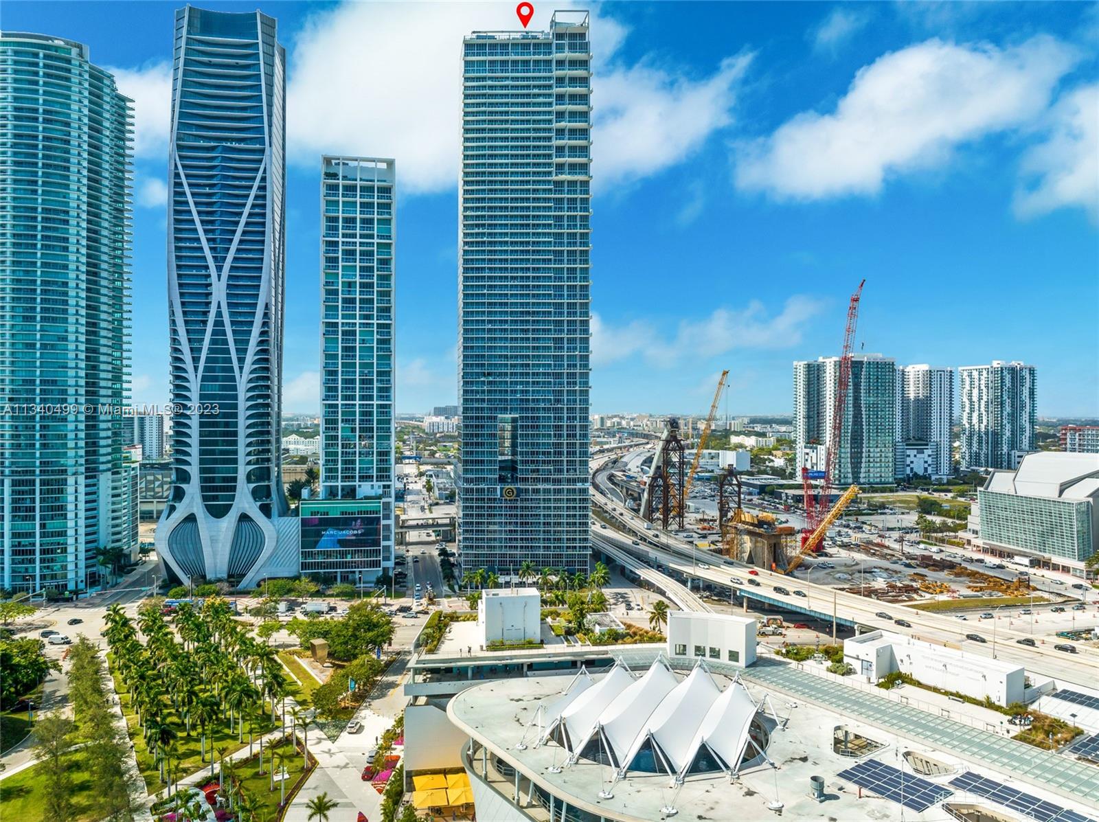 This stunning tri-level, 3 bedrooms / 2.5 baths PH in iconic Marquis is the ultimate Miami house in the skies. 650 feet above the ground, conveniently located in the heart of Downtown Miami across the street from The Miami-Dade (Miami Heat) Arena, The Perez Museum and Frost Museum. A short walk will take you to the Brightline station and a brand new Miami Worldcenter. The condo features soaring 20' ceilings, 2888 sqft under AC and a one of a kind rooftop sky lounge with your own private dipping pool/jacuzzi. The unit comes fully furnished with an upgraded kitchen featuring Wolf and Subzero appliances, waterfall marble island and unlimited, unobstructed ocean & city views. Endless storage space plus an additional storage in the building. Make this absolute dream condo your reality.
