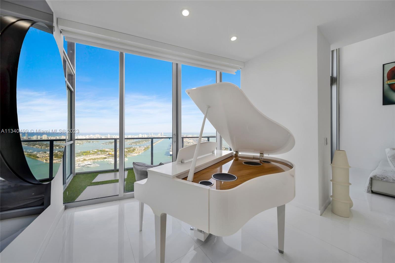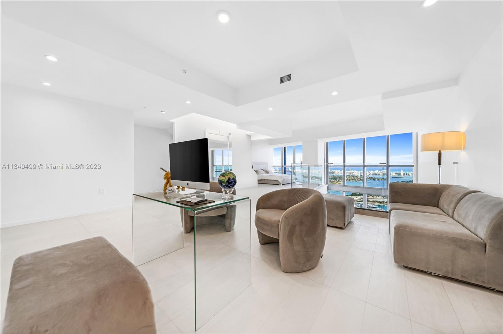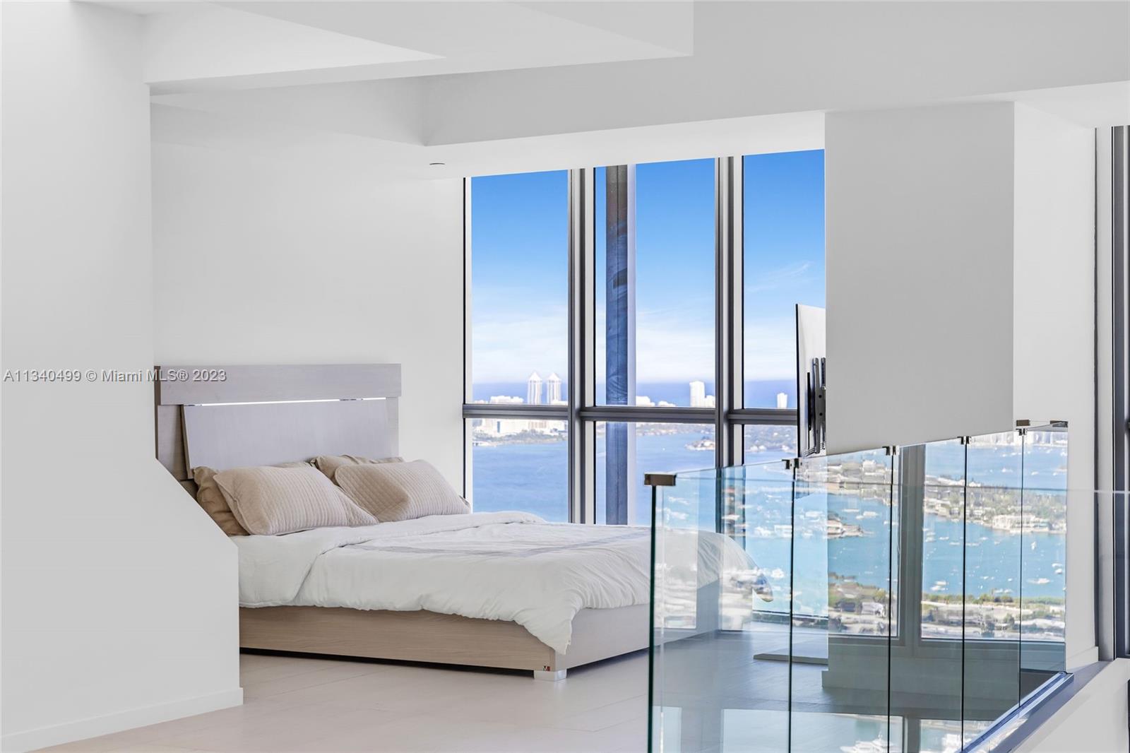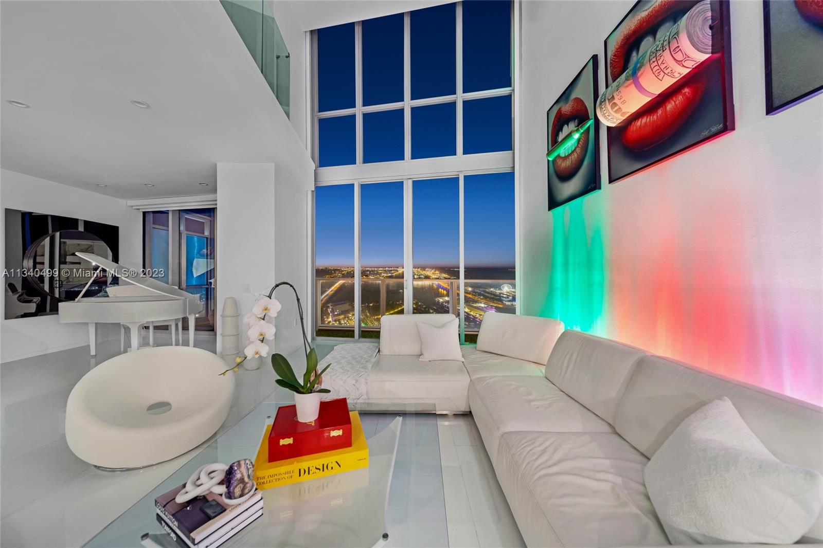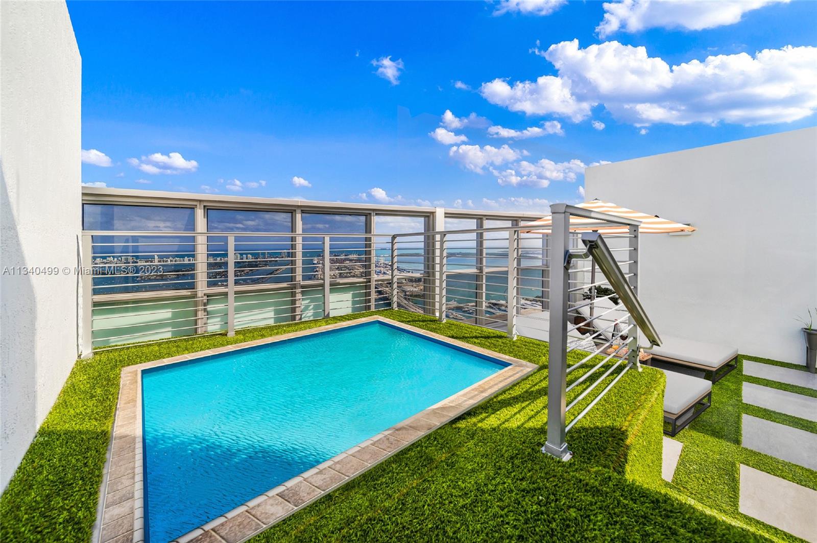 This stunning tri-level, 3 bedrooms / 2.5 baths PH in iconic Marquis is the ultimate Miami house in the skies. 650 feet above the ground, conveniently located in the heart of Downtown Miami across the street from The Miami-Dade (Miami Heat) Arena, The Perez Museum and Frost Museum. A short walk will take you to the Brightline station and a brand new Miami Worldcenter. The condo features soaring 20' ceilings, 2888 sqft under AC and a one of a kind rooftop sky lounge with your own private dipping pool/jacuzzi. The unit comes fully furnished with an upgraded kitchen featuring Wolf and Subzero appliances, waterfall marble island and unlimited, unobstructed ocean & city views. Endless storage space plus an additional storage in the building. Make this absolute dream condo your reality.