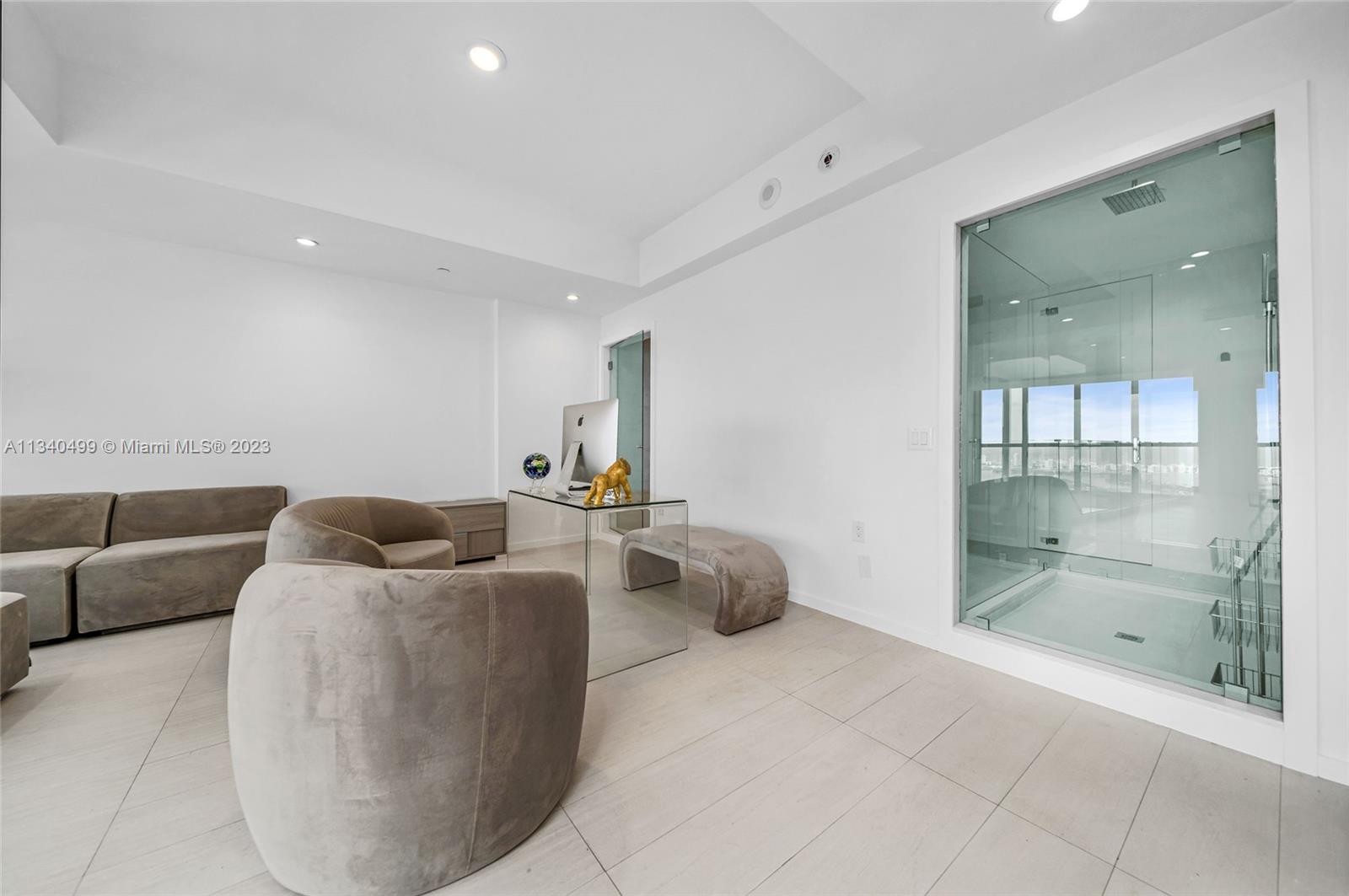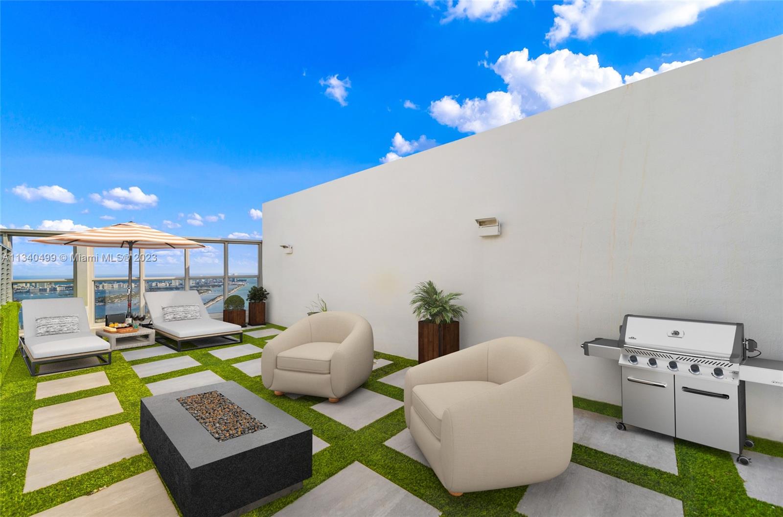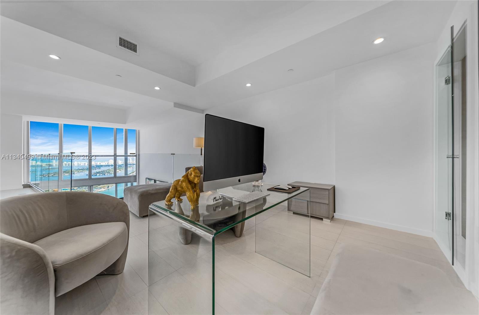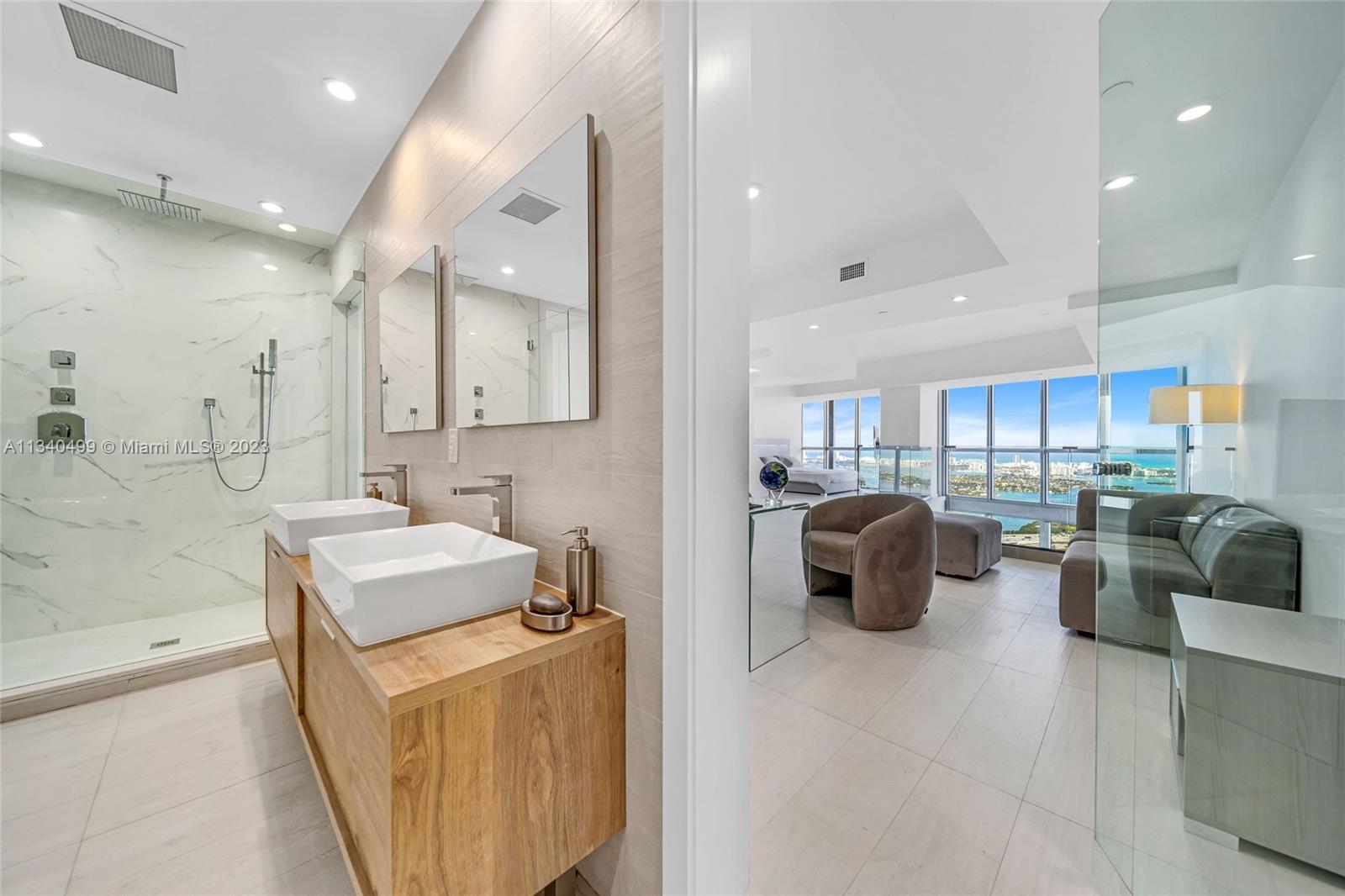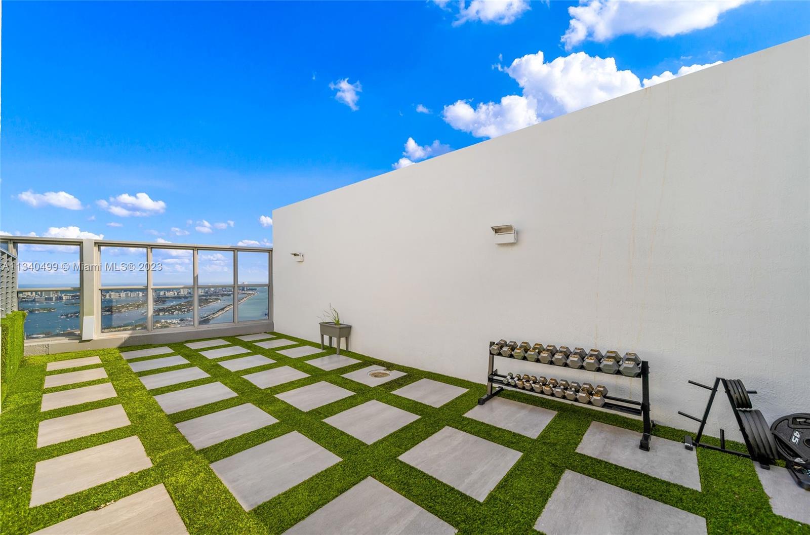 This stunning tri-level, 3 bedrooms / 2.5 baths PH in iconic Marquis is the ultimate Miami house in the skies. 650 feet above the ground, conveniently located in the heart of Downtown Miami across the street from The Miami-Dade (Miami Heat) Arena, The Perez Museum and Frost Museum. A short walk will take you to the Brightline station and a brand new Miami Worldcenter. The condo features soaring 20' ceilings, 2888 sqft under AC and a one of a kind rooftop sky lounge with your own private dipping pool/jacuzzi. The unit comes fully furnished with an upgraded kitchen featuring Wolf and Subzero appliances, waterfall marble island and unlimited, unobstructed ocean & city views. Endless storage space plus an additional storage in the building. Make this absolute dream condo your reality.