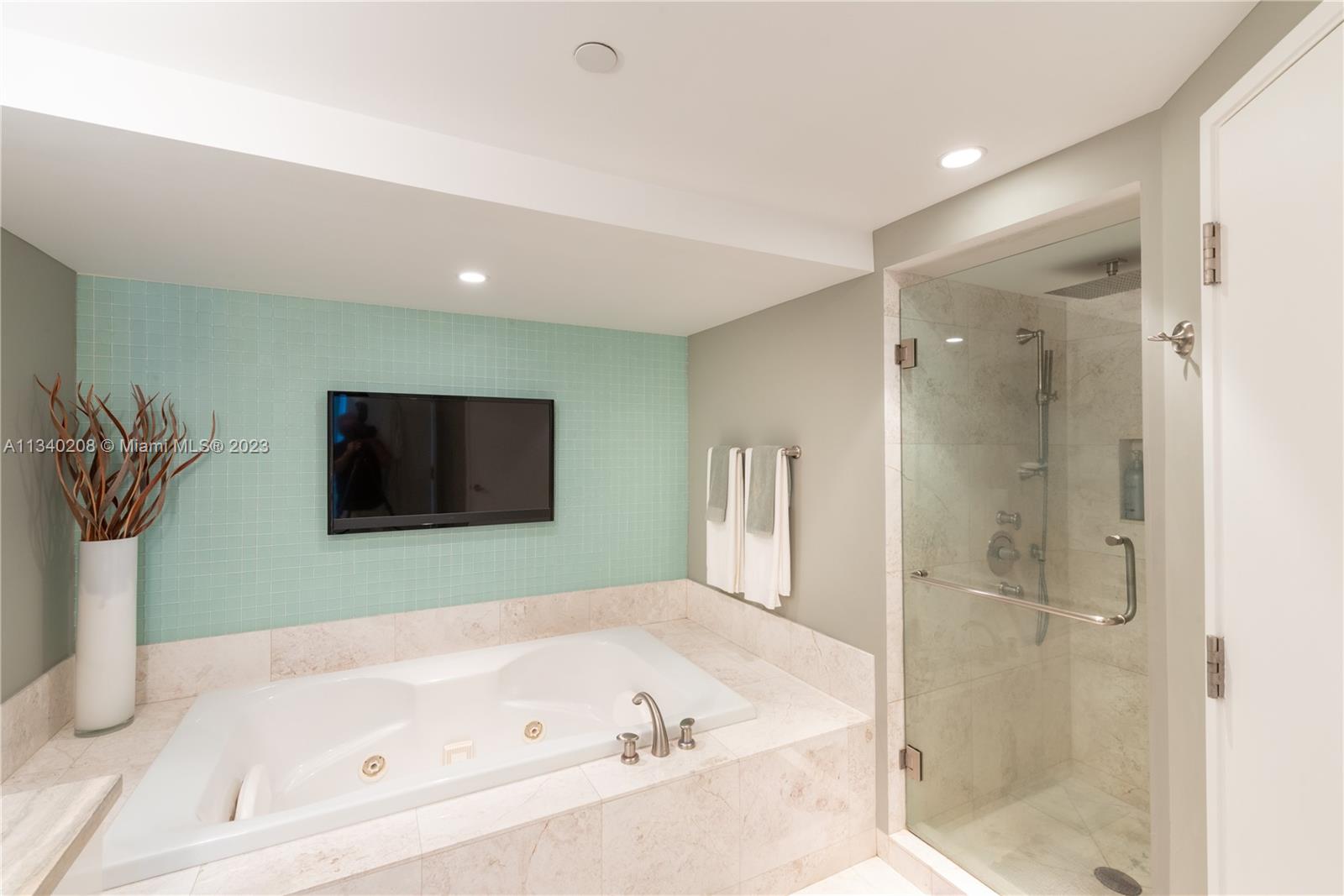 BEAUTIFUL BEACHFRONT CONDO! This amazing 2 Bdrm+Den & 2.5 Bathroom waterfront property offers a great layout with a clean, crisp contemporary design. Upon entry you're welcomed with a lovely foyer entry, den, awesome kitchen with Miele & SubZero appliances, amazing counter space & snack bar, bright-airy living & dining, half bath, a master & junior suite, stunning master bathroom with spa tub, washer/dryer & an oversized balcony where you can relax & enjoy the sea breeze & the beautiful sunset. Located in the fabulous Azure Condo where residents may enjoy world class amenities including spa, sauna, massage and treatment rooms, heated pool, fitness center and beach service! At walking distance from Bal Harbour shops, restaurants & more! CABANA AT THE POOL LEVEL IS INCLUDED IN PURCHASE PRICE