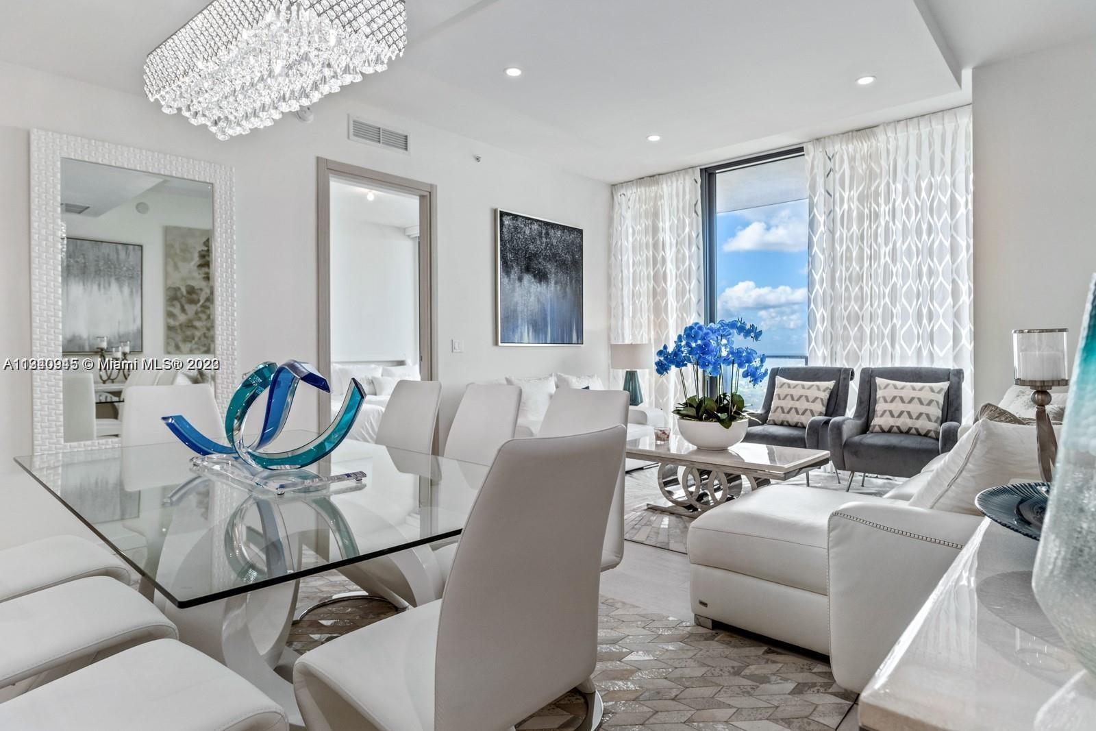Luxury Penthouse on the 60th Floor in one of Brickell's finest building. luxury condo by renowned UGO COLOMBO. This 60th floor unit comes fully furnished, spectacular 180-degree view of the Miami Skyline, including a fantastic Bay view as well. Two good size bedrooms, plus DEN. Italian kitchen cabinets, MIELE appliances, ceramic floors throughout the unit. Assigned parking. Full suite of amenities that include a rooftop pool. In the Heart of Brickell, walking distance to shopping, dinning etc.