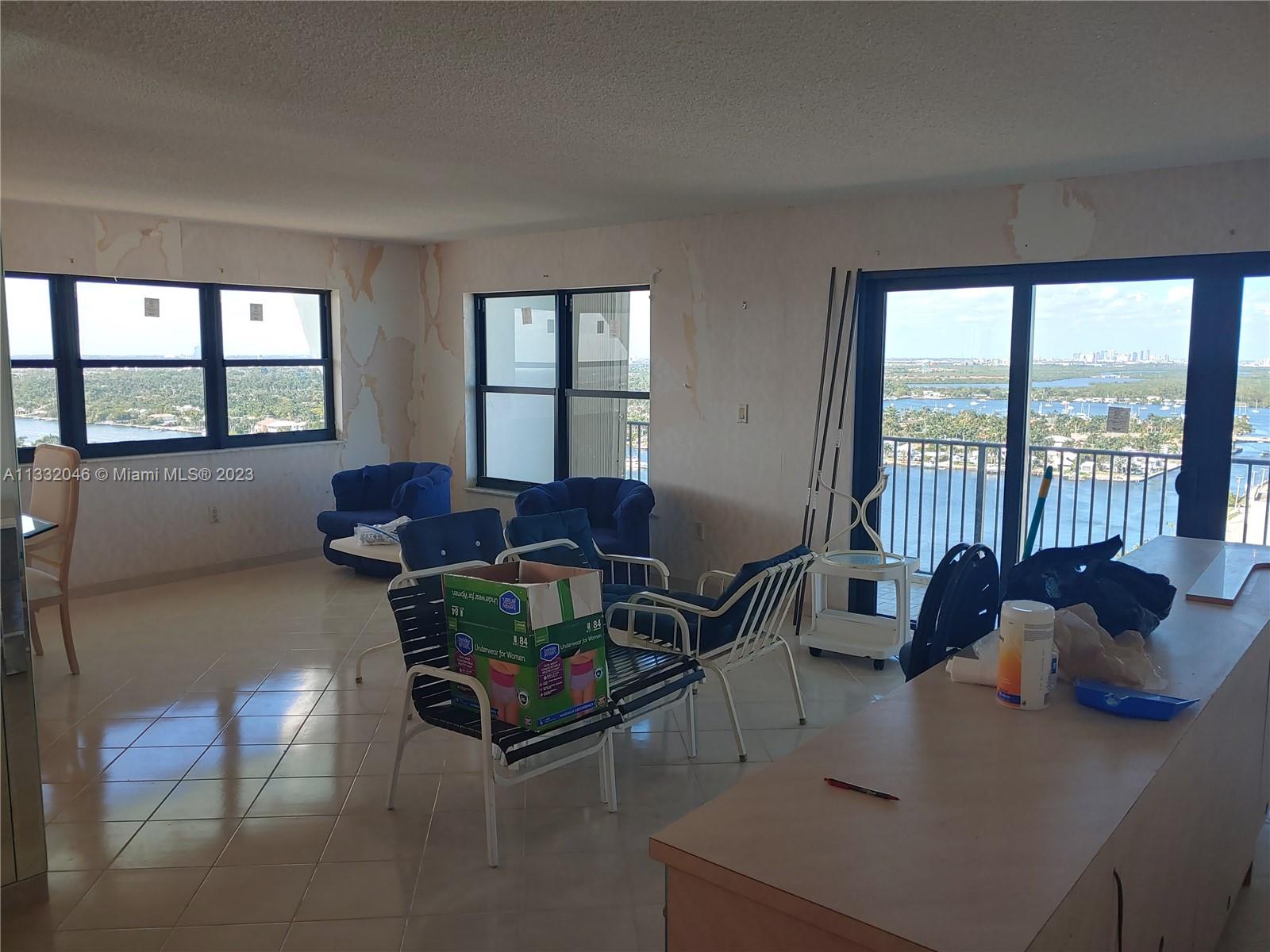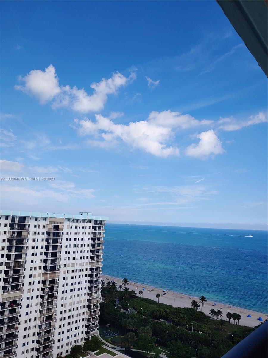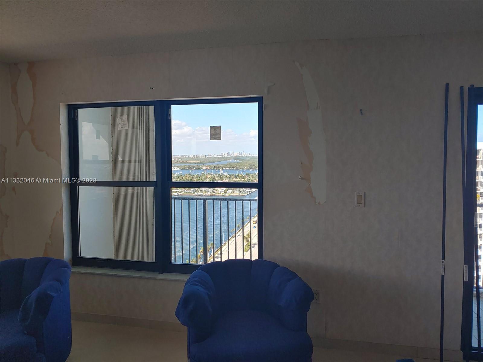 It is with heavy heart; sellers have to give up this awesome view of the ocean and intercoastal! However, their loss is your gain! Property being sold as is therefore you can create your own style of upgrade that is needed. As part of the upgrade planned, impact windows already installed 2022. The rest of the upgrade was halted due to probate. New refrigerator and stove 2021. Furniture will be removed prior to closing. This corner unit is quite large and will be very beautiful with upgrades. There is the view the stadium and intercoastal from the breakfast nook in the kitchen. The dining and living room have view of the intercoastal and skyline. Balcony equipped with hurricane shutters has the most breathtaking view. You have to see it to believe it!