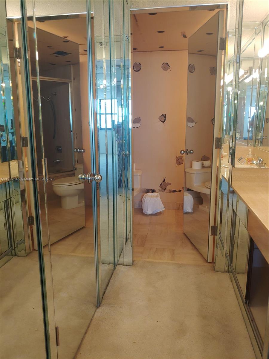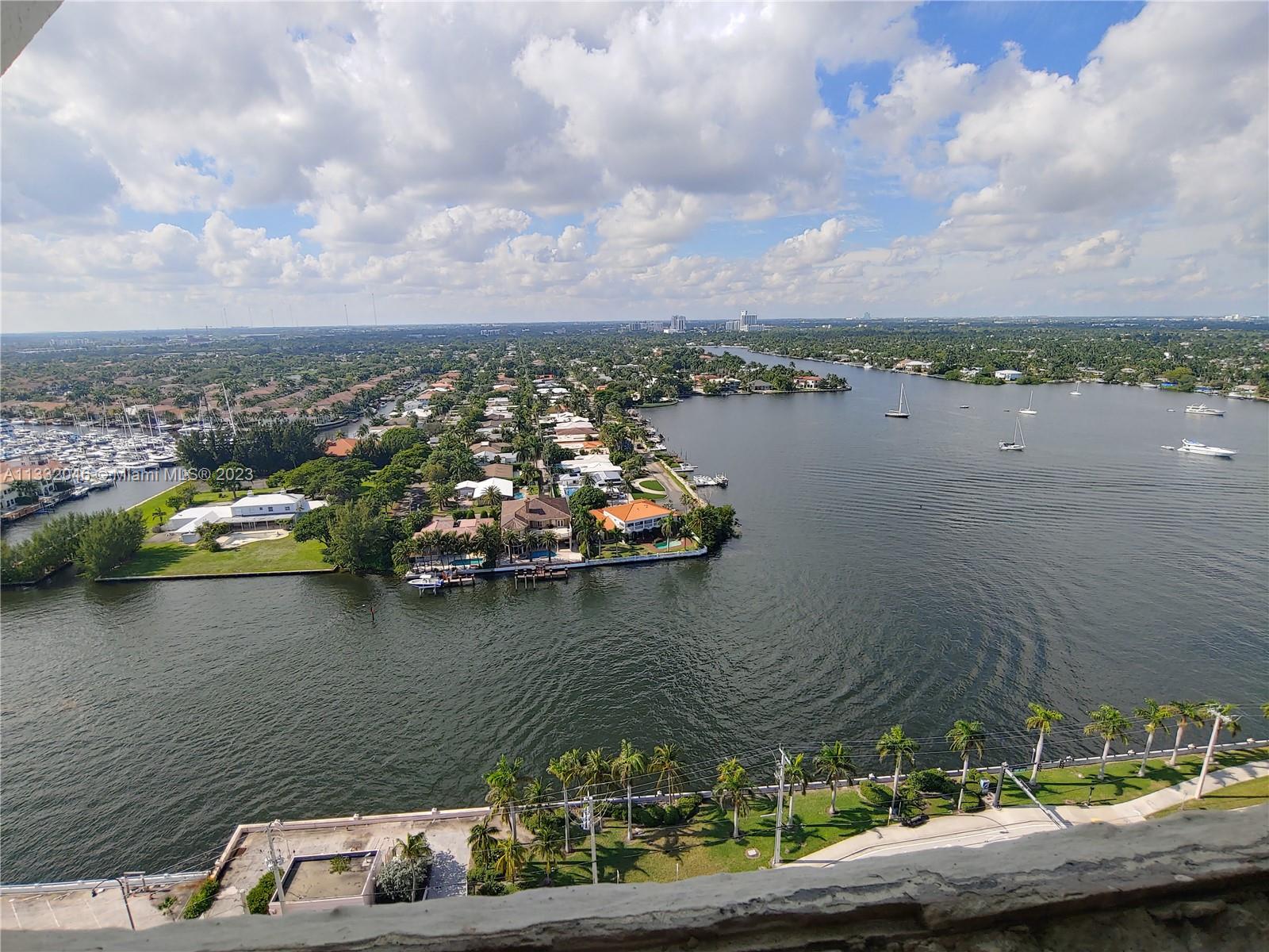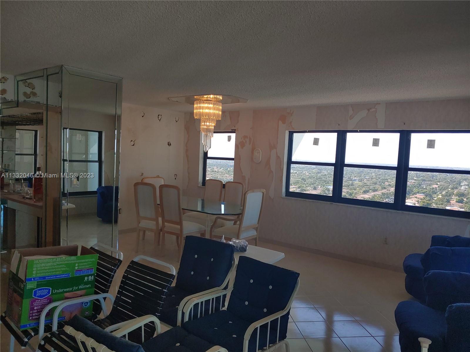 It is with heavy heart; sellers have to give up this awesome view of the ocean and intercoastal! However, their loss is your gain! Property being sold as is therefore you can create your own style of upgrade that is needed. As part of the upgrade planned, impact windows already installed 2022. The rest of the upgrade was halted due to probate. New refrigerator and stove 2021. Furniture will be removed prior to closing. This corner unit is quite large and will be very beautiful with upgrades. There is the view the stadium and intercoastal from the breakfast nook in the kitchen. The dining and living room have view of the intercoastal and skyline. Balcony equipped with hurricane shutters has the most breathtaking view. You have to see it to believe it!