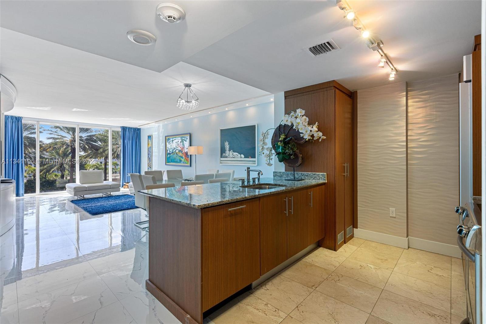 Welcome to Harbour House. Enjoy this beautiful upgraded 1 BD 1.5 BA featuring porcelain floors, accent lighting and accent walls, custom wall unit in living room, custom vanity in main bathroom with a frosted glass wall, closet built-ins, blackout & sunshades in bedroom and living rooms. Lots of natural light. Serene view of palm trees and fountain. Unit is being sold furnished. Harbour House is a full service building with resort-style amenities including beach service, heated pool, 24 hour security, valet, fully equipped gym, steam & sauna rooms, theater room, business center, cafe, pool bar and more. Building has gone through its 40 & 50 year recertifications.