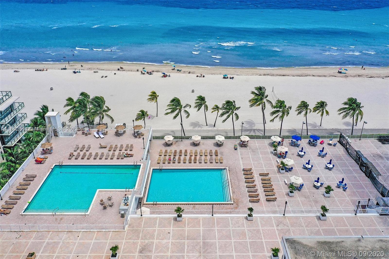 Enjoy the Florida lifestyle in this beachfront complex at the Quadomain. Corner unit with partial ocean and city lights views, walk-in closet, large master bedroom, big windows, lots of kitchen cabinets. hurrican shutters. Furniture included. NEEDS TLC.Great opportunity to remodel the unit to your own taste. Full luxury amenities with 2 oceanfront pools, 2 fitness centers, sauna, restaurant, Business center,billiards, social activities, water aerobics/yoga classes, bike storage area, valet for guests, front desk concierge, security patrol,and an extra storage cage for you.Great location. Walking distance to the famous Hollywood Broadwalk. Minutes to area restaurants, casinos,Village of Gulfstream Park, Aventura Mall, West Lake nature preserve, and fishing pier.MOTIVATED SELLER.MAKE OFFER!