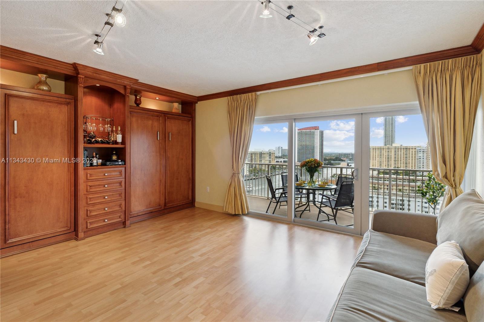 STUDIO EFFICIENCY, ON THE INTRACOASTAL, OCEAN VIEW TOO! PEACEFUL/ SERENE WATER VIEWS NIGHT AND DAY! LARGE TERRACE, FURNISHED AND APPOINTED, READY FOR VACATION OR FULL TIME LIVING .FULL KITCHEN/BREAKFAST BAR, FULL MASTER BATH, LARGE LIVING AREA WITH 2 CUSTOM BUILT MURPHY BEDS (SLEEPS 4) BETTER THAN A HOTEL! FULL WALK IN CLOSET, LINEN/ UTILITY CLOSET, 1 OUTSIDE PARKING SPACE (COVERED AVAIL FROM ASSN) MAINT INC'S WIFI, CABLE, A/C, WATER ,PARKING, SECURITY,RESERVE FUND, GREAT AMENITIES. BEACH SERVICE, 2 POOLS, 2 REST'S SNACK BAR ,2 GYMS, TENNIS, PICKELBALL, BBQ, BOAT DOCKS, SALON, CONV STORES, COURTESY BUS, BILLIARDS, CARD ROOM, BASKETBALL, SHUFFLEBOARD, GOLF PUTTING,CLASSES/ACTIVITIES ETC. PLEASE SEE BROKER REMARKS