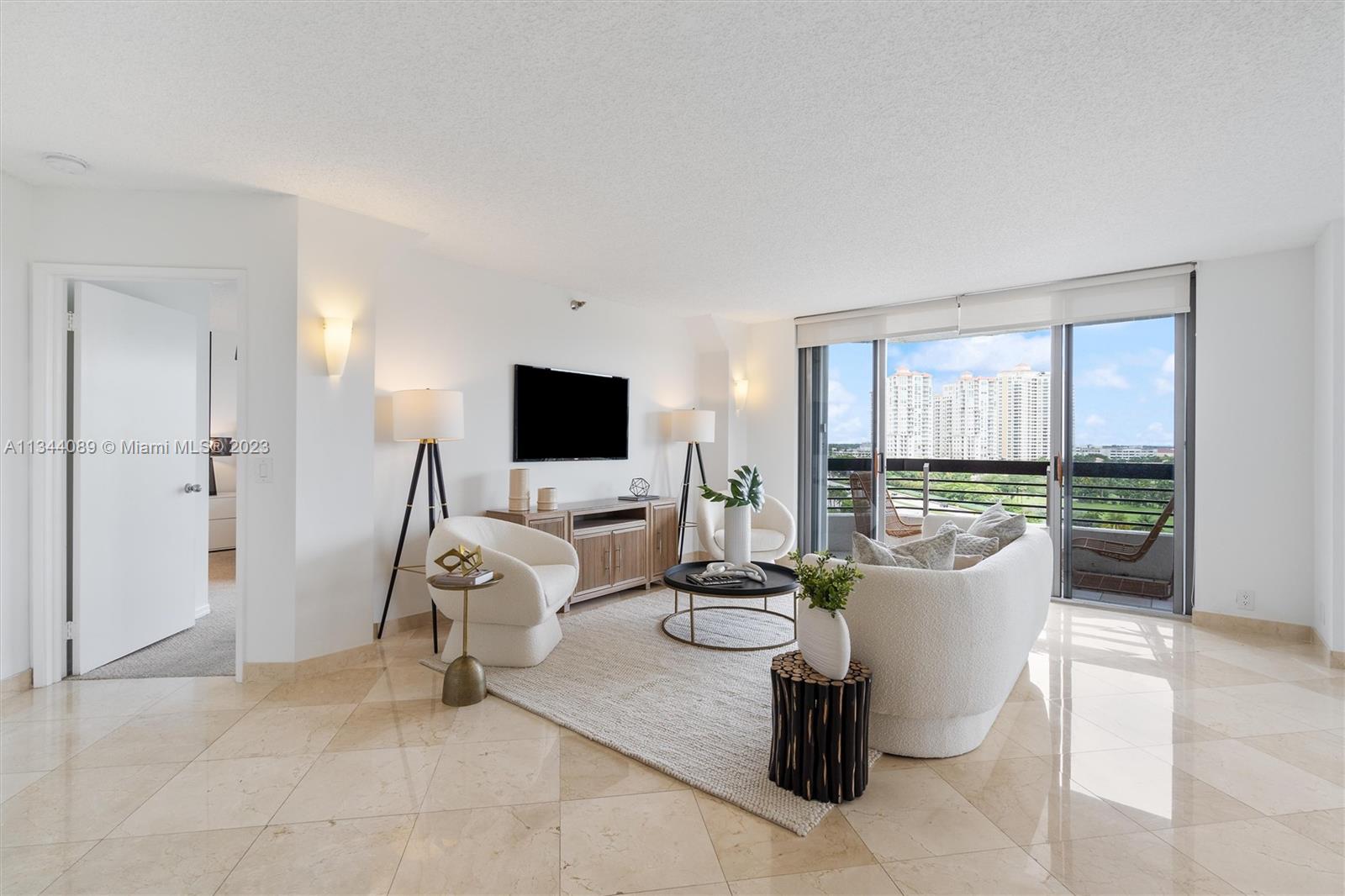 **BEST PRICE PER SQFT IN THE BUILDING**THIS STUNNING 1,361 SQFT FOOR PLAN, TWO-BEDROOM, TWO-BATHROOM CONDO OFFERS LUXURIOUS LIVING AT ITS FINEST. ENJOY MARBLE FLOORS IN THE LIVING ROOM, PLUSH CARPET IN THE BEDROOMS, AND A BEAUTIFUL KITCHEN WITH QUARTZ COUNTERTOPS. YOU'LL LOVE THE WALK-IN CLOSETS, SHADES WITH BLACKOUTS, AND IN-UNIT WASHER/DRYER. PLUS, THE BALCONY OFFERS BREATHTAKING VIEWS OF THE TURNBERRY GOLF COURSE. ENJOY ONE PARKING SPACE, VALET, AND STORAGE, ALONG WITH ACCESS TO A+ SCHOOLS, THE AVENTURA MALL, AND THE BEACH. BUILDING AMENITIES INCLUDE A GYM, POOL, JACUZZI, TENNIS COURTS, VALET, SAUNA, AND SECURITY. DON'T MISS THIS UNPARALLELED OPPORTUNITY FOR LUXURY LIVING. 2 STORAGES INCLUDED WITH THE UNIT.