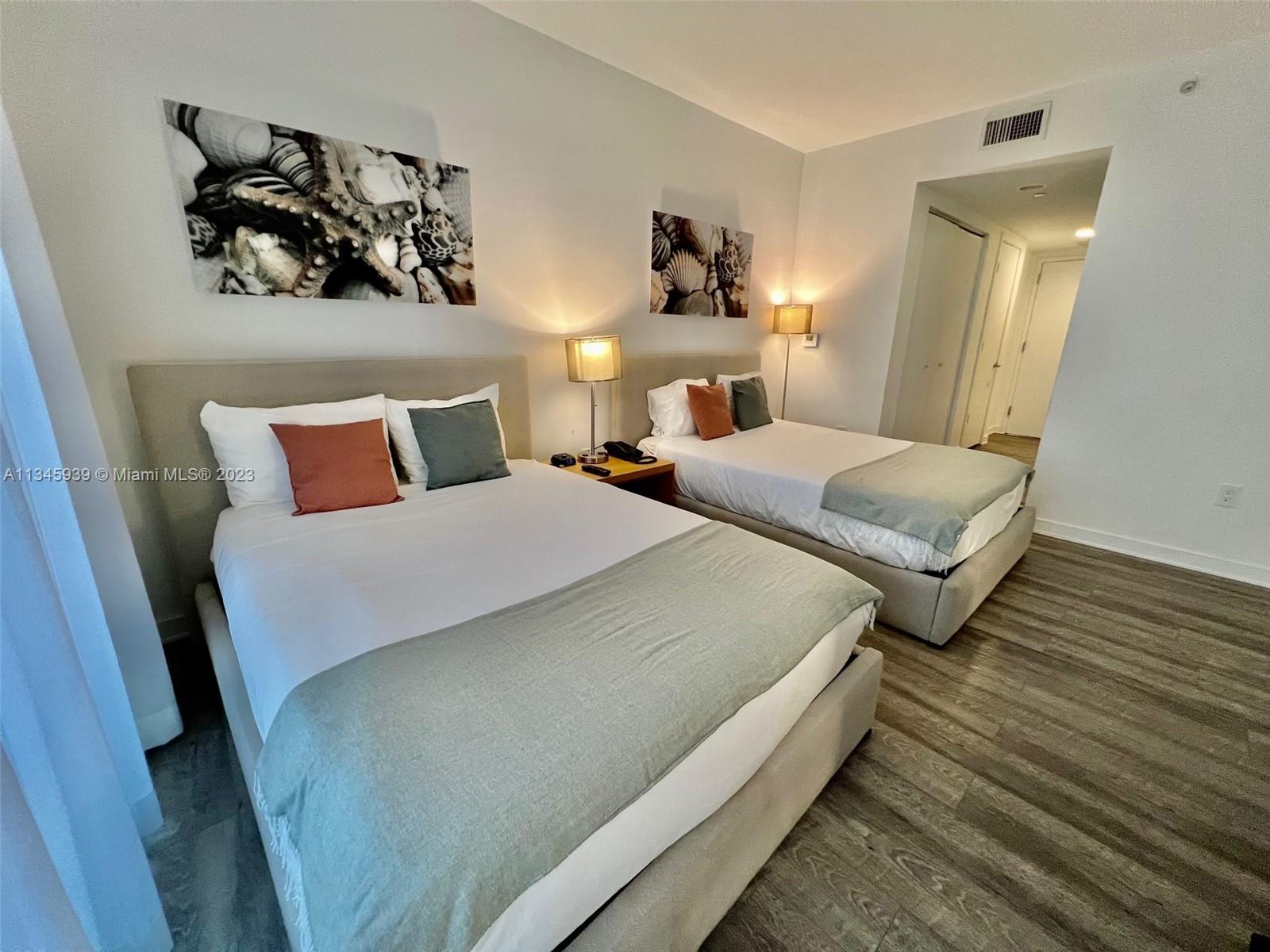 2Bed/2Bath At The Beachwalk Resort with Amazing Views. Totally Furnished Property is composed of 2 units in 1 as 803A & 803B(803A one Bedroom Suite Containing a Large Kitchen W/ SS Appliances, washer, and dryer, Wood Cabinets & Dining Table. Living With Couch & TV. Large King Bedroom Suite W/Walk-In Closet & Updated Bath. Balcony Access From Both Living & Bedroom and Tile Floor)&(803 B has two Double Beds, Walk-In Closet And Desk Area w/small refrigerator and microwave, Additional Balcony & Updated Bath With Frameless Shower Enclosure)Rooftop & Waterfront Pool, Gym, complimentary shuttle to the beach. Income from the first day, NO RESTRICTIONS, can be rented Daily by AIRBNB, BOOKING, VRBO, EXPEDIA, ETC. HOA Included Power, Wifi, Cable, Water & Bldg Insurance. Porcelain Floor and Vinyl.