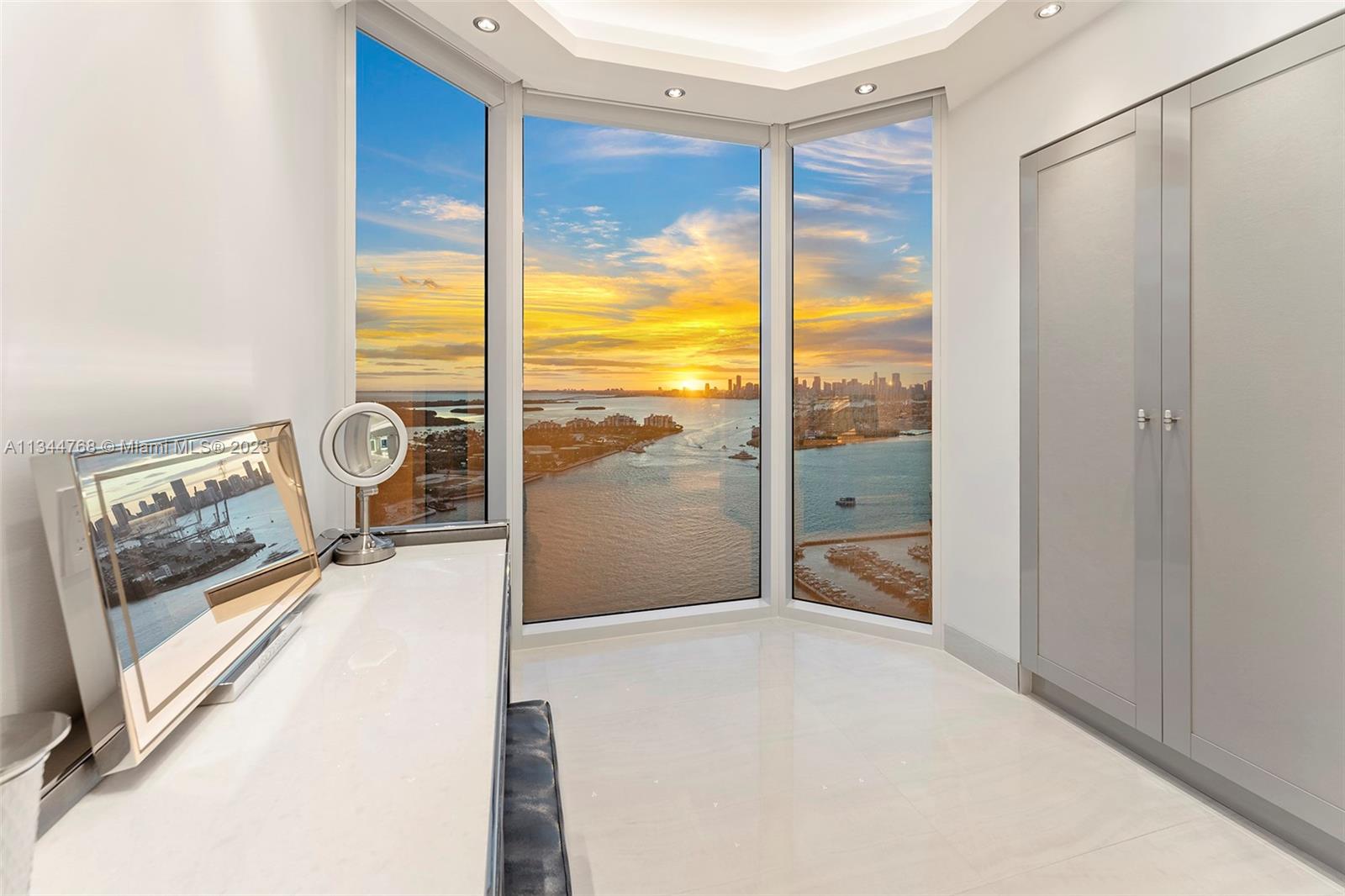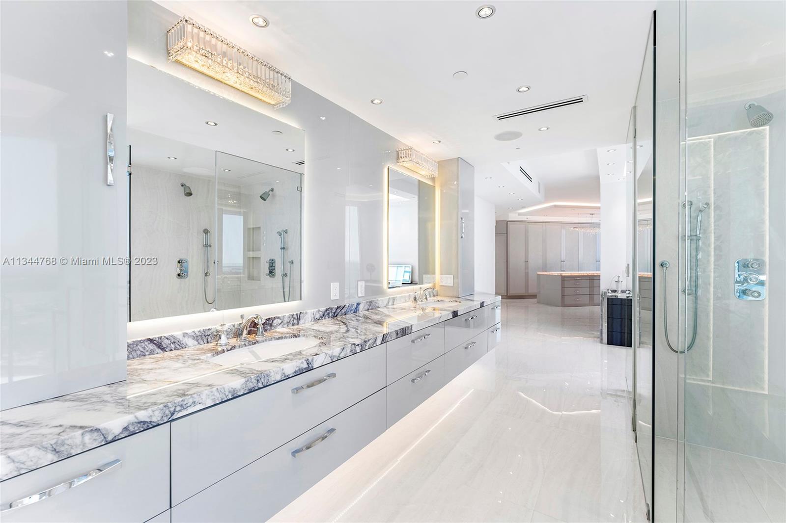 Magnificent double residence, impeccably designed, smart home in the sky where no expense was spared. This work of art is a brand-new double corner condo with 4 terraces & fully furnished by iconic Italian brand Visionnaire. Comprised of 2 condos forming one 4,800 sf masterpiece home w/ endless beach, bay, Miami skyline & sunrise/sunsets. Flow-through plan, Trilogy Light, Onyx Lux Porcelain, Vegan stingray leather walls/doors, marble baths, Manooi chandeliers, wet bar w/ Rolls Royce style ceiling lighting, Crestron controls & security cameras throughout. Waterfront open kitchen w/ Miele & Viking appliances +multiple wine/cava climate controlled vaults. Principal suite features pink quartz bedroom-sized closets with floor to ceiling glass, 90' movie screen & floating tub above the ocean.