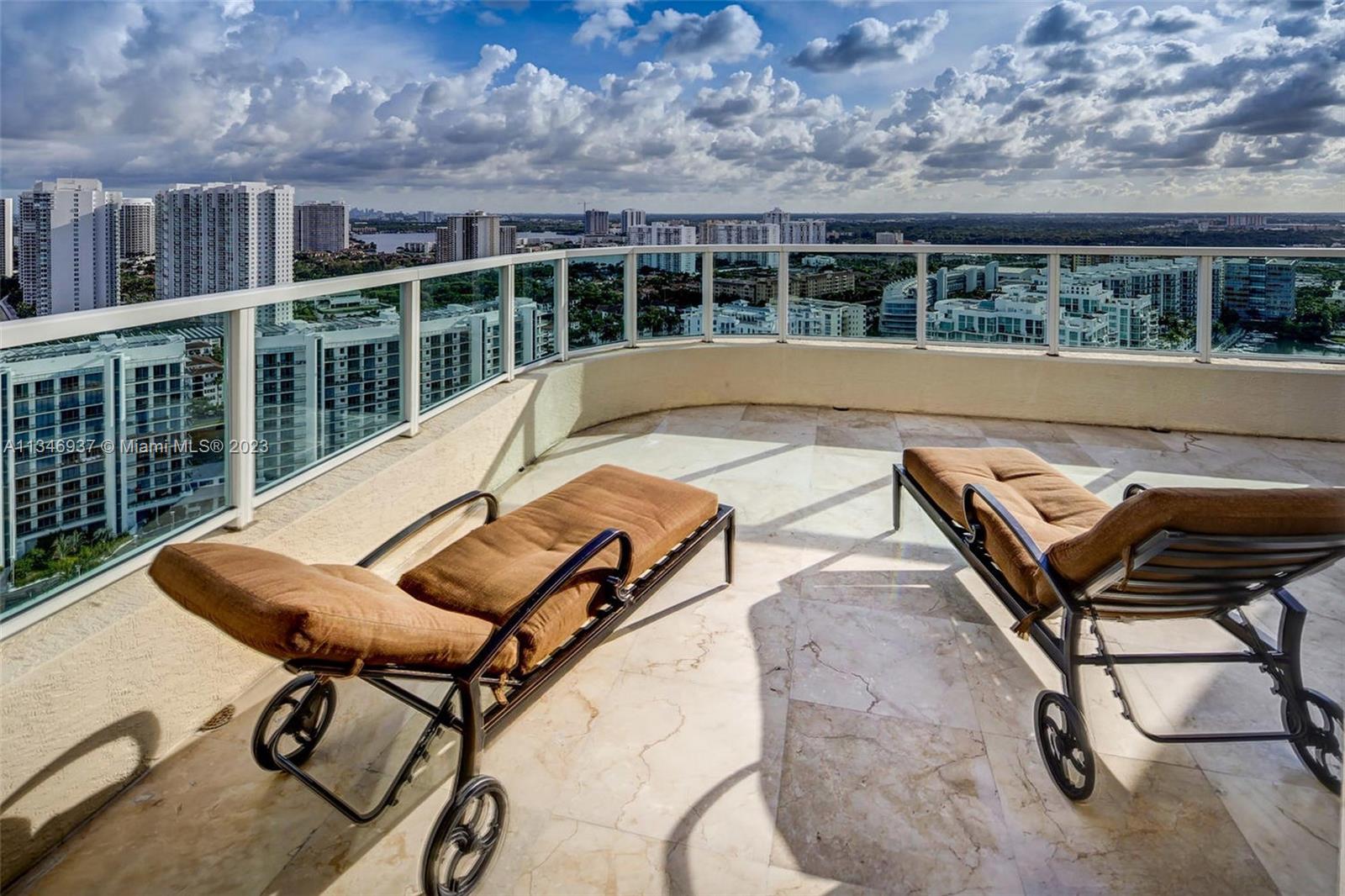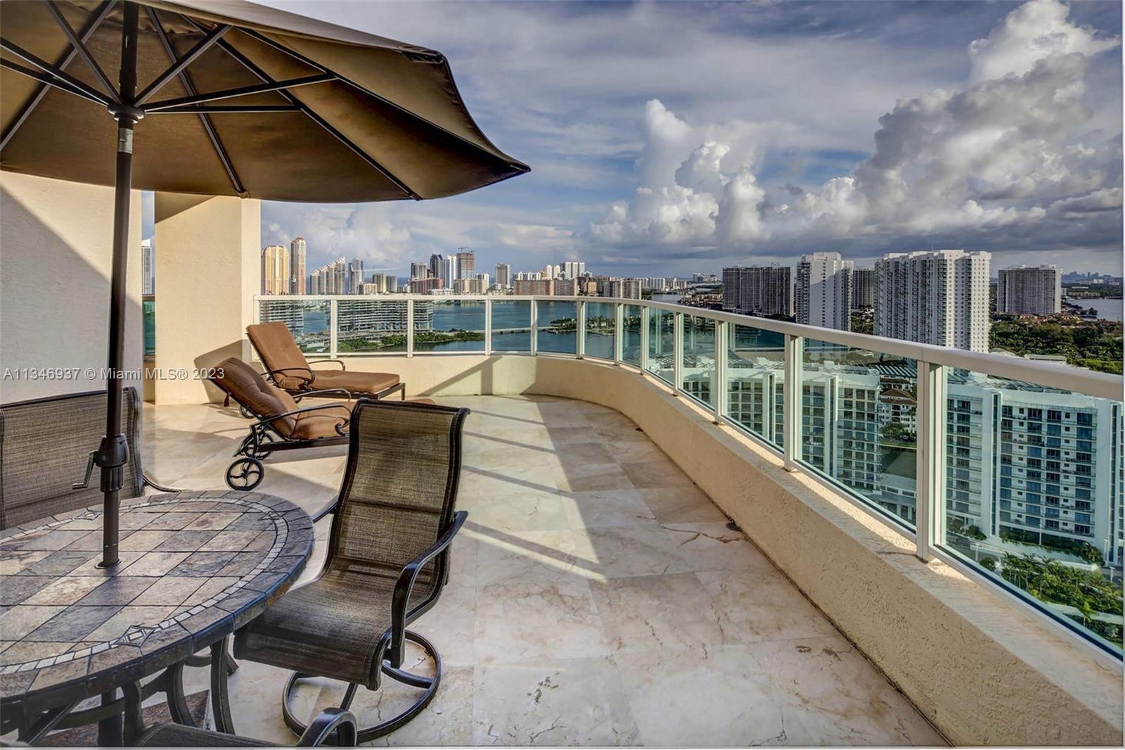 Breathtaking panoramic views of the ocean, Intracoastal & Sunny Isles skyline from this TWO-STORY PENTHOUSE in the secluded enclave community in Aventura with a marina and biking/walking path. This large 3 BR apartment with more than 3,000 sq ft is offered fully furnished. Experience outdoor entertaining on the enormous 824 sq ft balcony while enjoying the striking views. The building is surrounded on two sides by water and offers 5-star resort-like amenities w/ its 2-story spa w/ treatment room & health club, gym, 4 tennis courts, 2 pools, and private marina (rent or own). Located in the heart of Aventura and within walking distance to the fabulous chapter school & Aventura community center.