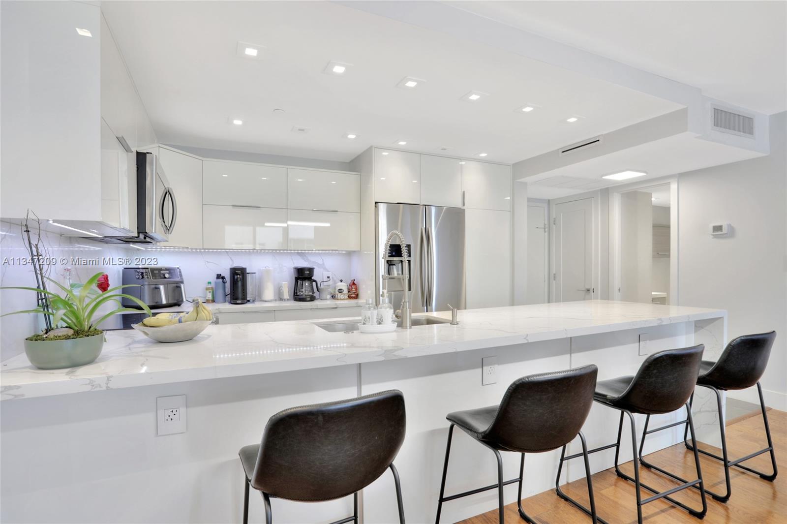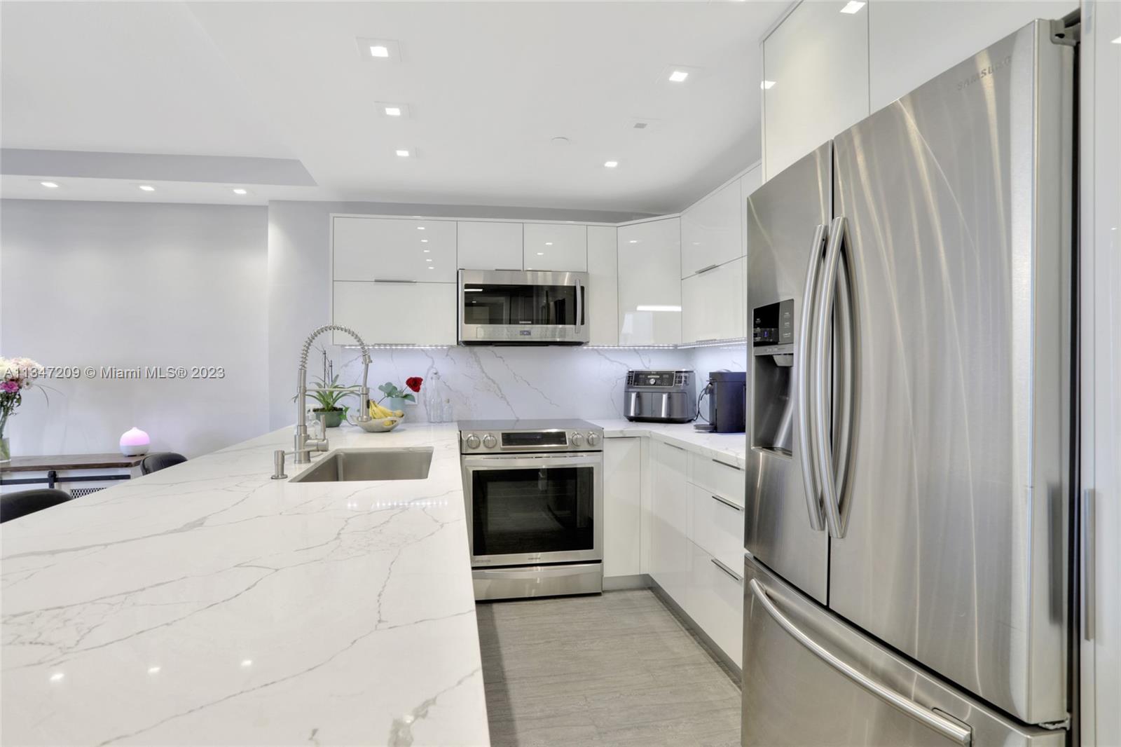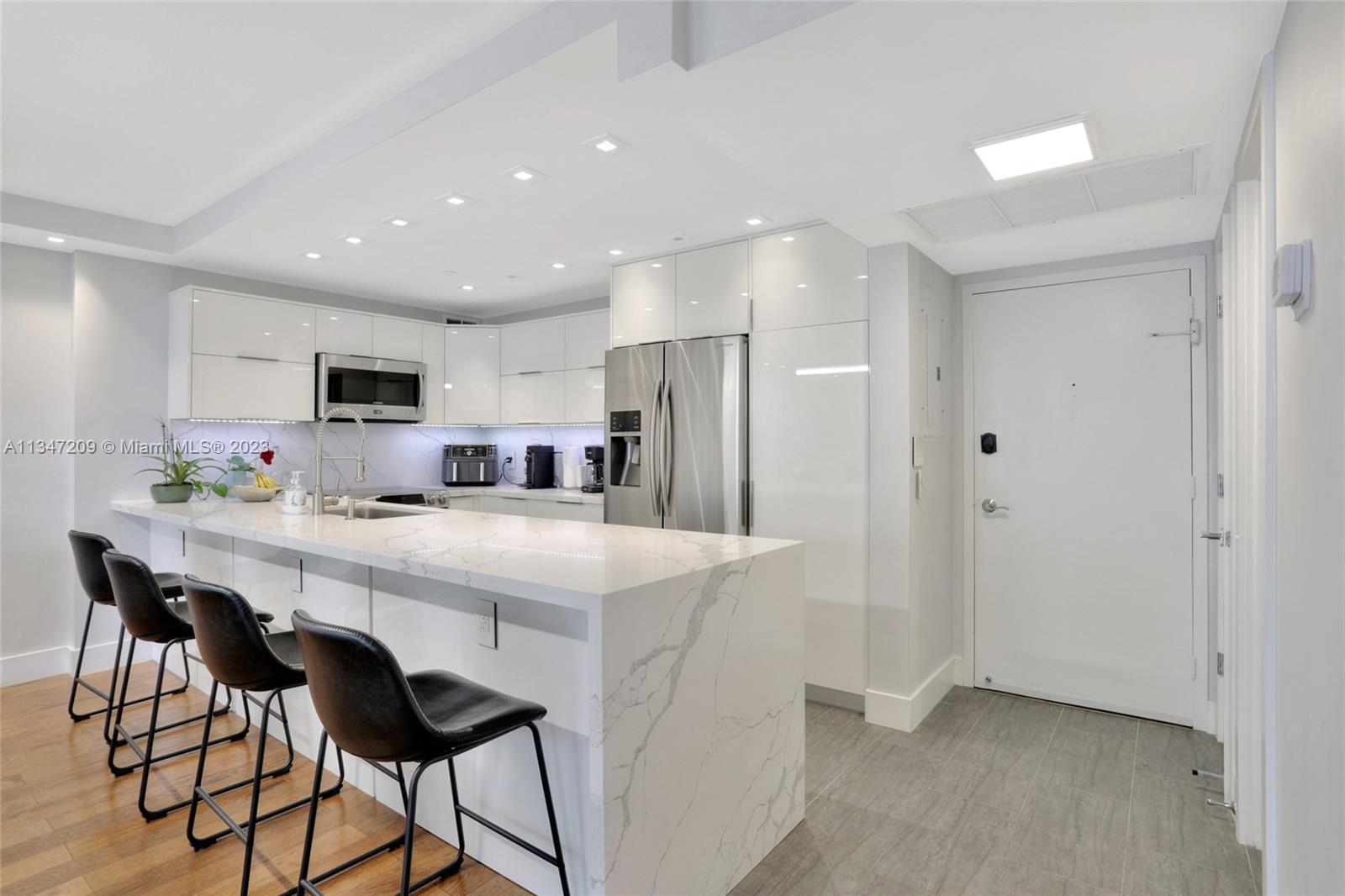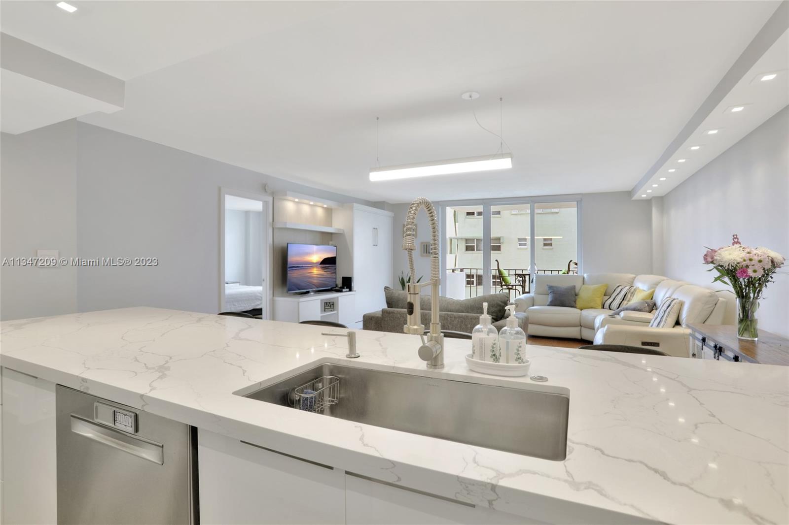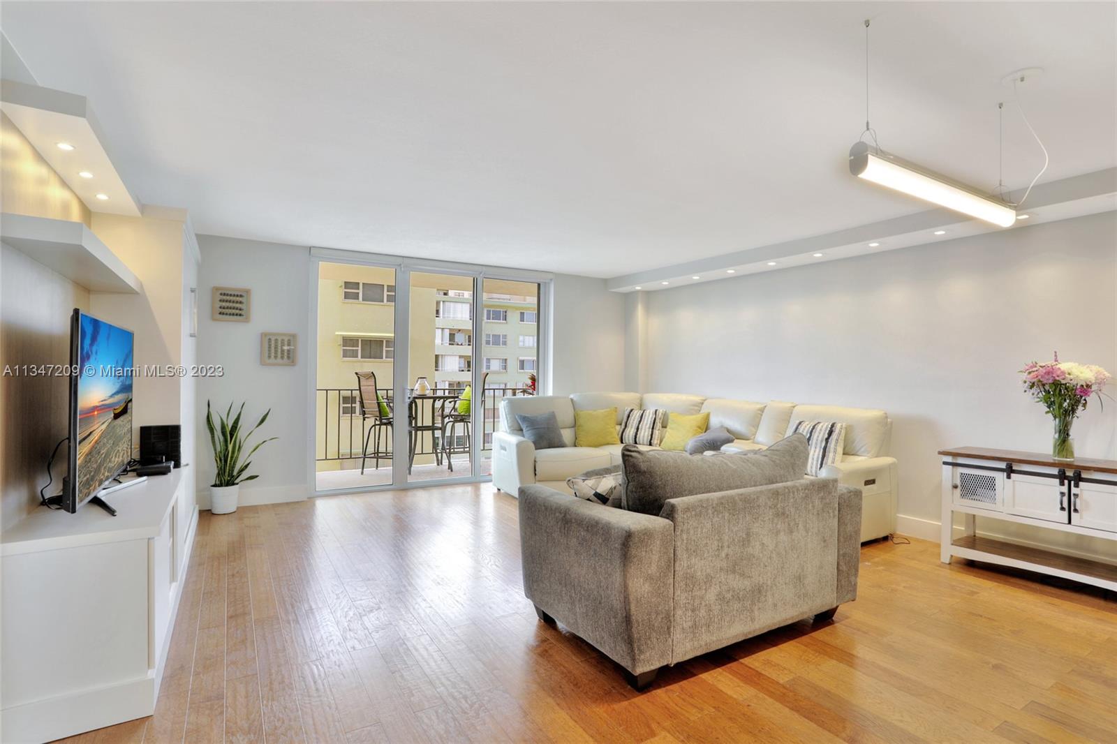 Live your Dream on the beach in this 1-bedroom/1 and half bath. Complete modern renovation. Ready to move in. RESORT STYLE LIVING ON THE BEACH! Open kitchen design w/quartz countertops. High-end professional appliances. LED recessed lights & more. Stone tile throughout the kitchen and bathrooms., Hardwood floors in bedroom. Built in Murphy bed for added guest convenience. Modern bathroom w/ clean lines & upgraded lighting. Closets feature contemporary chrome hardware & full system for maximum storage options. Hurricane Impact Windows. Internet and Cable TV is include in dues. The building has full reserves and has passed the 50-year recent inspection. PET FRIENDLY. Two pet any size are welcome. Make this your new home or winter gateway when not in use, rent it out! Rent Immediately.
