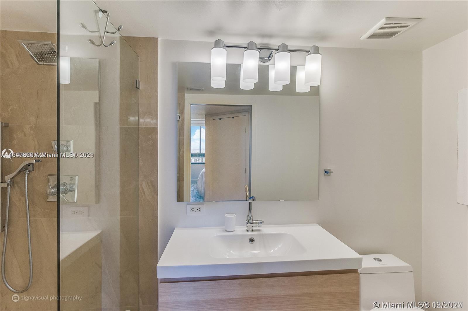 Designer model upgraded 26th floor with amazing bay and ocean views. Fully upgraded w/ top-of-the-line appliances and kitchen cabinets, wood floors, renovated bathrooms and reconfigured walls. Peaceful West Ave location, walking distance to restaurants, Lincoln Road, Whole Foods, and much more. This is a 24-hour full-service building. amenities include pool, gym, yoga room, tennis, volleyball & bayfront BBQ. 2 Parking spaces, 1 assigned and 1 valet.