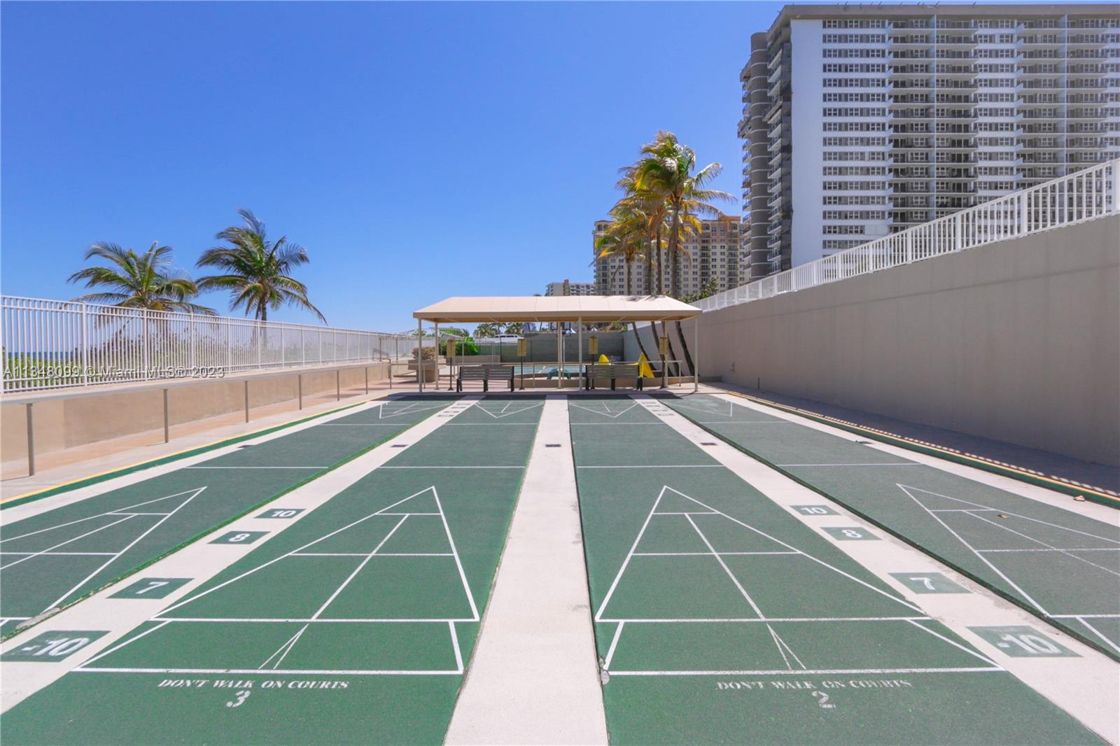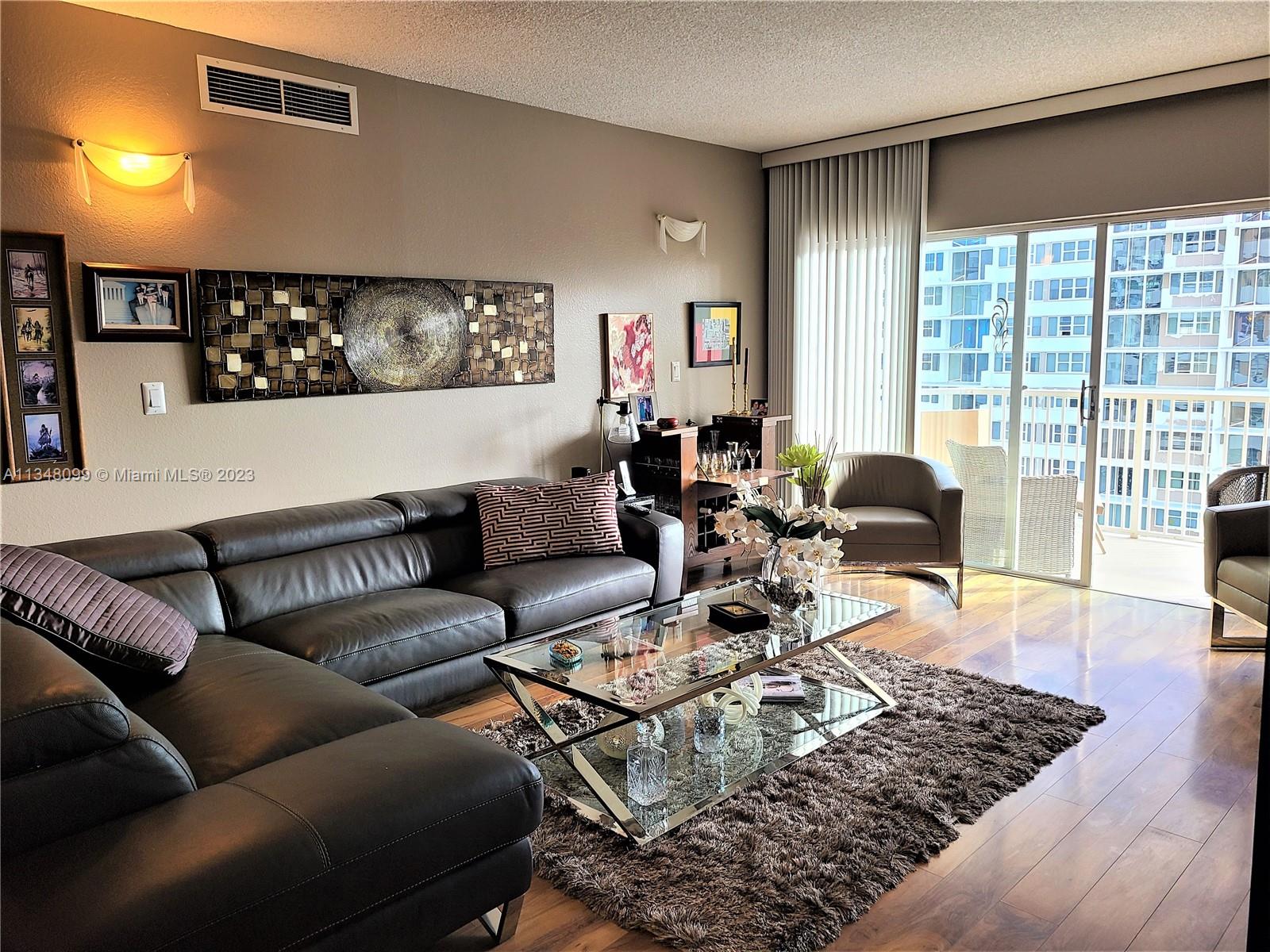 Hemispheres Ocean South, Beautiful Ocean & Intracoastal views, unit faces South, 2 bedrooms, 2 baths, laminate wood floors thru-out, new kitchen and bathrooms. Unit is being sold furnished. Assigned covered parking and storage locker. Resort style amenities include, Beach Access, Beach Service, 2 Restaurants, 2 heated pools, 2 mini-marts, 2 Fitness gyms, Sauna & Steam rooms, Tennis Courts, Marina, Billiard Rooms, Shuffleboard, Basketball, Barbeque area, 24 hr. Security and Valet. Air Conditioning, Basic cable & internet included in the maintenance. Easy to show!