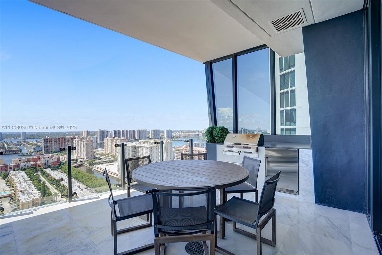 Absolutely Stunning, designer finished 2/2.5 in the Ultra-Exclusive and Luxurious Muse in Sunny Isles. The Massive terrace with Sweeping intracoastal &city views becomes a second living & dining space with an outdoor grill, dining area & a lounging/entertaining space.This smart home is full of exceptional features: lighting, shades, audio & video integration, Calacutta marble flooring throughout and 11+ ft ceilings. Designer Italian kitchen w/dual temp wine cooler, Wolf & Subzero appliances. The Master suite is complete with a midnight bar, beautiful walk-in in closet, soaking tub, rain shower, disappearing TV behind mirror.Muse’s personalized service available at the restaurant, the pool, spa & the beach. Enjoy the best of luxury resort style living in Sunny Isles’ best boutique building.