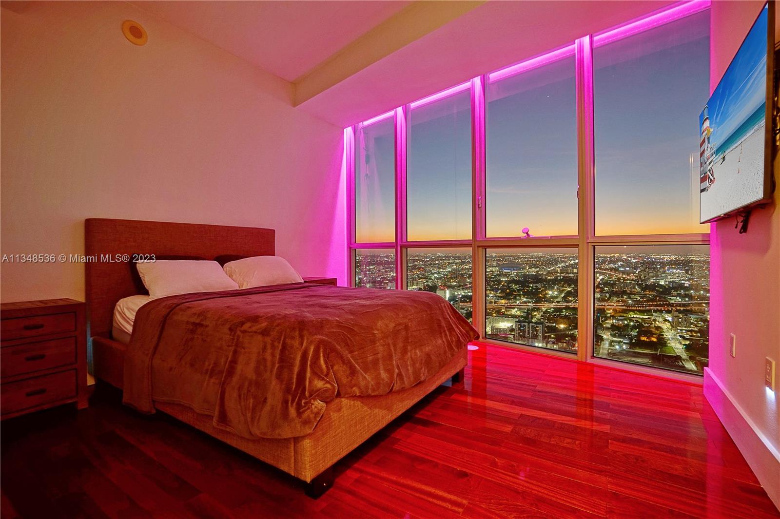 A gorgeous 2/3 corner unit at the one and only Marquis condo, on the 54th floor of the Marquis! Elevator opens to unit with foyer entry. Marble and cherry wood floors through out.. custom build-ins, ceiling to floor glass windows! Custom window shades throughout. Complete unobstructed views of Miami! 5 star amenities, 30,000 sq ft Sqa with unparalleled luxury for the price! Walking distance to the new Parmount worldcenter mall, FTX arena, Frost Museum. Minutes to MIA airport and South Beach. Furniture negotiable