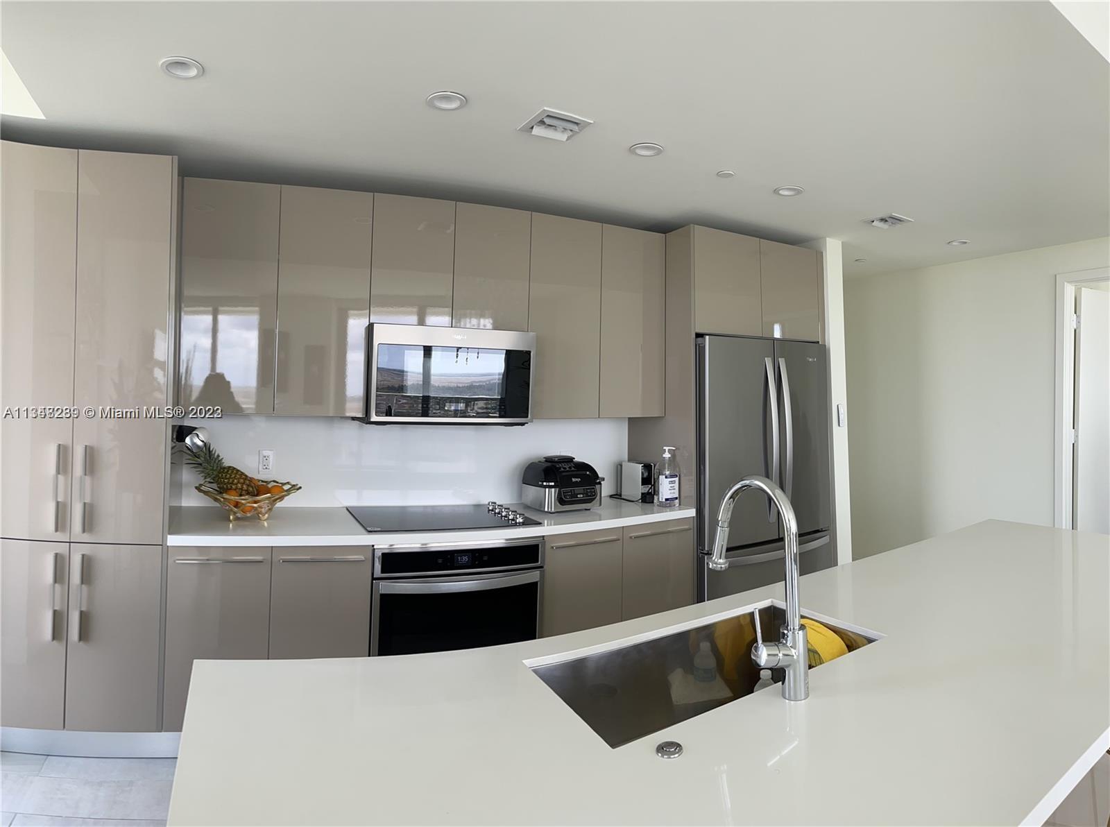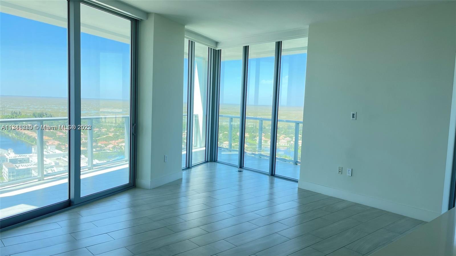 Corner residence with a wonderful skyline views and wraparound balcony, The Condo was modeled into a Contemporary style with an Open Floor Plan, Open Kitchen with White Quartz Counters and New Stainless Steel Appliances, Panoramic View, Fully Porcelain floors including the balcony which was perfectly cut to suit the apartment, Electric blinds, 2 Bedroom + Den, 2.5 Baths, Doble Storage, two parking spaces deeded, Resort Style amenities include state of the art gym, spa, sauna, and steam. Movie theater, club room, event space, kid's playroom, business center, infinity edge pool,Jacuzzi, summer kitchen, life-sized board games, tennis courts, and more. Secured lobby, 24hr security, valet parking.