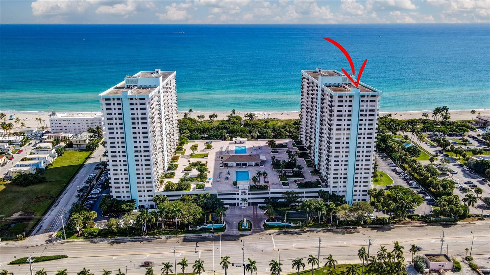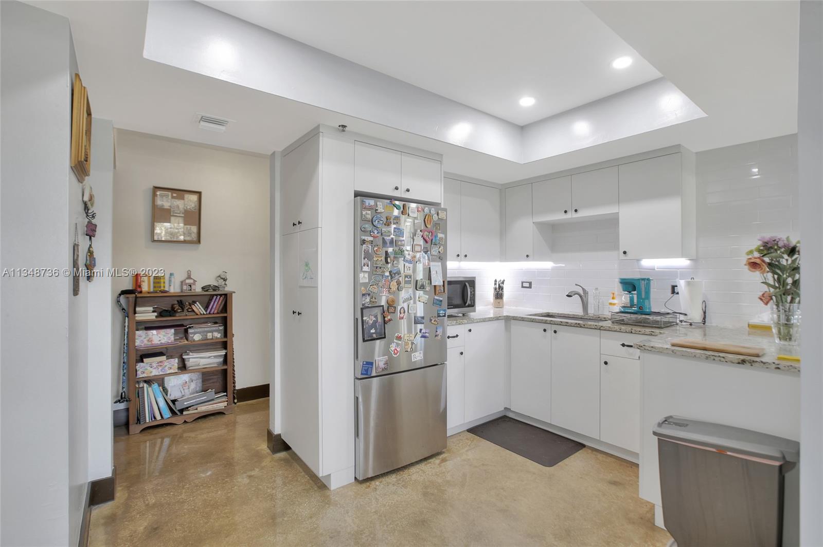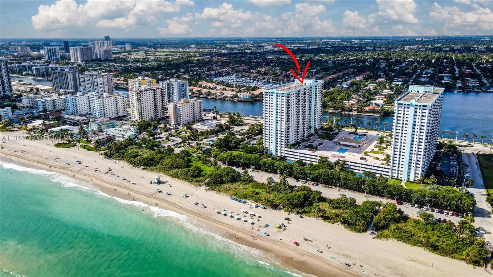 Spectacular remodeled 1 bed/1 bath apartment with intracoastal view. Stained concrete floors, large living area open to breakfast nook & built-in storage benches, Kitchen opened countertop area for entertaining, dining, or working from home. S/S E-Oven & Refrigerator. Master bedroom was converted for special needs as bedroom, closet, study, or sitting area. Master bath + modern shower, floating cabinets. Laundry area with door. Designer taste upgrades. Located in one of the most desirable buildings by the beach, steps from Famous Hollywood Broadwalk with many restaurants. Enjoy the amenities : 2 Heated pools, 2 tennis courts, gym, game room & much more!