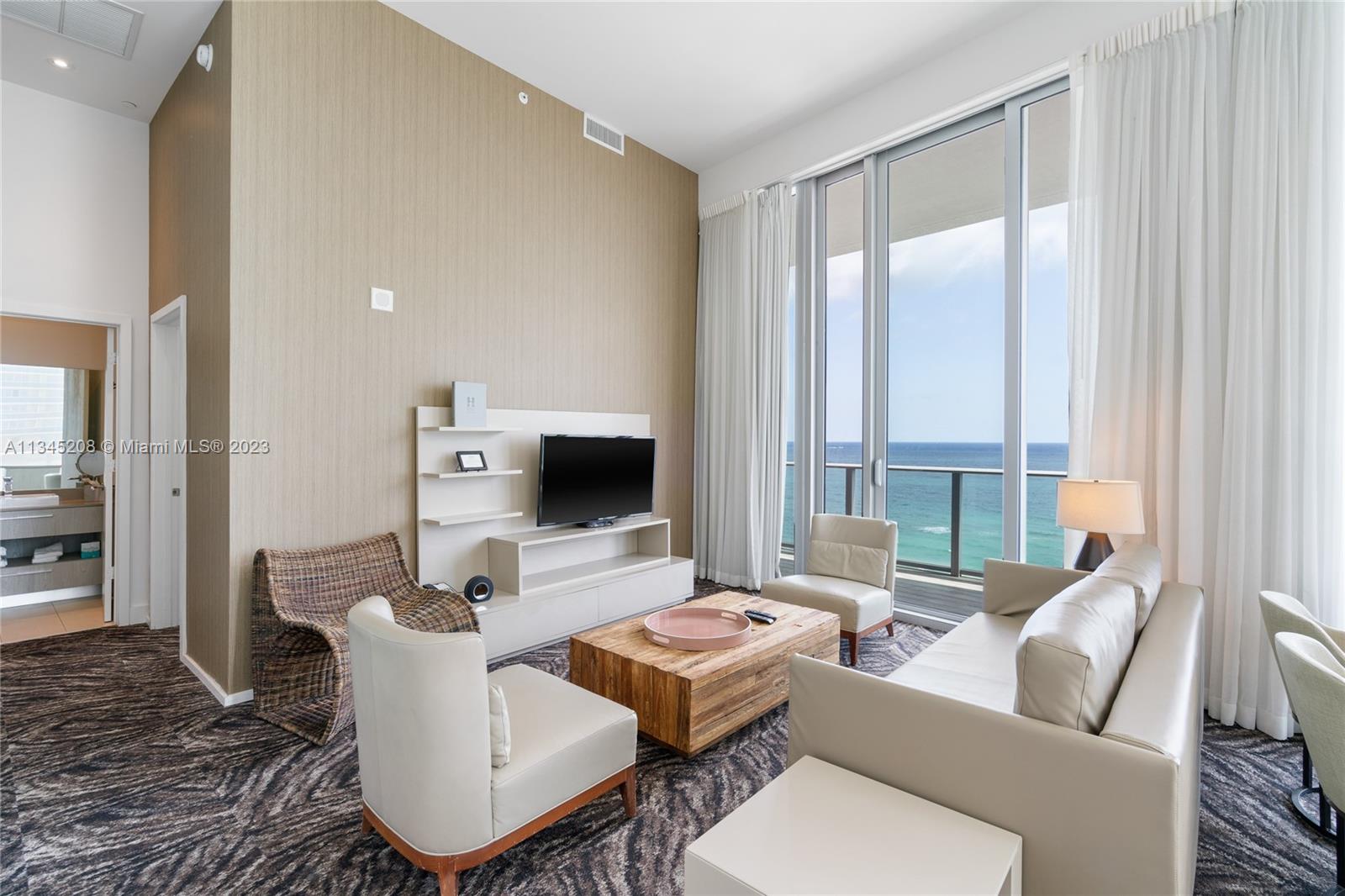 Investment opportunity at Hyde Beach Resort & Residences in Hollywood Beach. Beautiful 1 Bed/1 Bath Corner unit with unobstructed direct ocean views and 12' ceilings. There are only a few units like this one facing direct to the beach and featuring high ceilings. Unit comes fully furnished with the hotel package. Income producing property can be rented daily. Hyde Beach is a luxurious oceanfront resort and residential complex. The property is situated right on the beach, with stunning views and great amenities including 2 amazing pools, spa, fitness center, restaurant & bar and beach service. Great location, close to Aventura Mall, 30 min to downtown Miami and 20 min to Fort Lauderdale airport.
