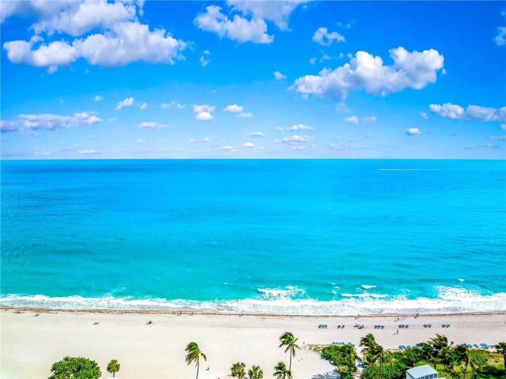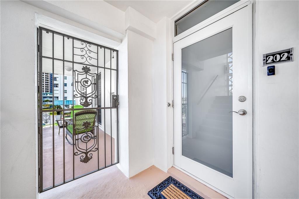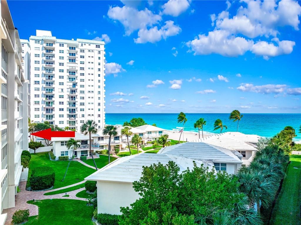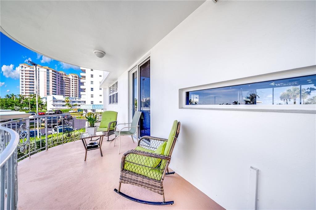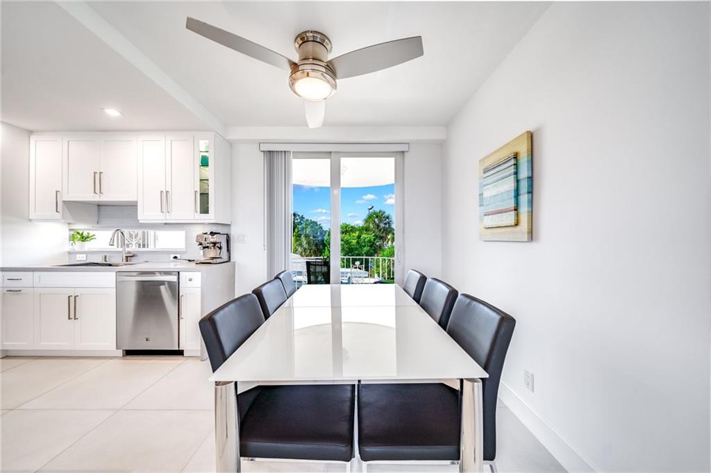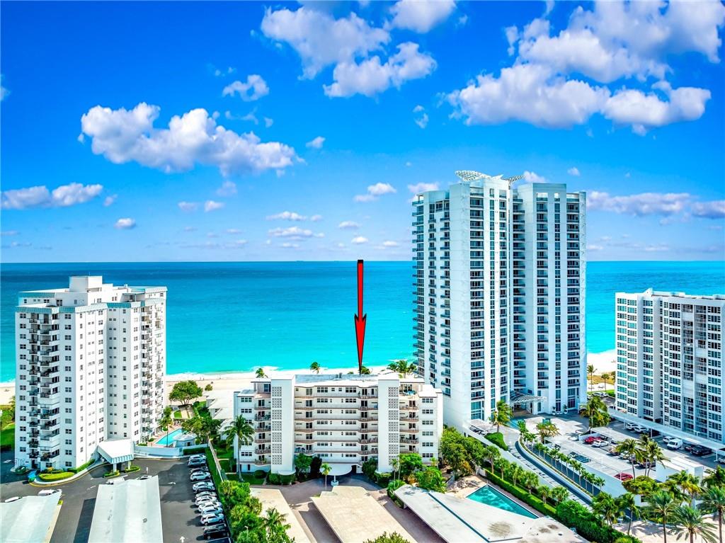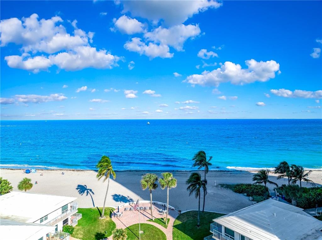 Paradise Perfected. This 2 bedroom, each with an ensuite bathroom and walk-in closet, features an open living area with amazing direct views of the ocean! This unit was renovated in 2022 and includes rectified 32" floor tiles throughout, new kitchen cabinets & quartz countertops as well as a designated bar area with wine rack. The a/c was replaced in 2022 as well as the electrical panel, tankless water heater, and new shut-off water valves. The fridge, stove, dishwasher and exhaust are all 2 years old. The unique vintage mid-century restored bathrooms add to the overall quality comfort of this spacious and bright end unit. Impact windows and doors throughout as well as remote controlled blinds reveal a full-wall of sliding glass doors to enjoy your morning coffee with stunning ocean views.