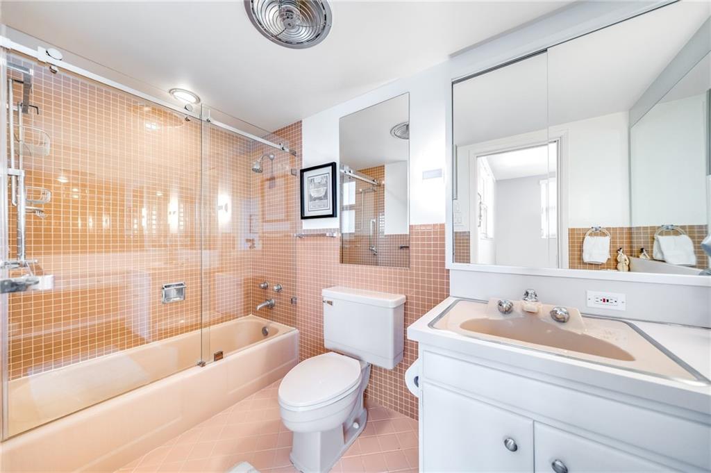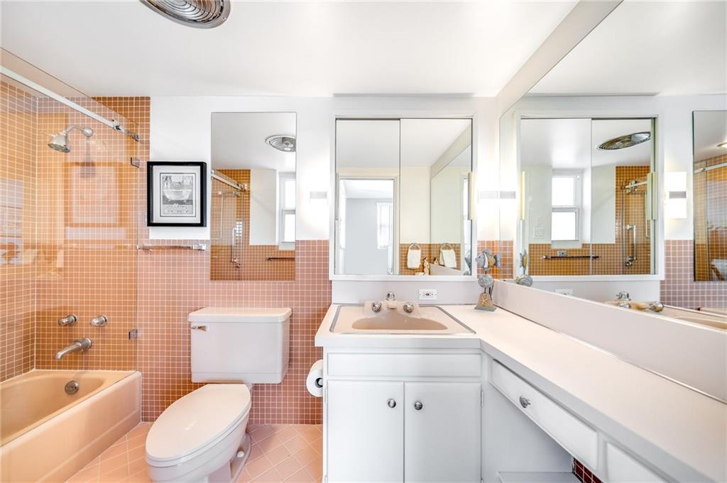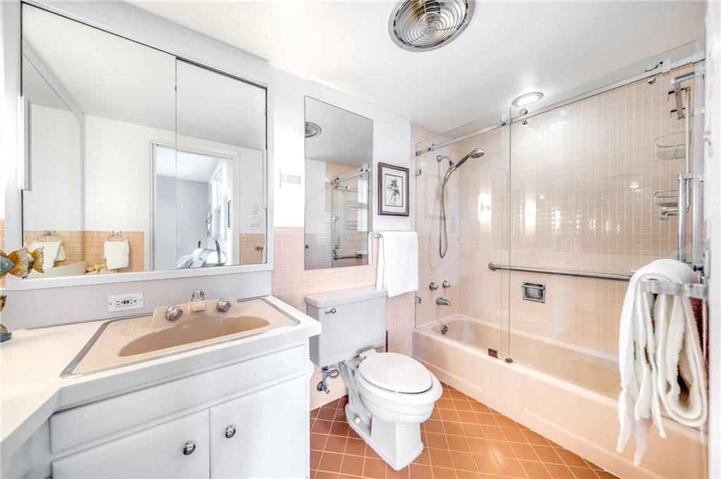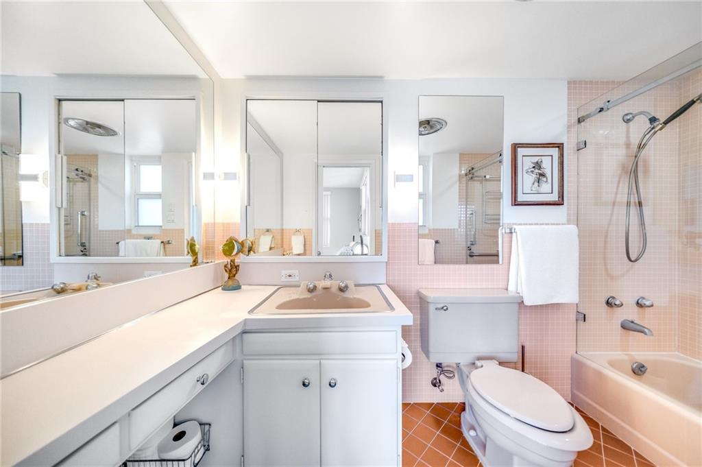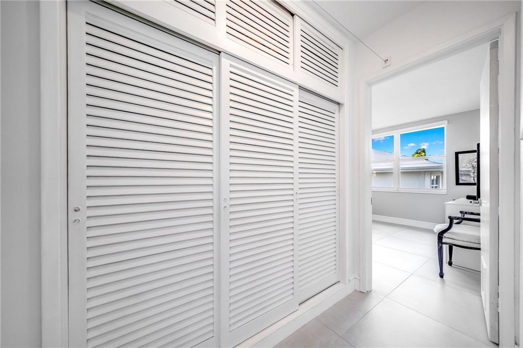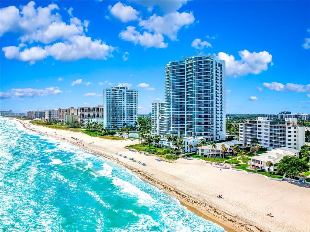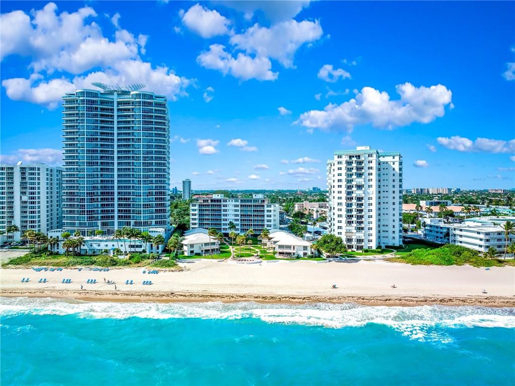 Paradise Perfected. This 2 bedroom, each with an ensuite bathroom and walk-in closet, features an open living area with amazing direct views of the ocean! This unit was renovated in 2022 and includes rectified 32" floor tiles throughout, new kitchen cabinets & quartz countertops as well as a designated bar area with wine rack. The a/c was replaced in 2022 as well as the electrical panel, tankless water heater, and new shut-off water valves. The fridge, stove, dishwasher and exhaust are all 2 years old. The unique vintage mid-century restored bathrooms add to the overall quality comfort of this spacious and bright end unit. Impact windows and doors throughout as well as remote controlled blinds reveal a full-wall of sliding glass doors to enjoy your morning coffee with stunning ocean views.