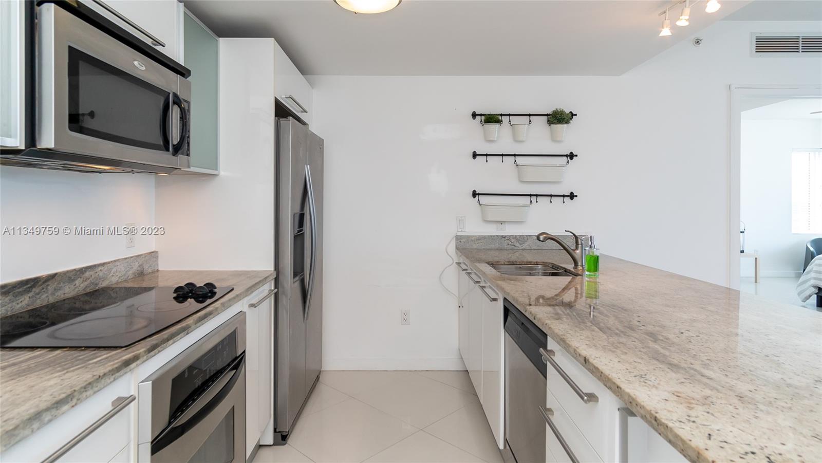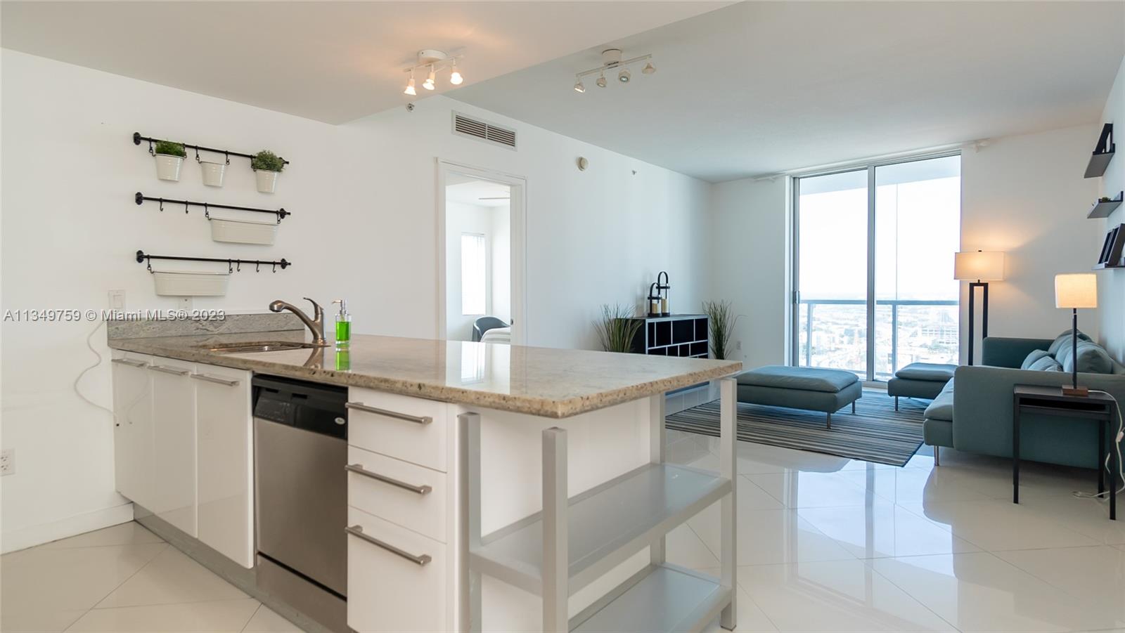 Stunning 2 bed - 2.5 baths, corner unit in the heart of Brickell. Latitude on the River is the ultimate urban sanctuary. This split plan corner unit features stainless steel appliances, granite countertops, beautiful tile flooring throughout, floor to ceiling windows and 9 feet ceilings. The unit has amazing views of the River, Miami skyline and Bay. Amenities include a heated pool, state-of-the-art fitness center, sauna facilities & a great location. Lushly landscaped pool deck & meditation gardens are a great place to relax after a long day. The Grand Party Room is available for your guests. The lobby has been fully renovated w/concierge services & valet for owners and guests. No special assessments for improvements (Building is being painted & balconies/pool is undergoing maintenance.)