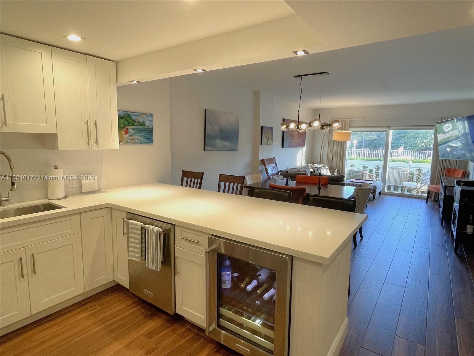 Completely updated water facing 1 bedroom + office nook / 1.5 bathroom residence. Unit looks out towards pool and the waterway. Waterfront building with no bridges to bay. No expense was spared on this condo. Hurricane impact windows, electric blinds, quartz countertops, SS appliances, wine cooler, porcelain wood flooring, standing shower with overhead waterfall and full size tub, heated towel racks, walk-in closet. Tranquil Edgewater Dr building with relaxing heated pool overlooking the waterway. Rent/Buy a boat slip, when available, and keep your boat at home. 1 assigned parking space + 1 storage cubby included with sale. 50 Year Recertification has been completed.